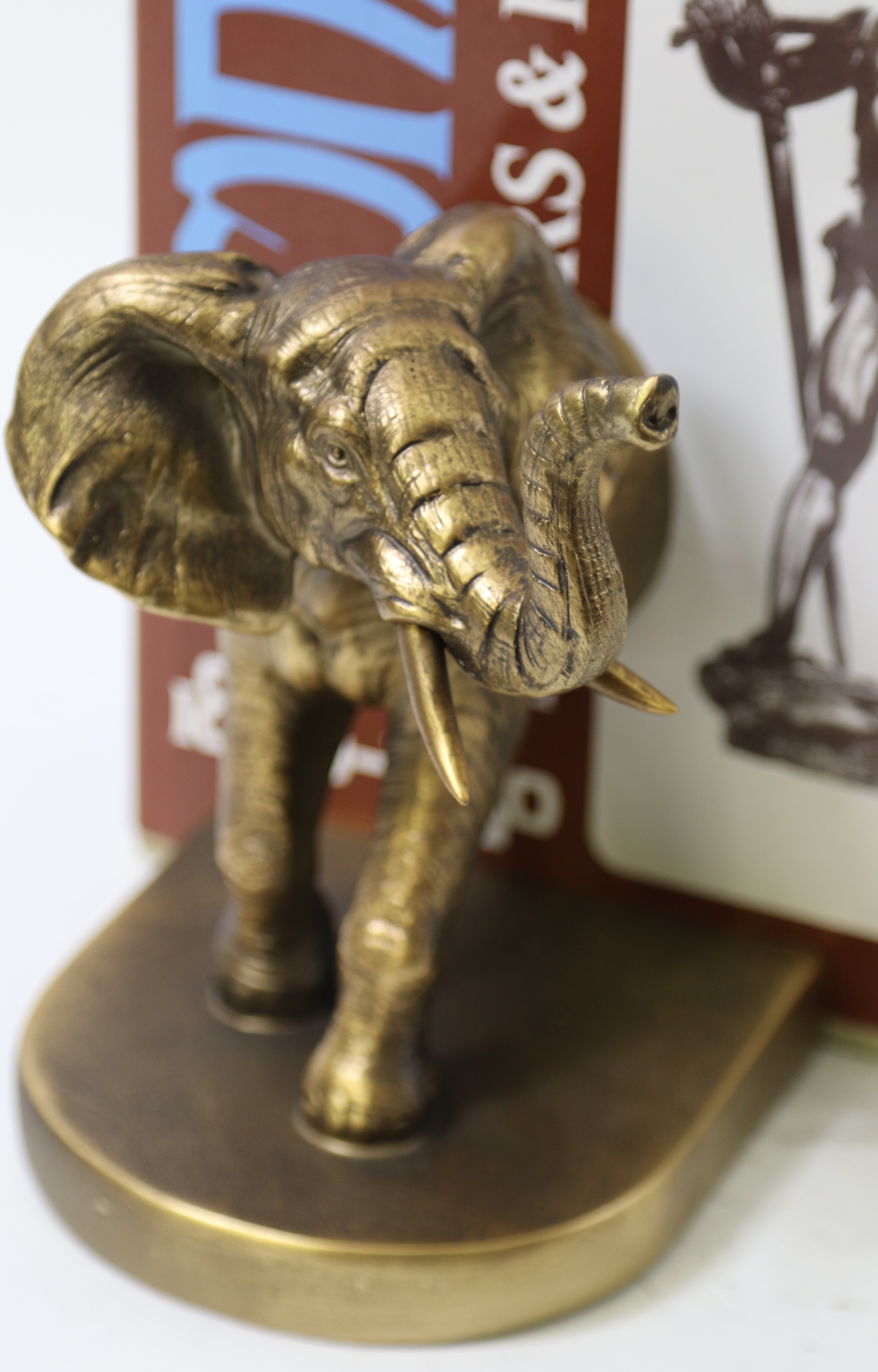 African Elephant Safari Faux Bronze Statue Bookends Library Room Art Gift