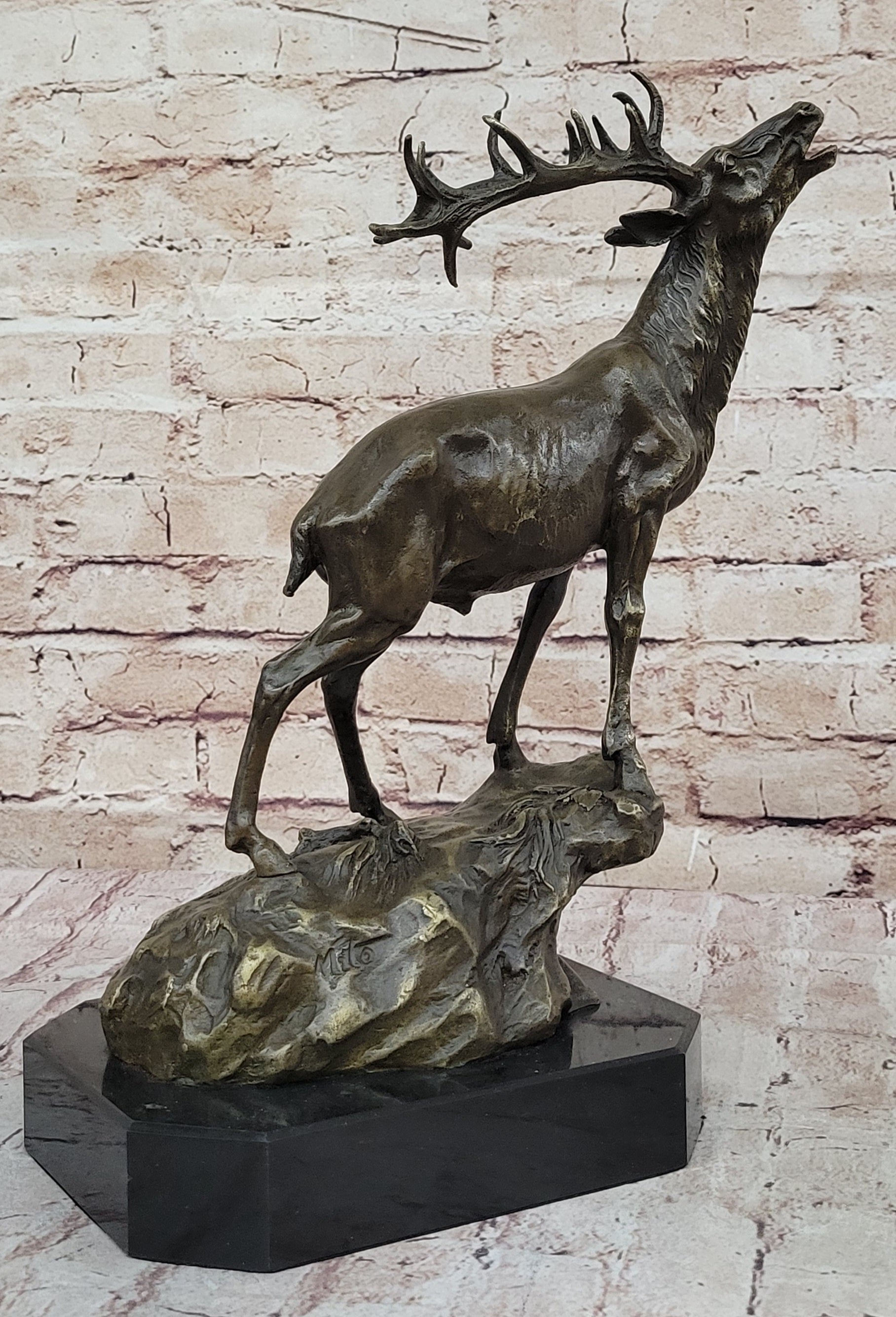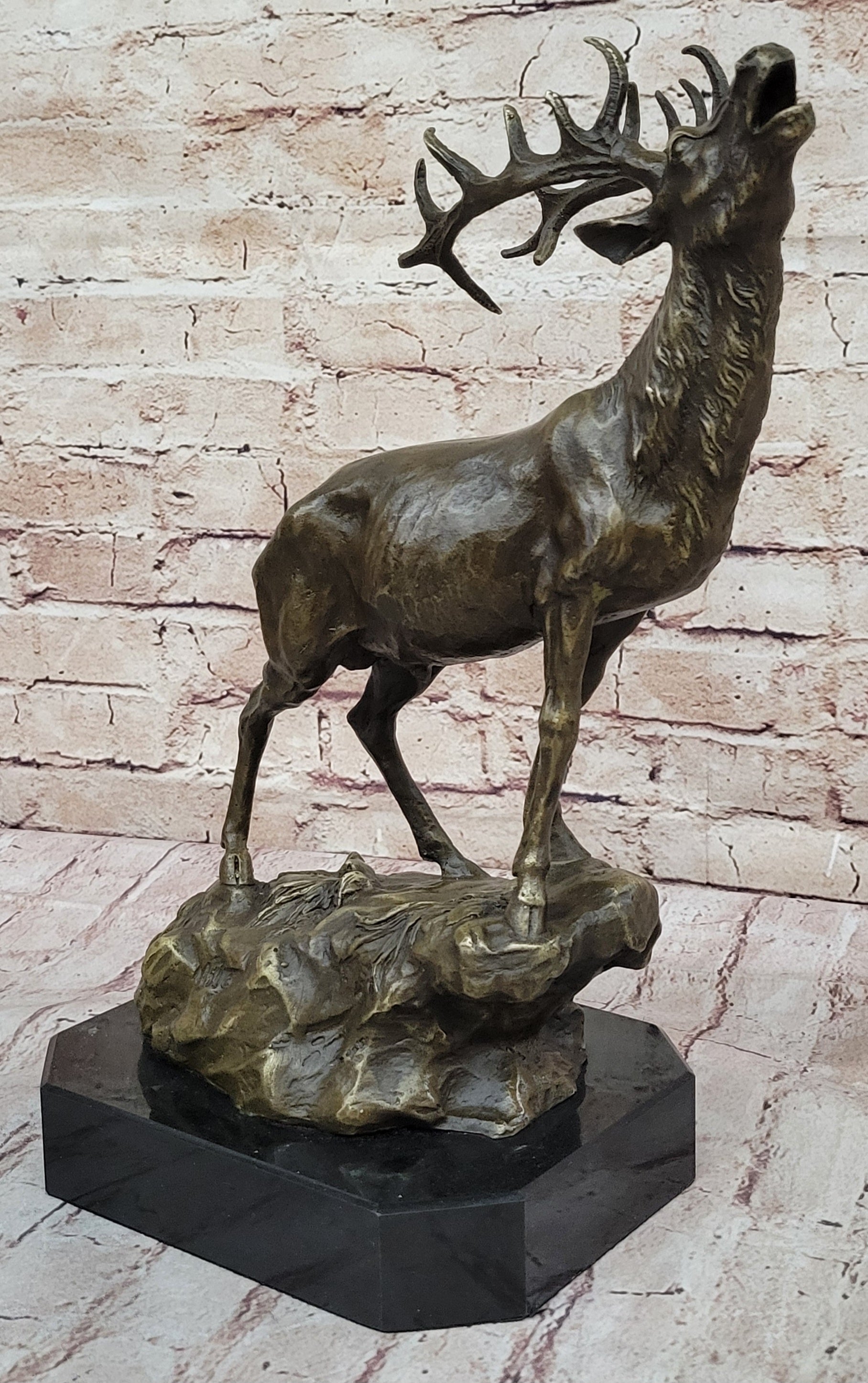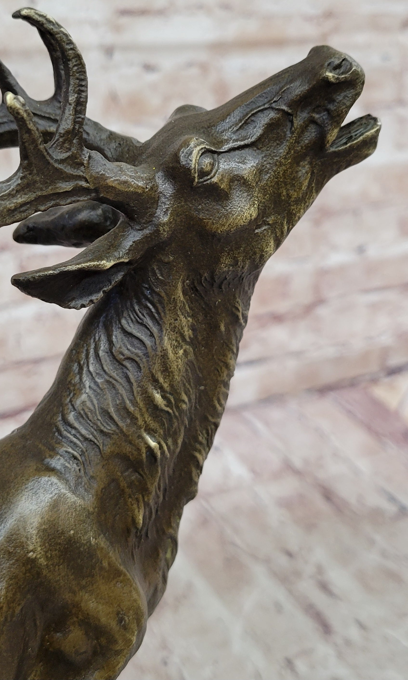 Chalet Lodge Art Elk Stag Buck Deer Hunter Bronze Marble Base Sculpture Statue