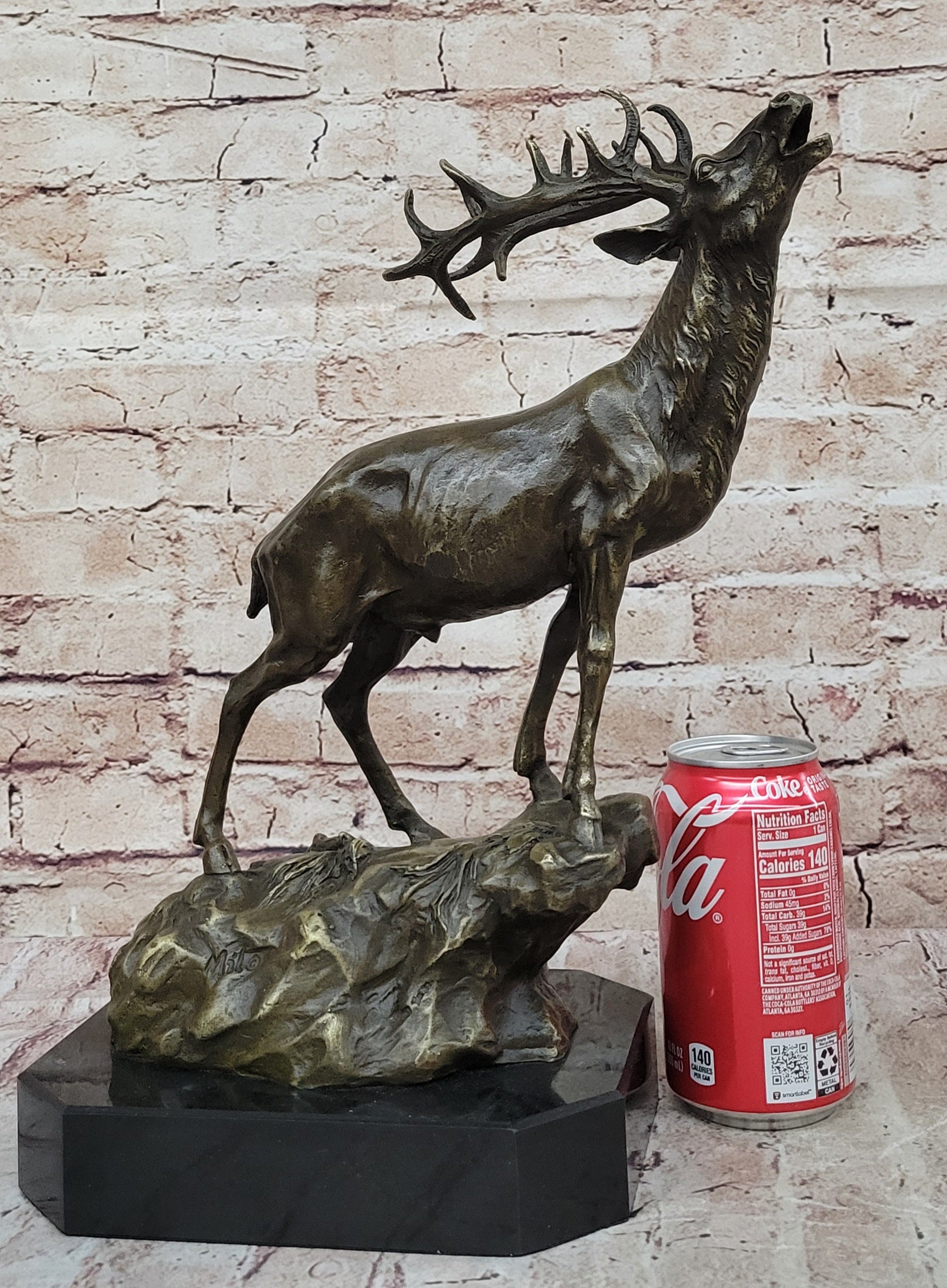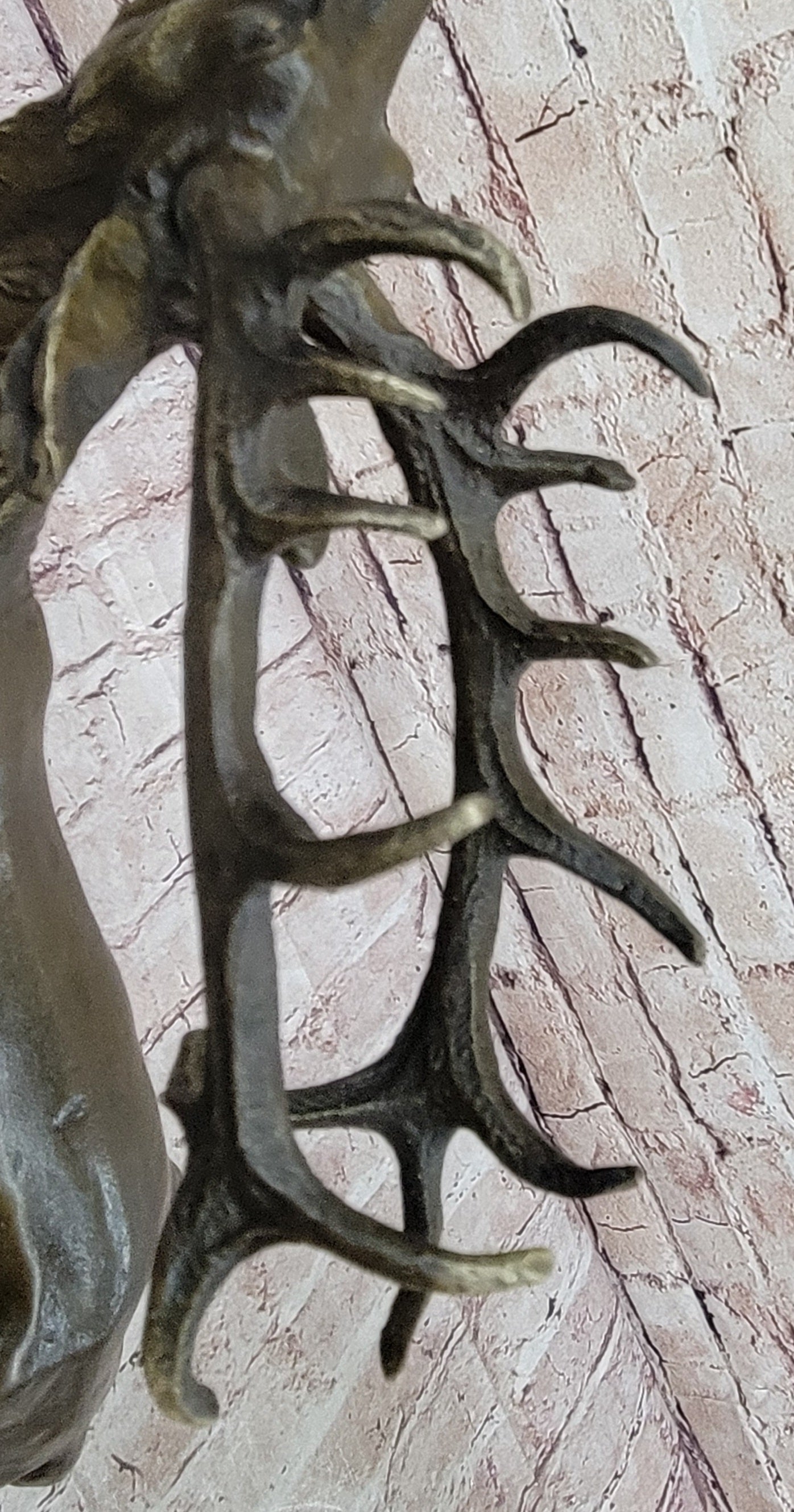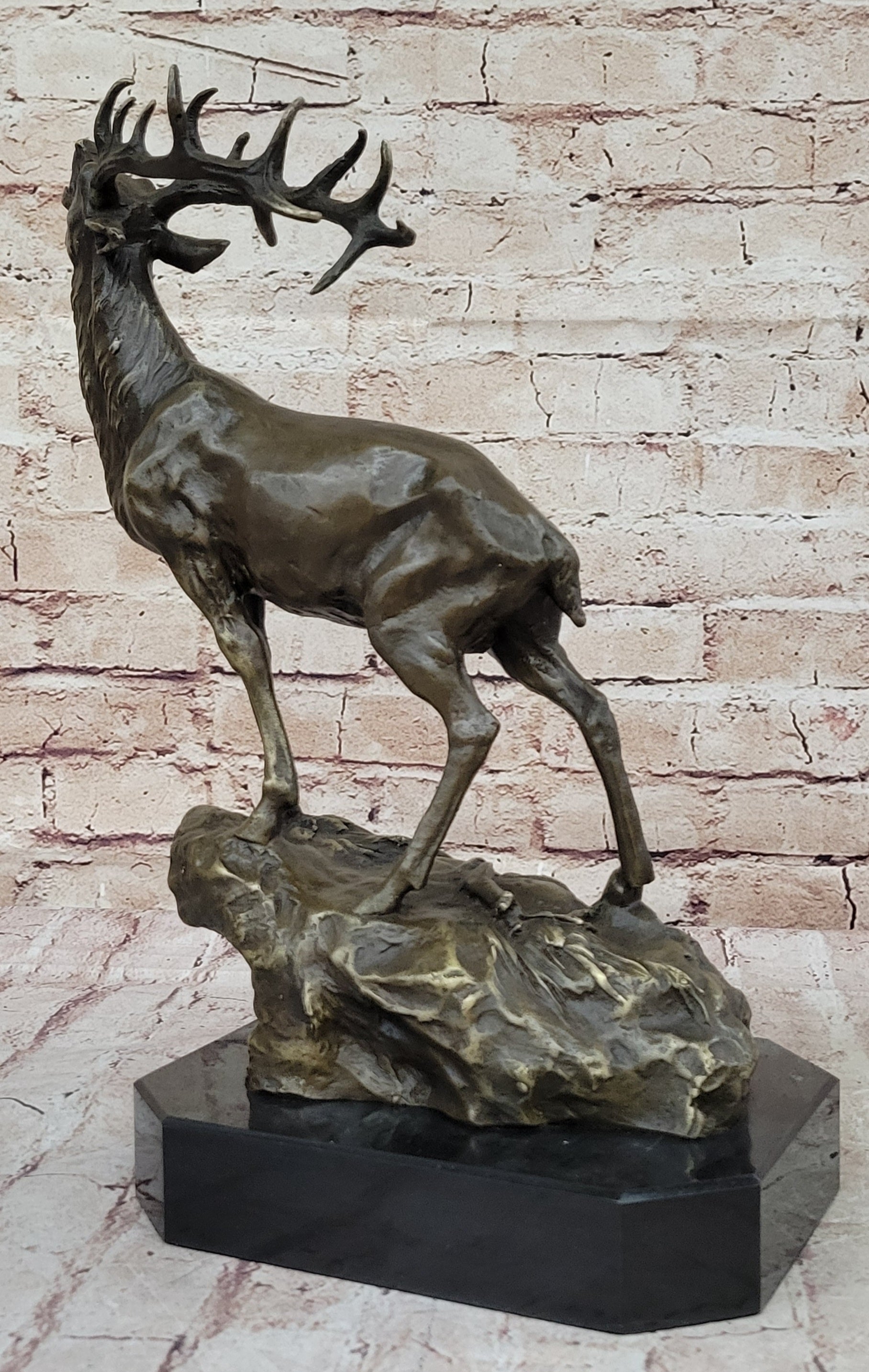 Chalet Lodge Art Elk Stag Buck Deer Hunter Bronze Marble Base Sculpture Statue