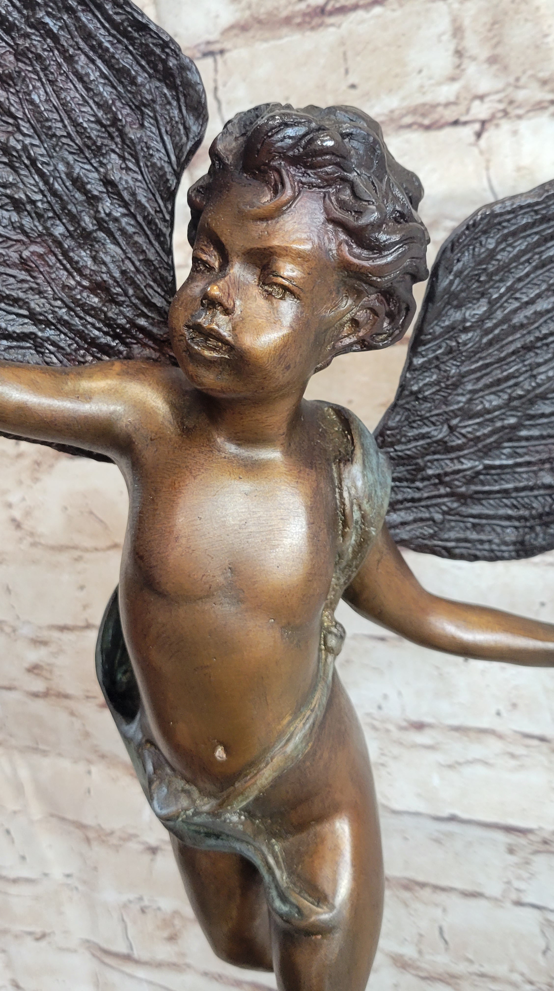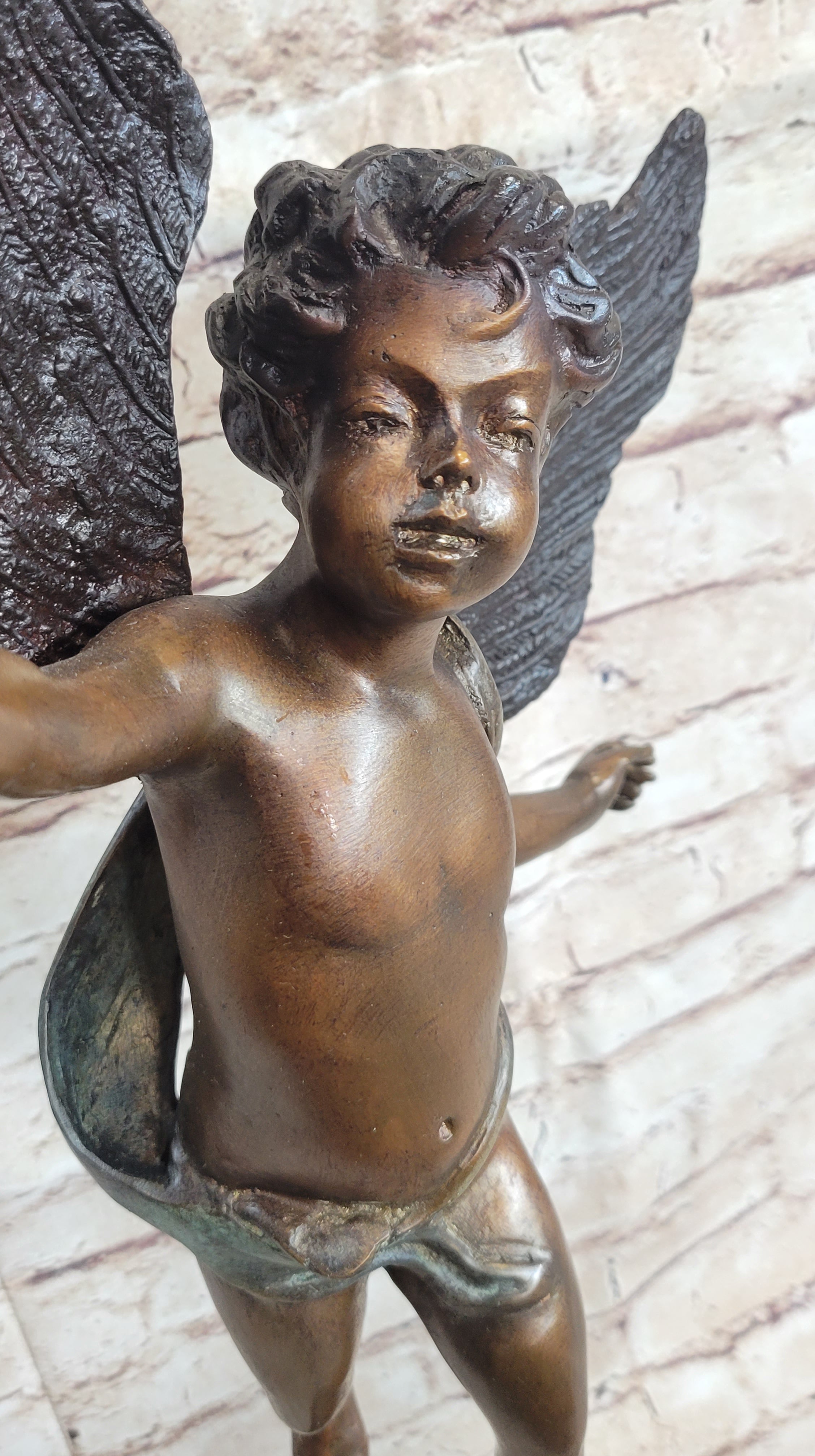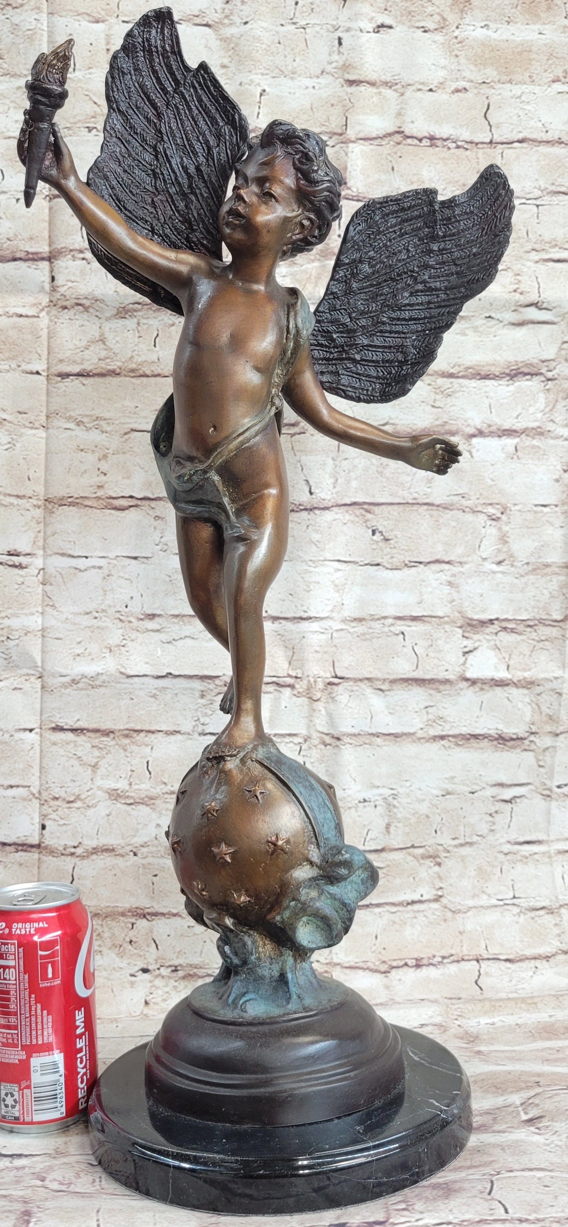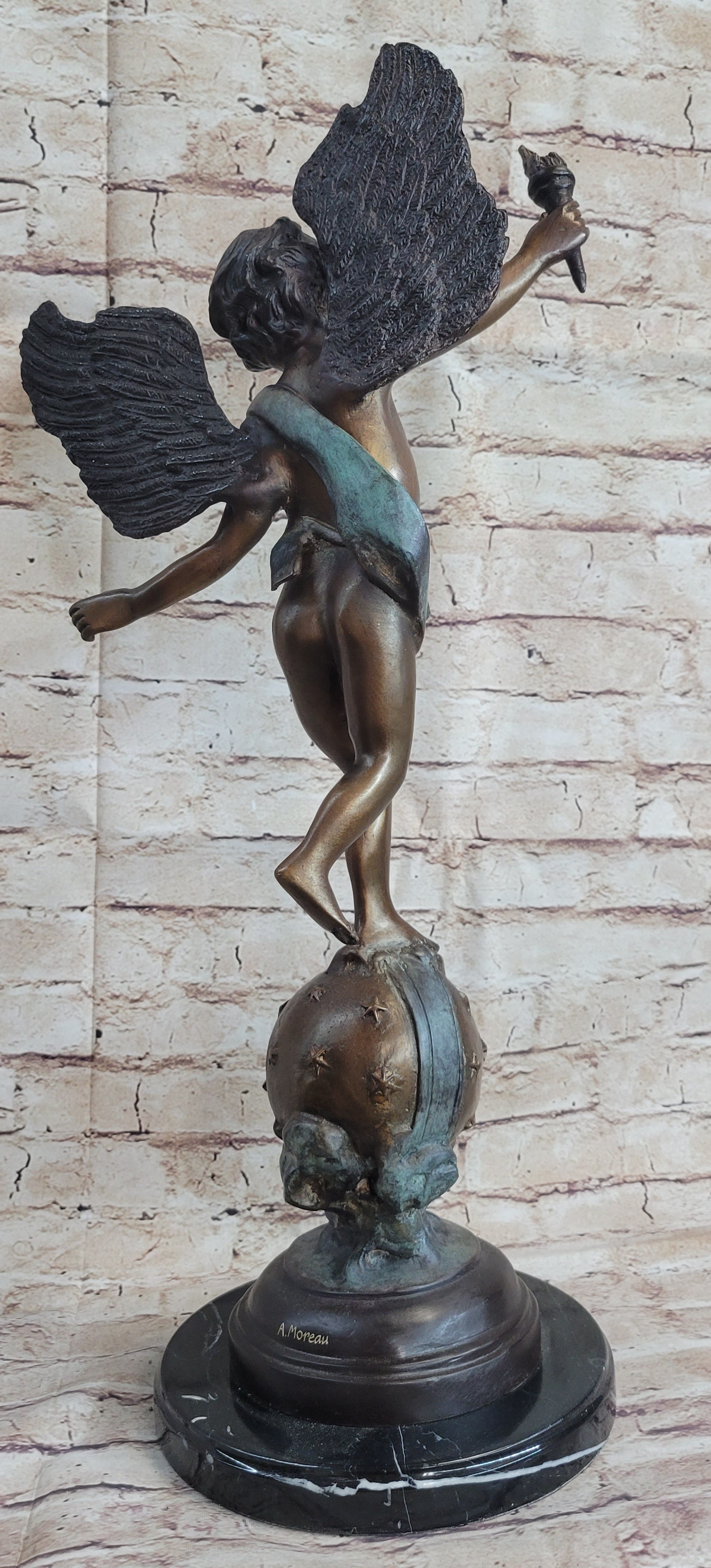Cherub Cupid w/ Torch Real Bronze Vintage Sculpture Statue after Moreau 24" x 12"