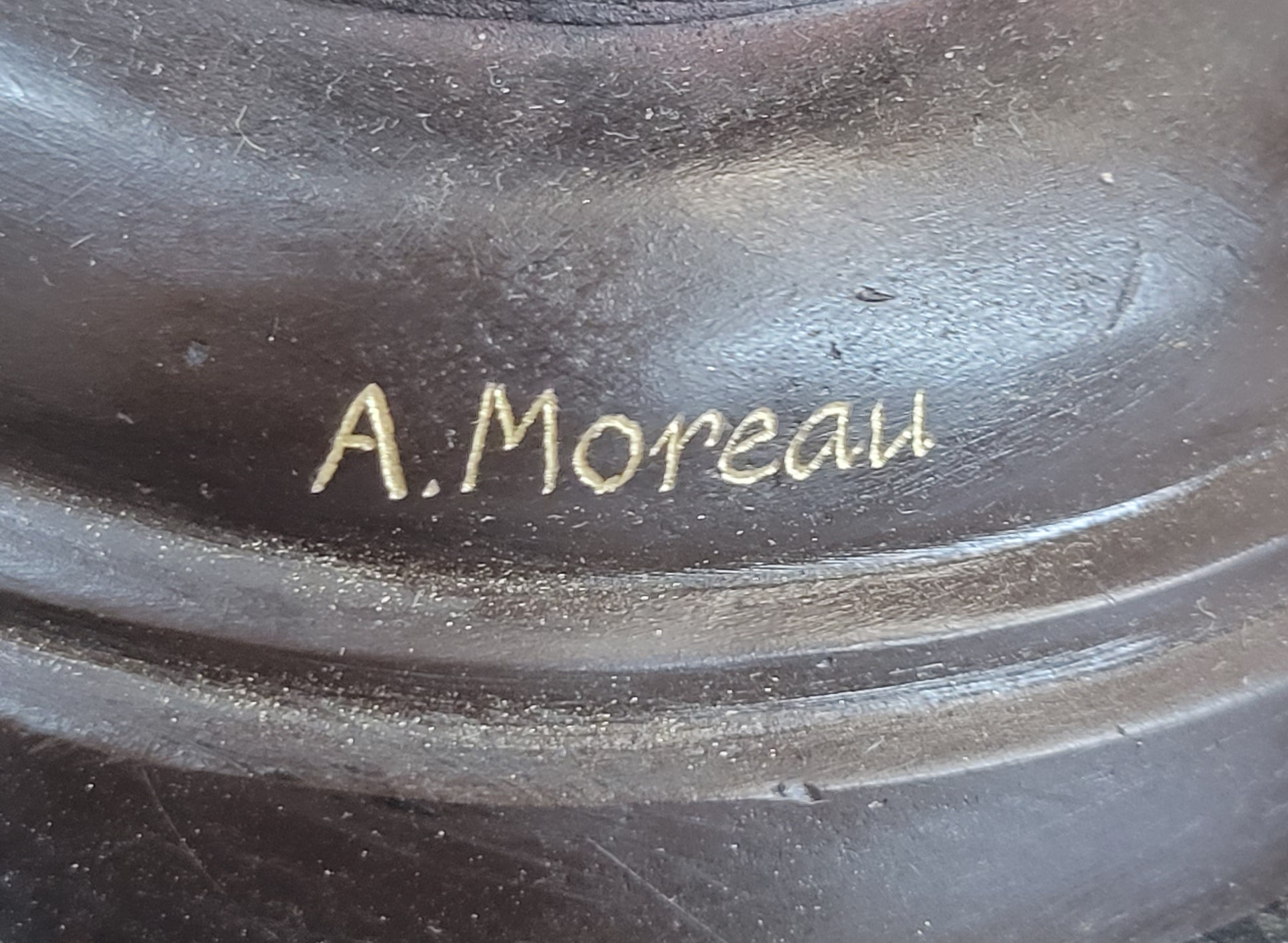 The sculpture bears the signature of A. Moreau, a testament to the artist's expertise and commitment to creating captivating artworks. Each glance at this remarkable piece will remind you of the power and beauty of love, making it an ideal gift for weddings, anniversaries, or any occasion that celebrates love and romance.