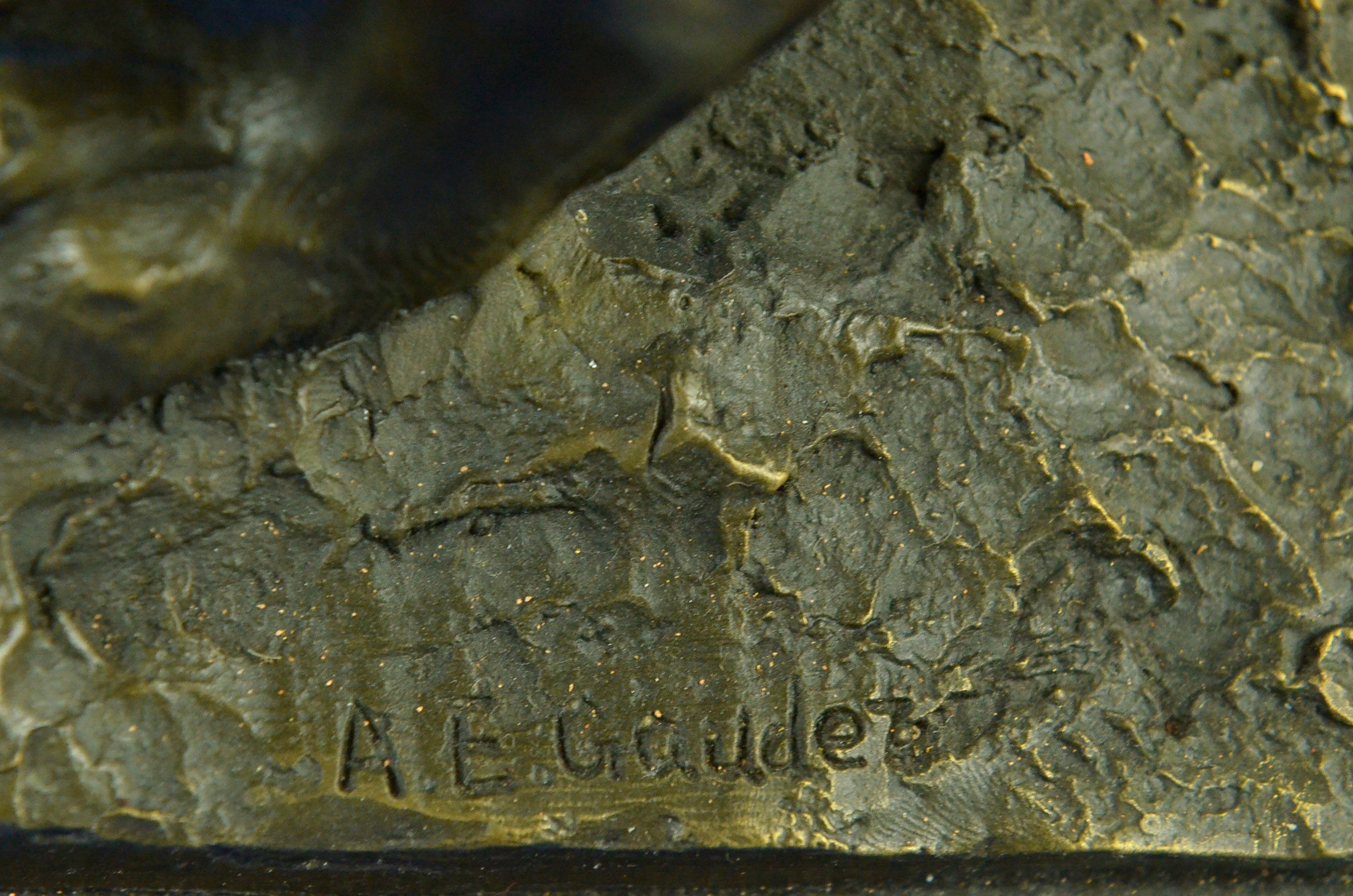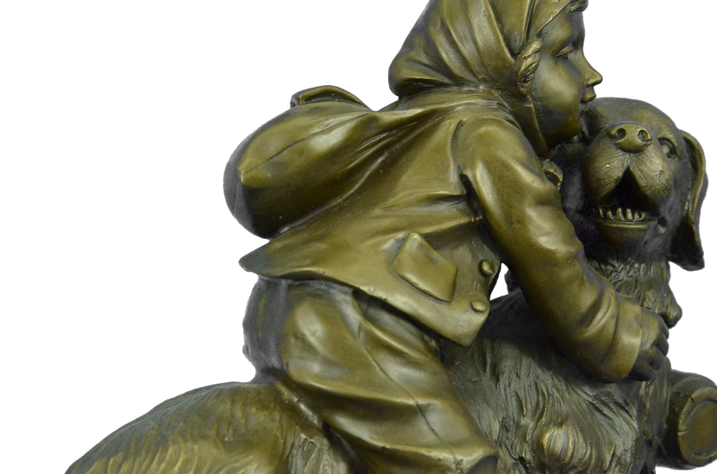 Chien Du St. Bernard by Guadez French Artist Bronze Sculpture Marble Base Statue