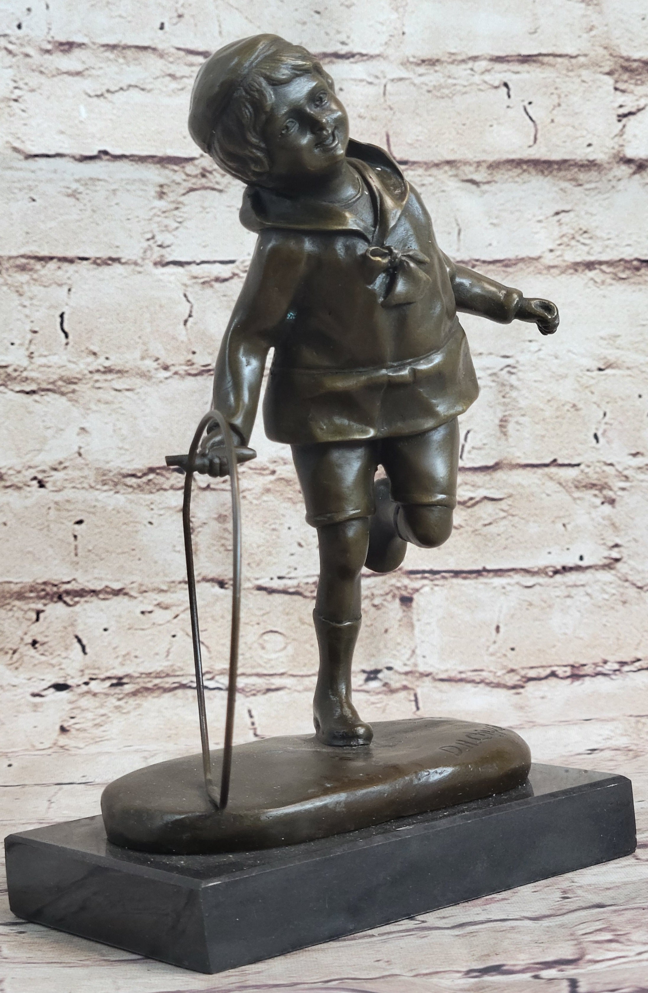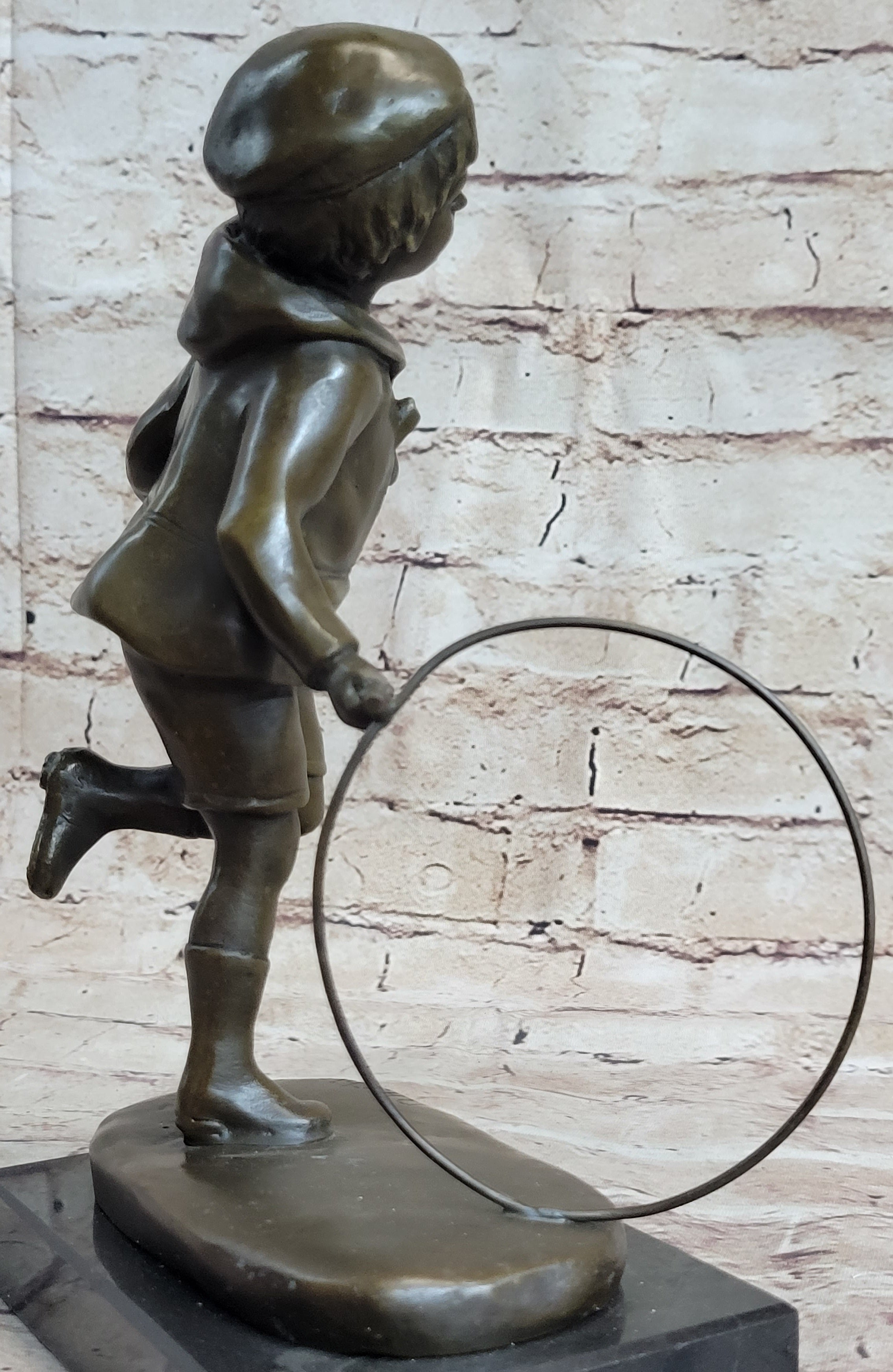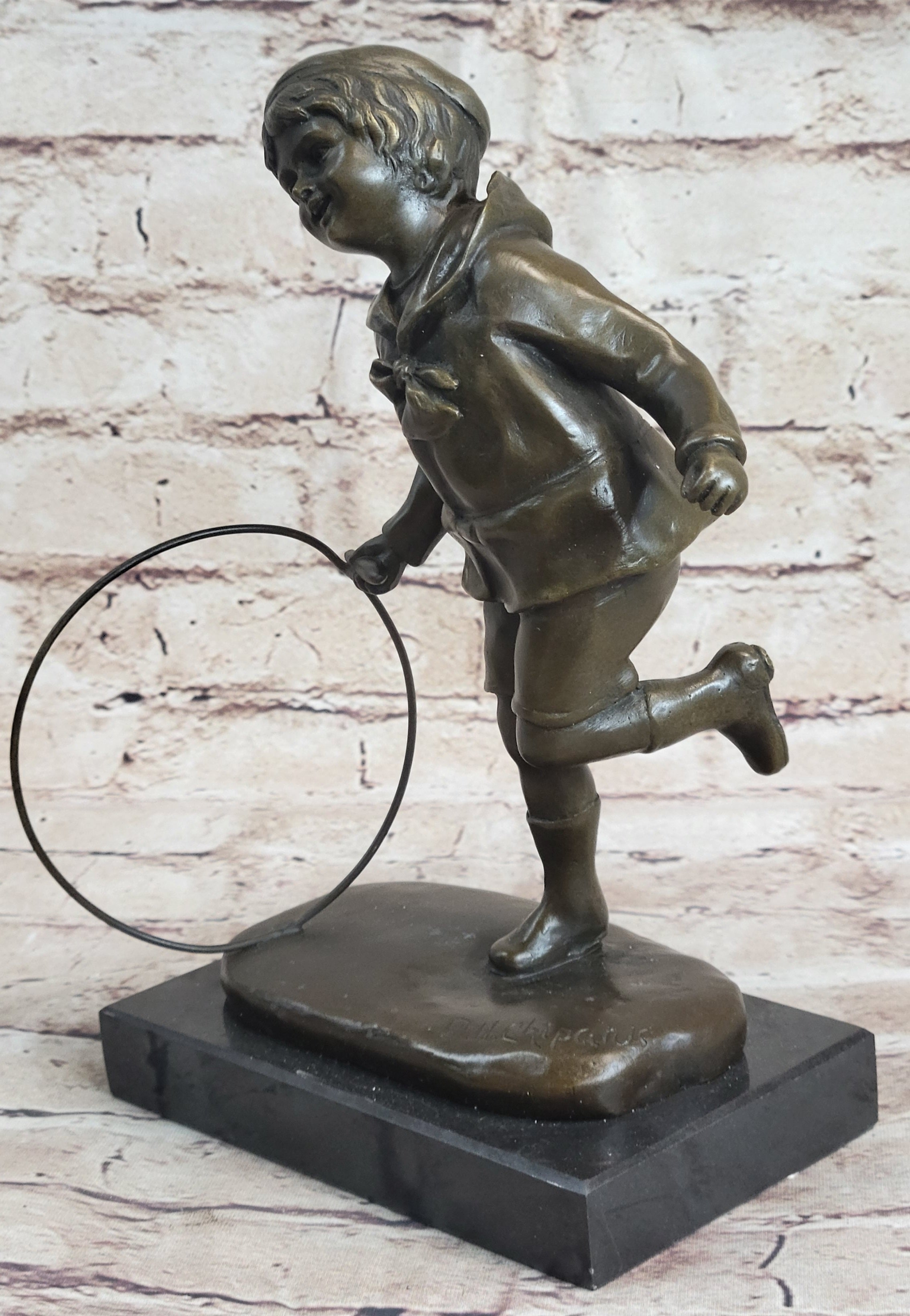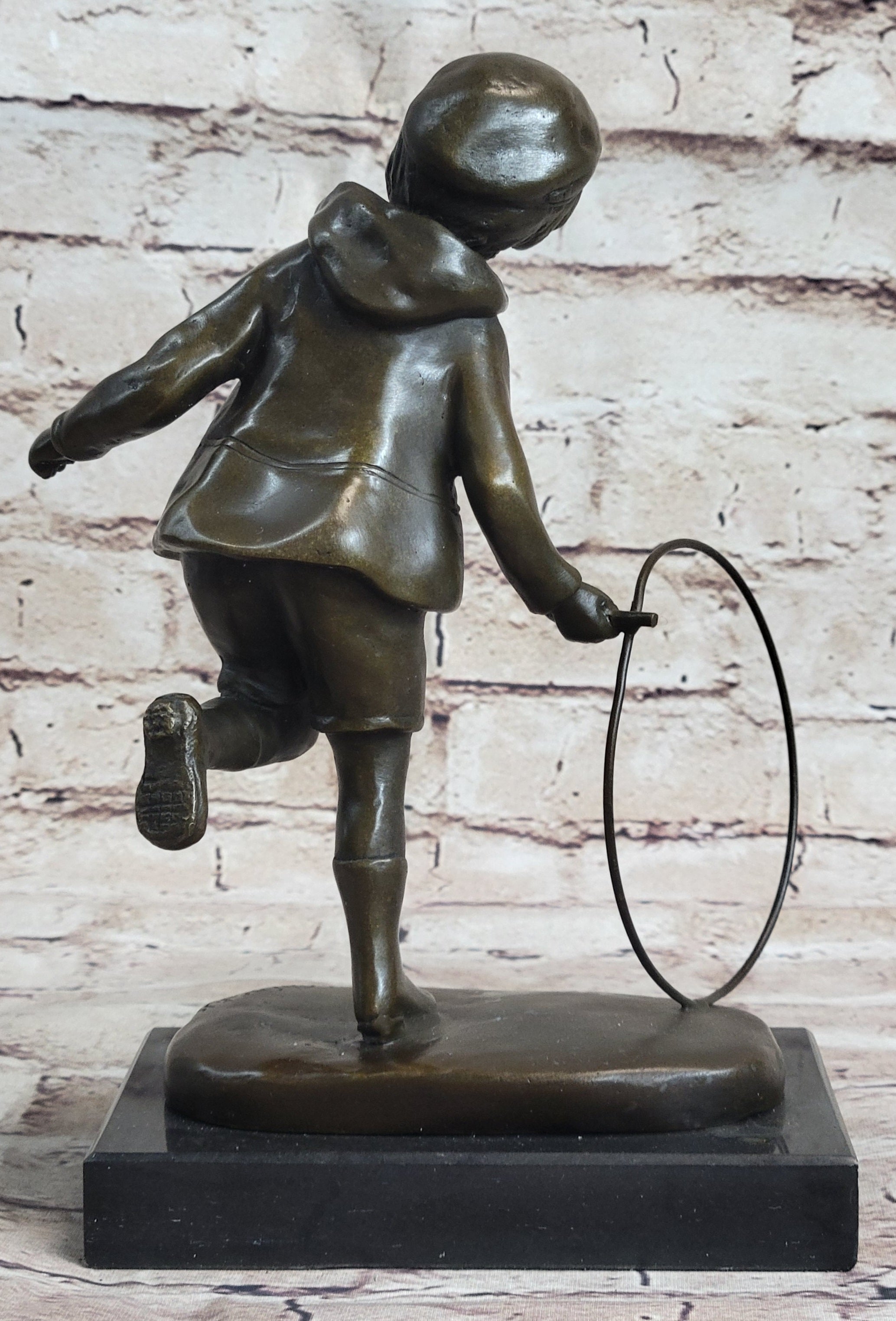 Child With Hula Hoop Bronze Metal Statue Sculpture Figurine Figure Decor Marble