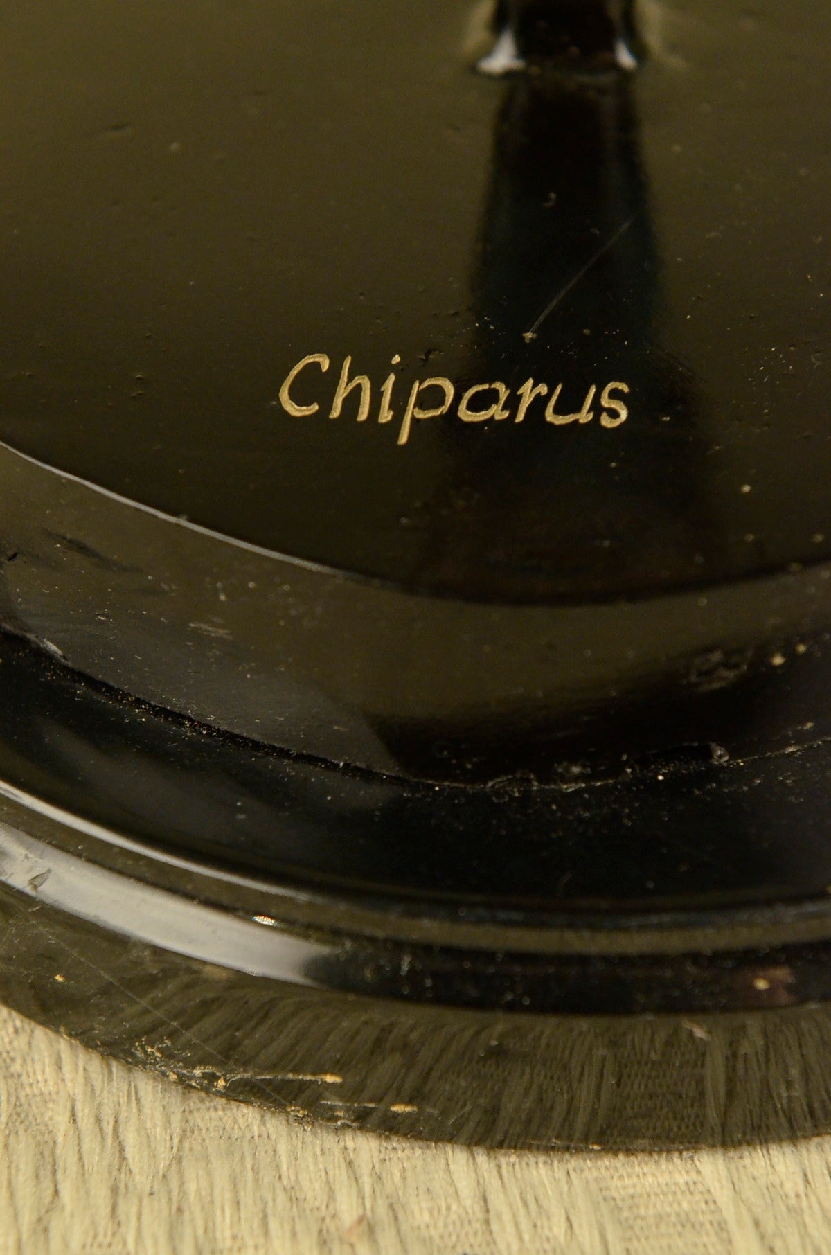 A prima ballerina puts on a show. Well trained in the art that she loves, she shows off her agility, balance and flexibility. She stretches her long lean leg far behind her and gracefully outstretches her slender arms to her side. Her chest tilts parallel towards the floor and her head tips up to the adoring crowd. Her tutu spreads around her hips like a halo, as she stands en pointe. She trained for many years for the moment when she would be the center of the spotlight. 100% bronze, this handmade brown patina sculpture was cast using the "Lost Wax Method" and mounted on a black marble base and is signed by artist Chiparus.Original or Reproduction: Reproduction