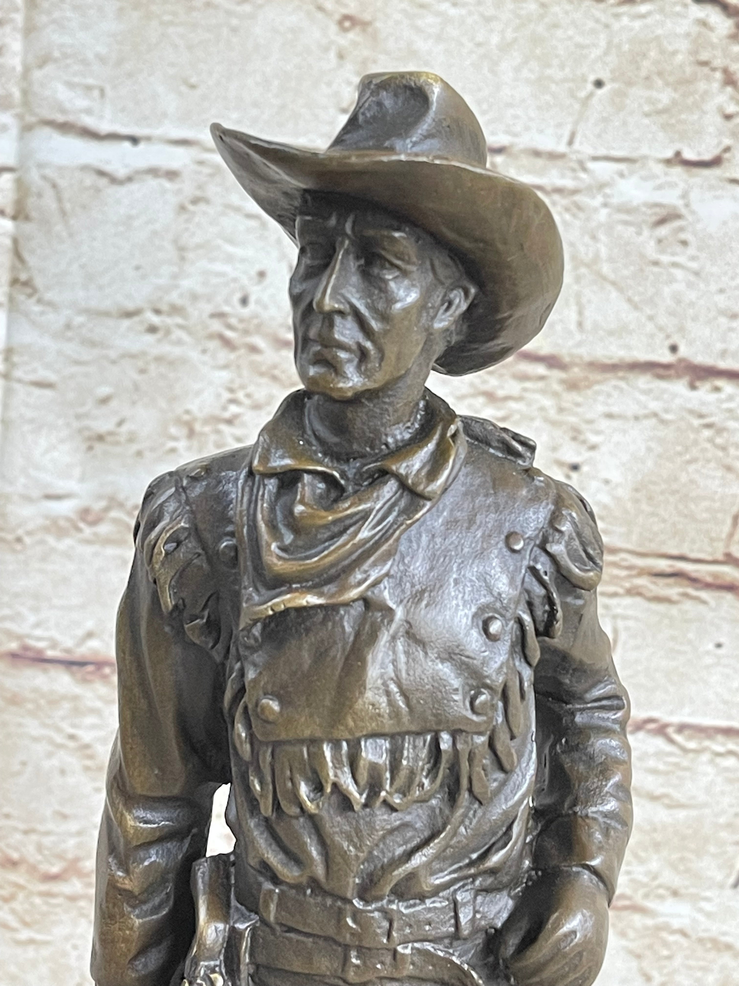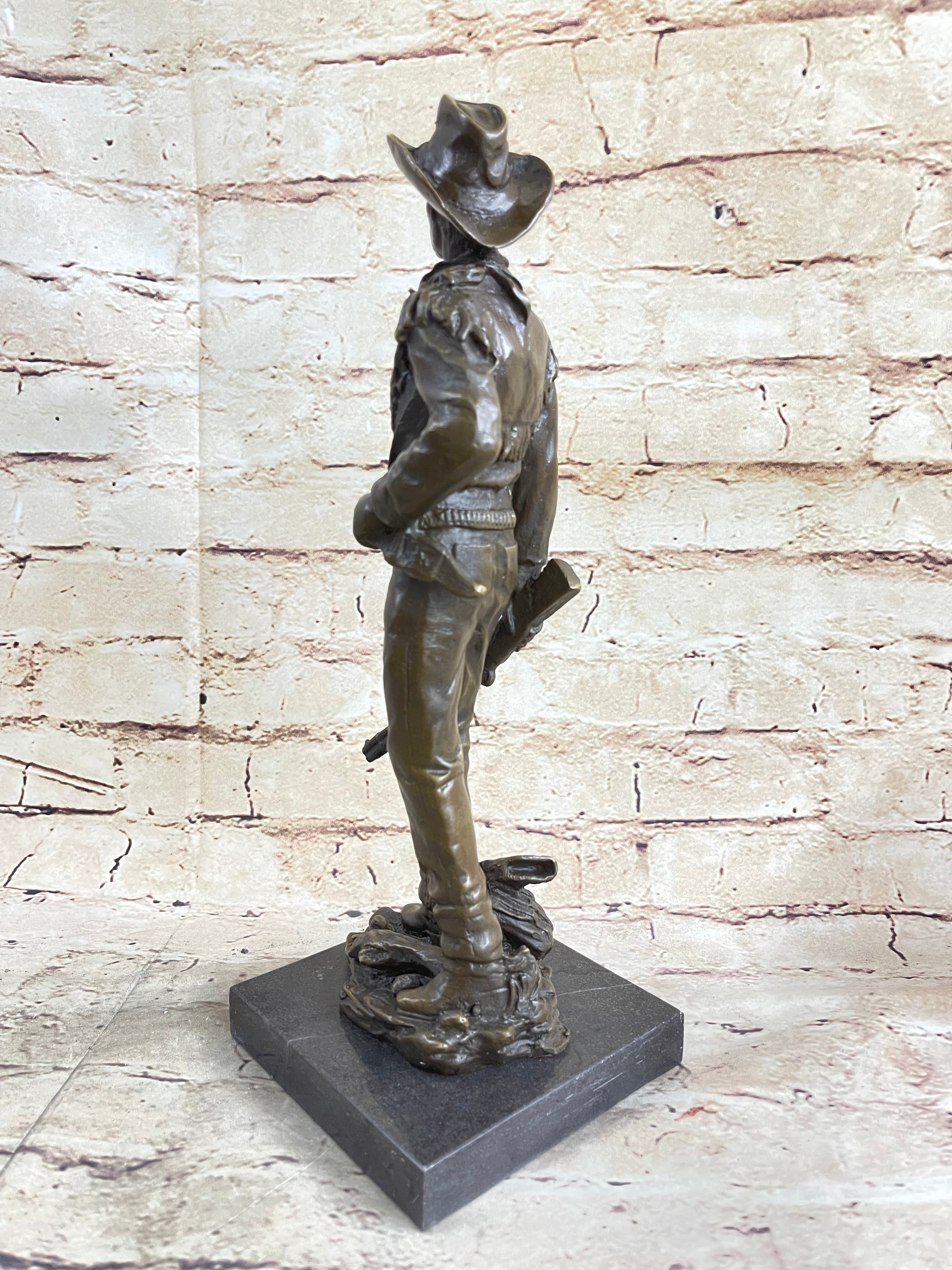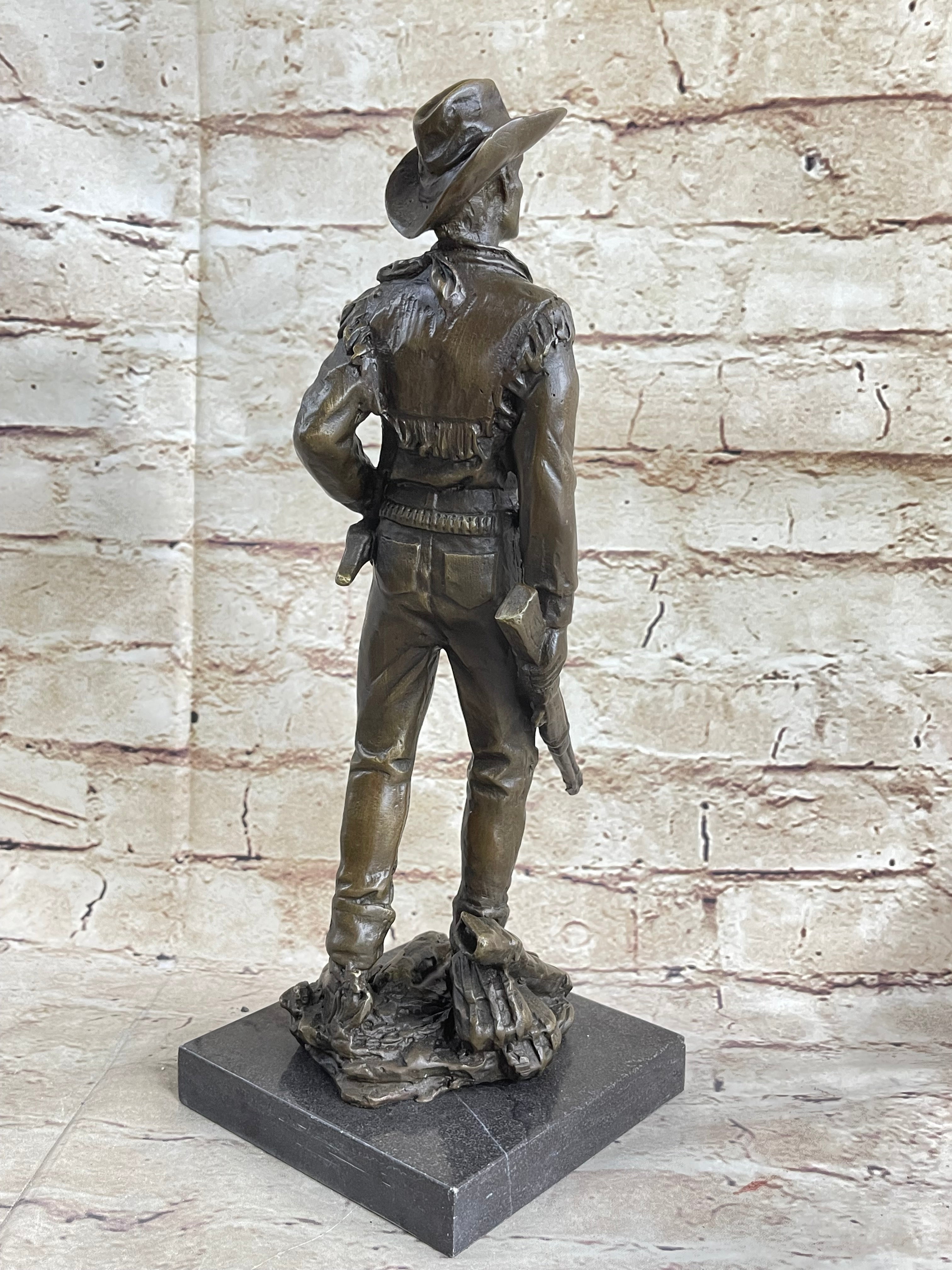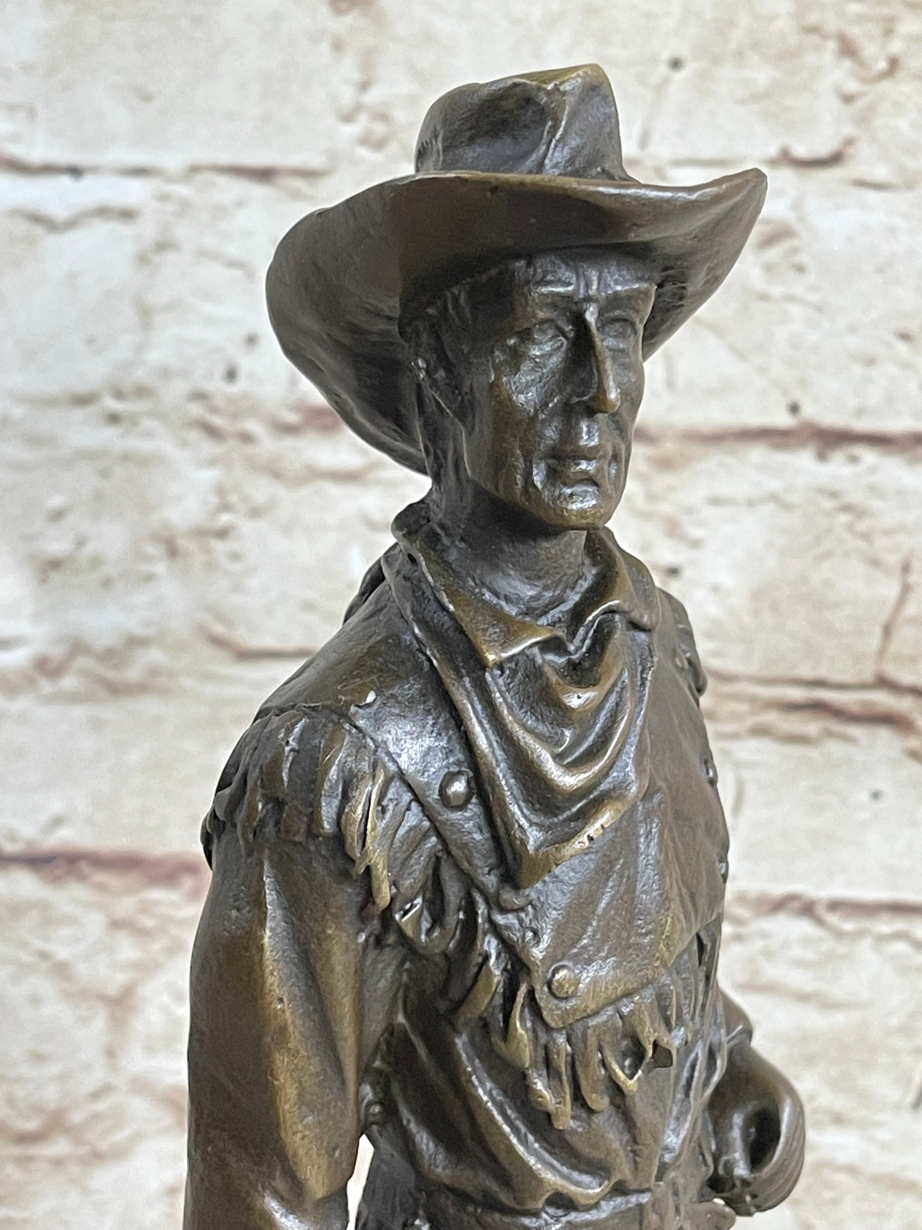 CLASSIC COWBOY BY MILO BRONZE SCULPTURE STATUE ORIGINAL MARBLE BASE FIGURINE ART