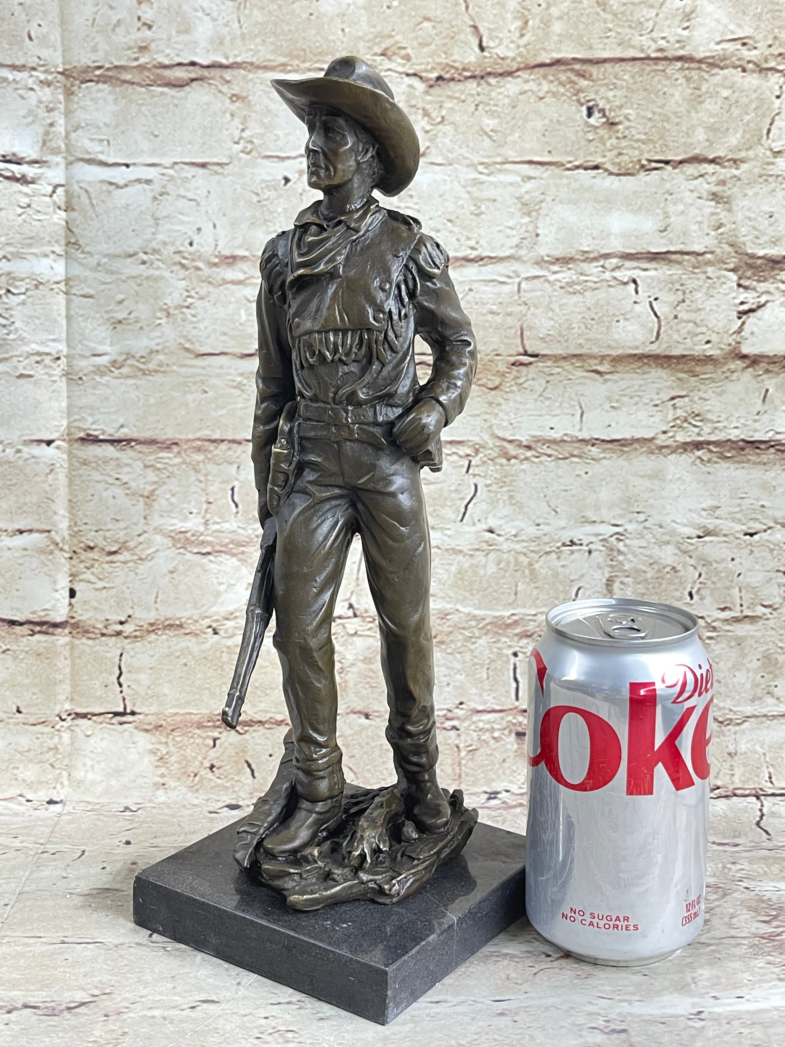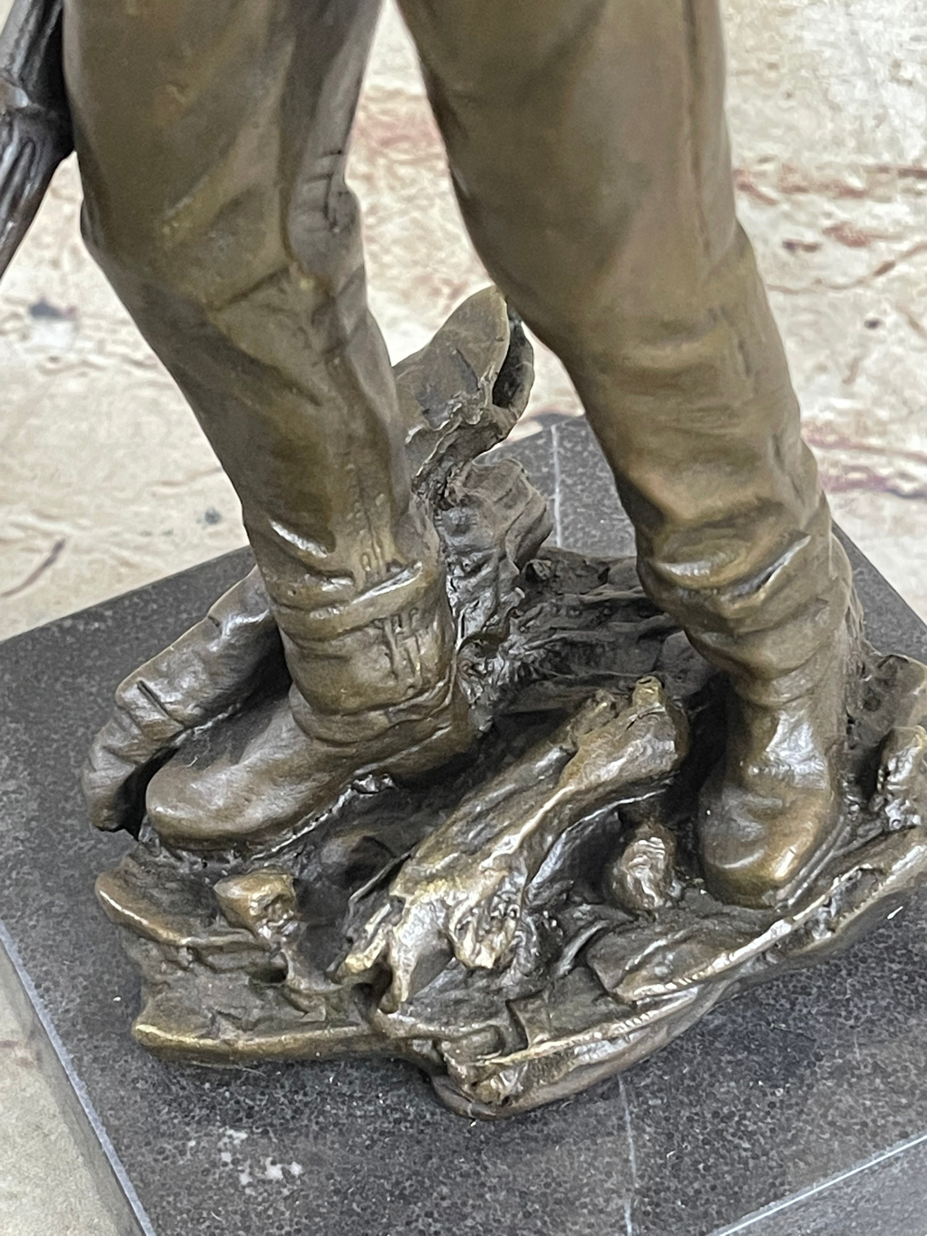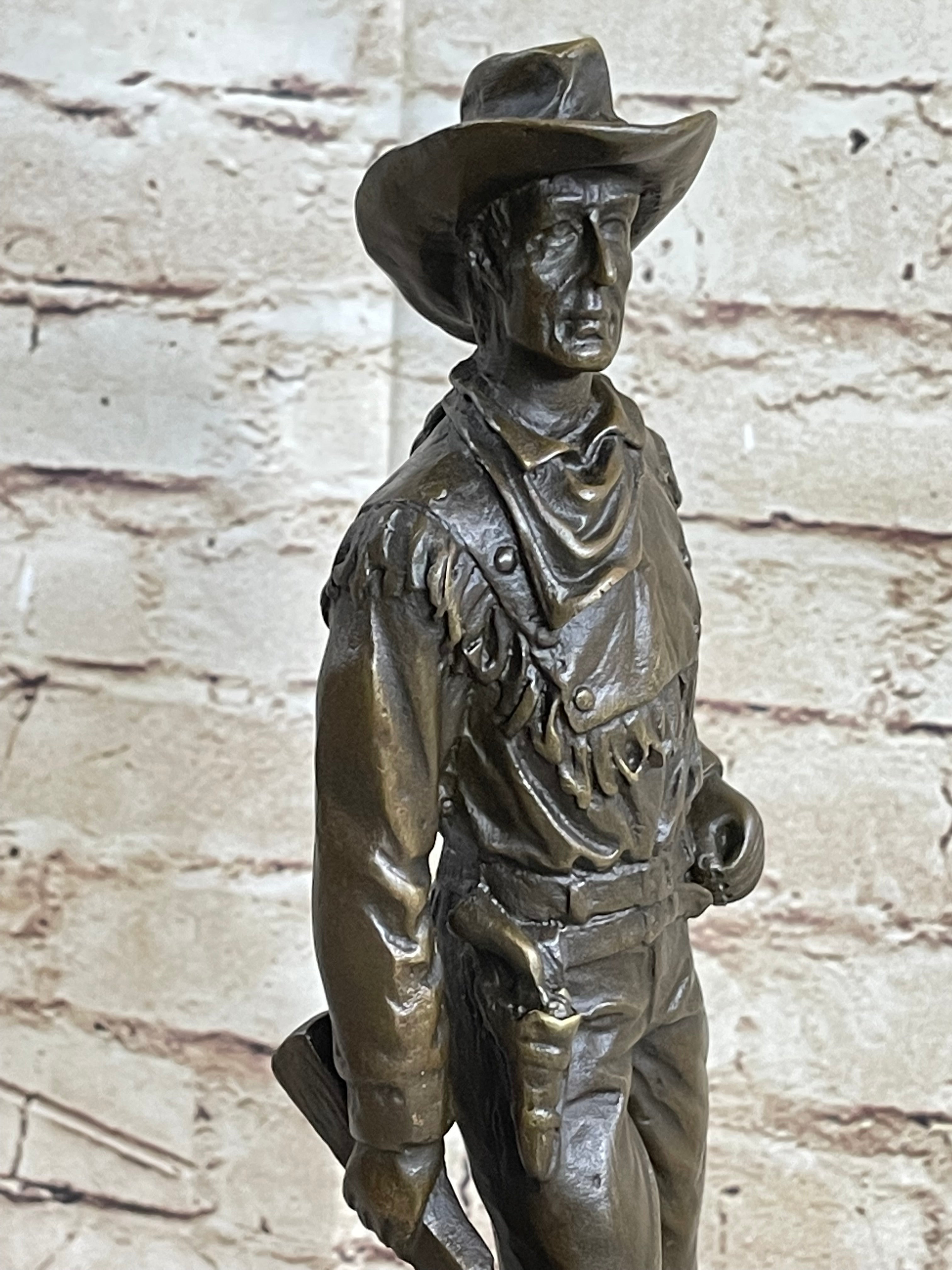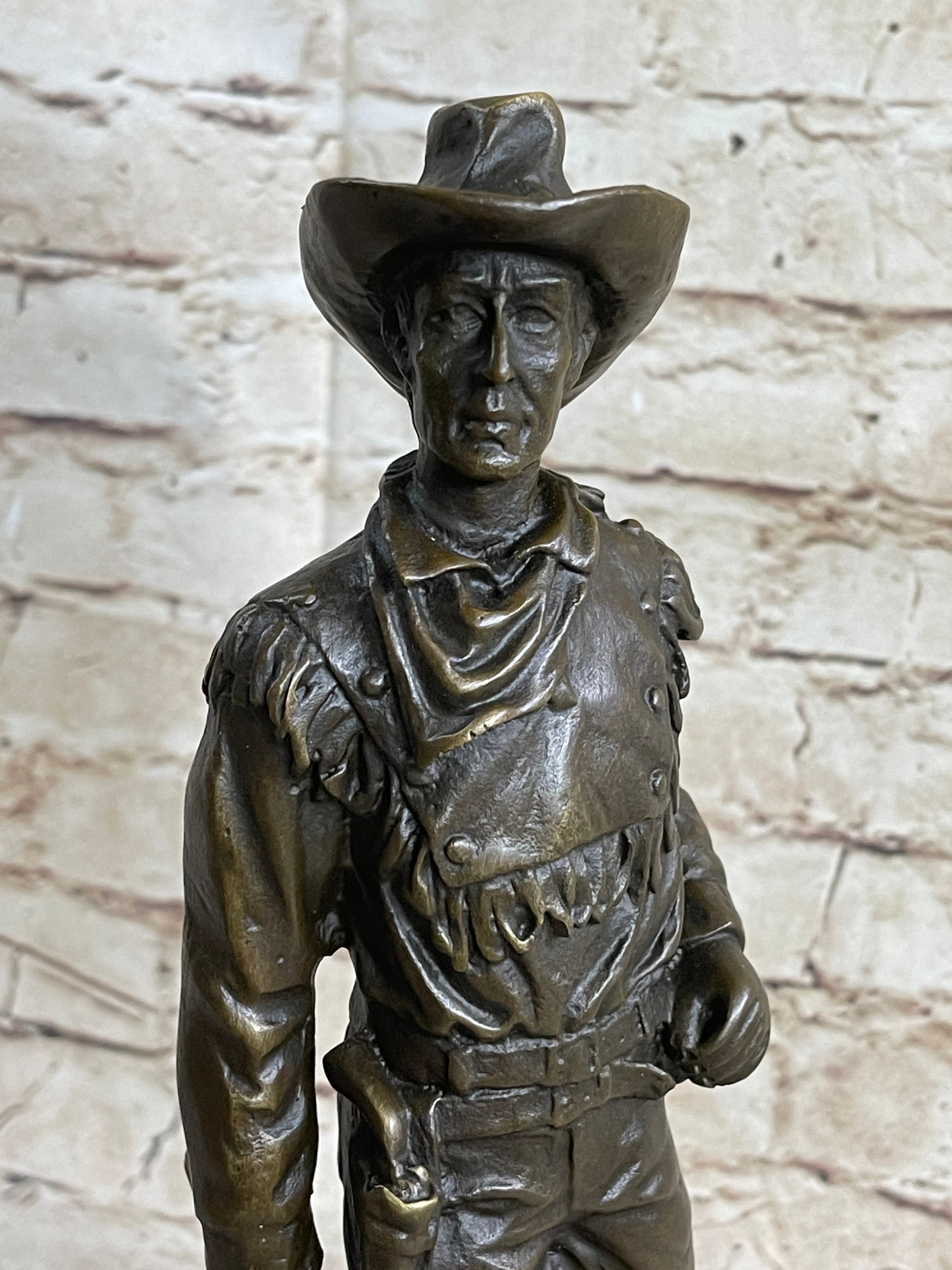 CLASSIC COWBOY BY MILO BRONZE SCULPTURE STATUE ORIGINAL MARBLE BASE FIGURINE ART