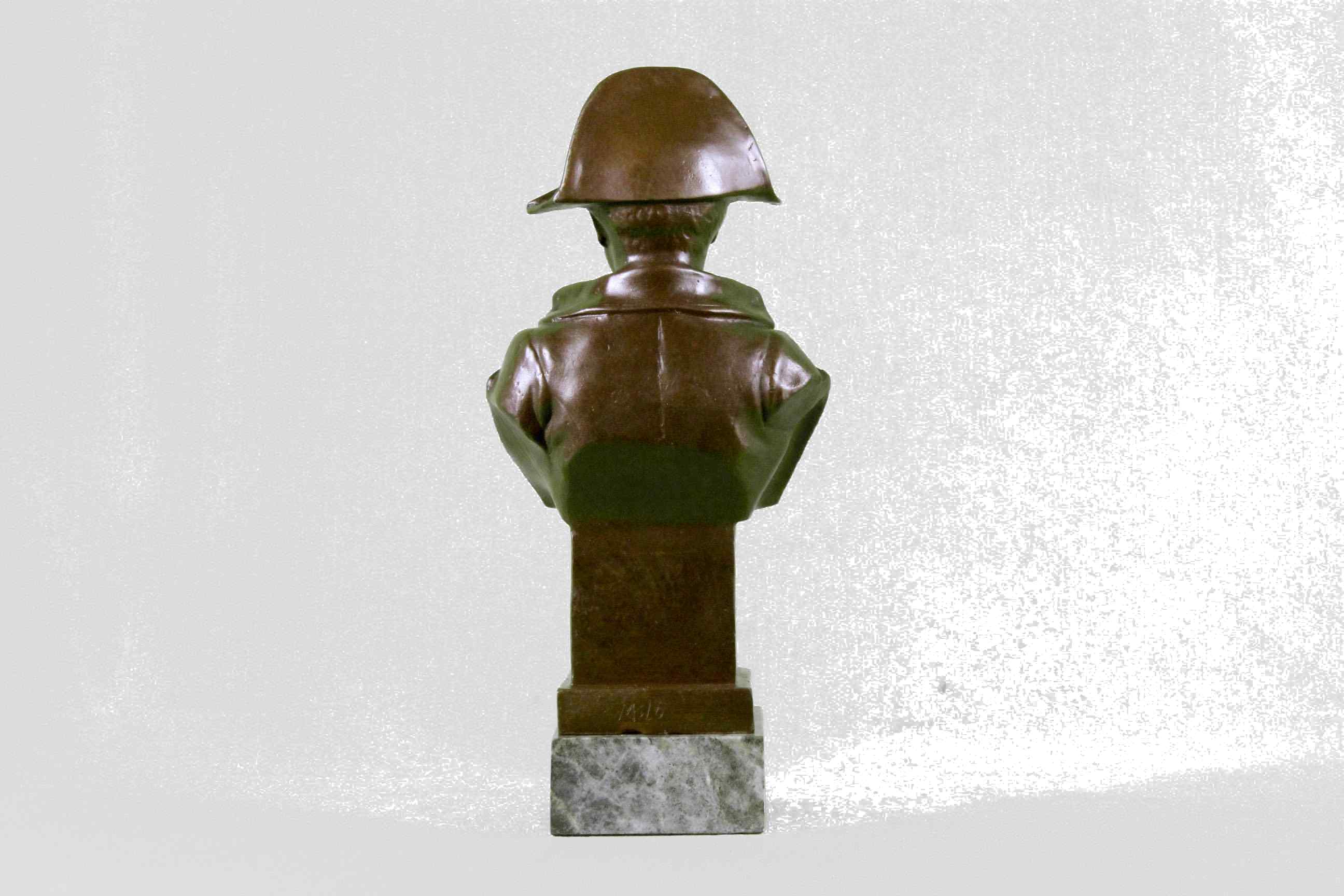 CLASSIC NAPOLEON BONAPARTE BRONZE BUST is an excellent tribute to Napoleon Bonaparte, the famous French emperor and a uniquely charismatic military genius. It makes a wonderful gift for anyone with an interest in history or Napoleon`s original leadership style. The bust is mounted onto a marble base, and stands 11.5 tall and is signed by artist Milo. Breathtakingly beautiful sculpture! Great classic sculpture This is an excellent Museum quality work of art Bronze Sculpture. This has been painstaking cast in Bronze using the highest quality lost wax” casting method, faithful to the original of the artist . It has been cast in our foundry using the finest silicon bronze, and is finished with a classic patina that will endure for centuries. This elegant striking piece would make a splendid impression and fantastic statement. This is a truly rare and unique artwork that you can enjoy for years to come. A great work of art that you will cherish for a lifetime, a stunning piece at a very affordable price. This piece is in excellent NEW MINT CONDITION and is Highly desirable. This item is available for a limited time only so act now.Bronze Dimensions with Marble Base:Height 11.5" x Width 6"