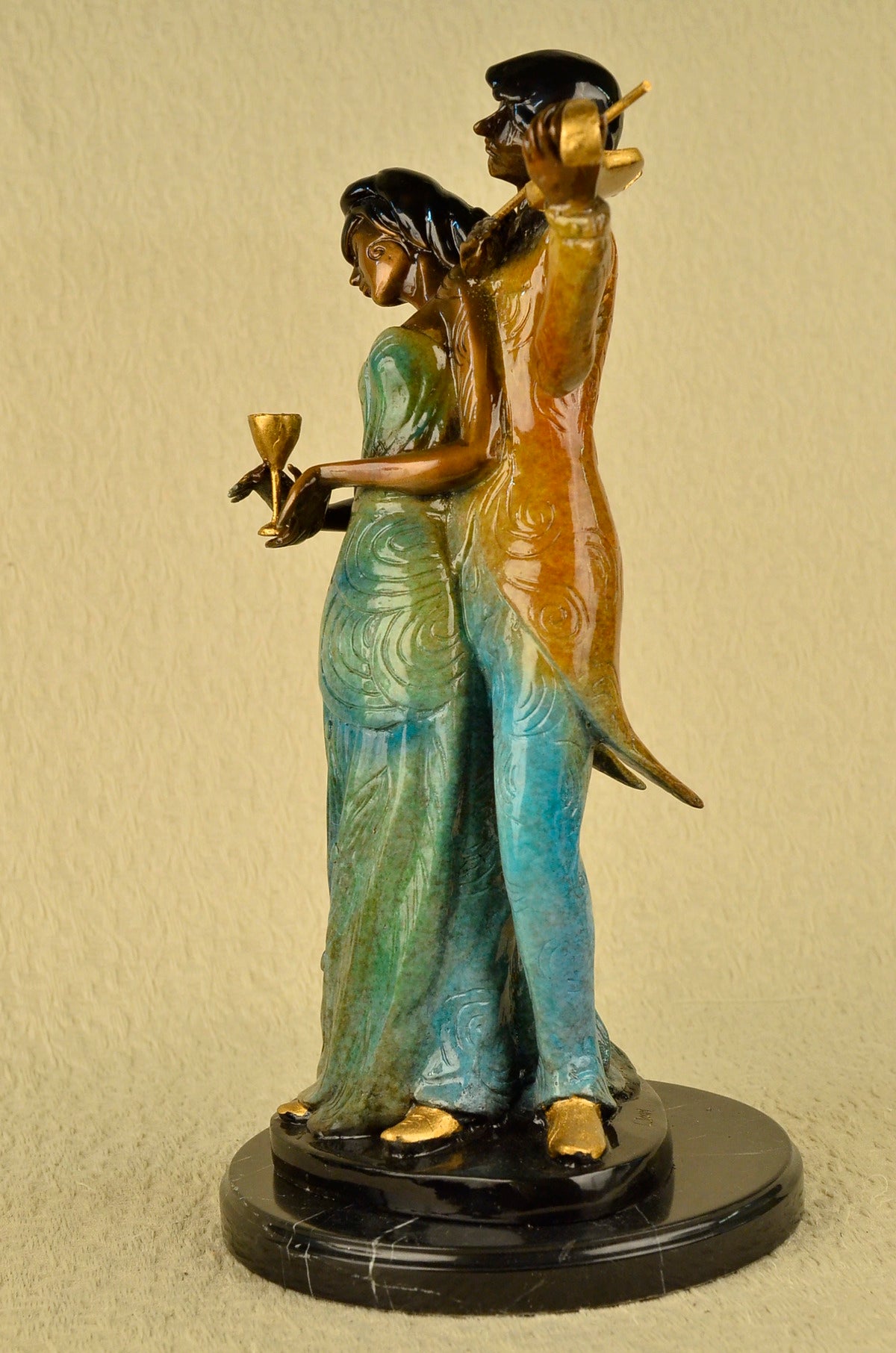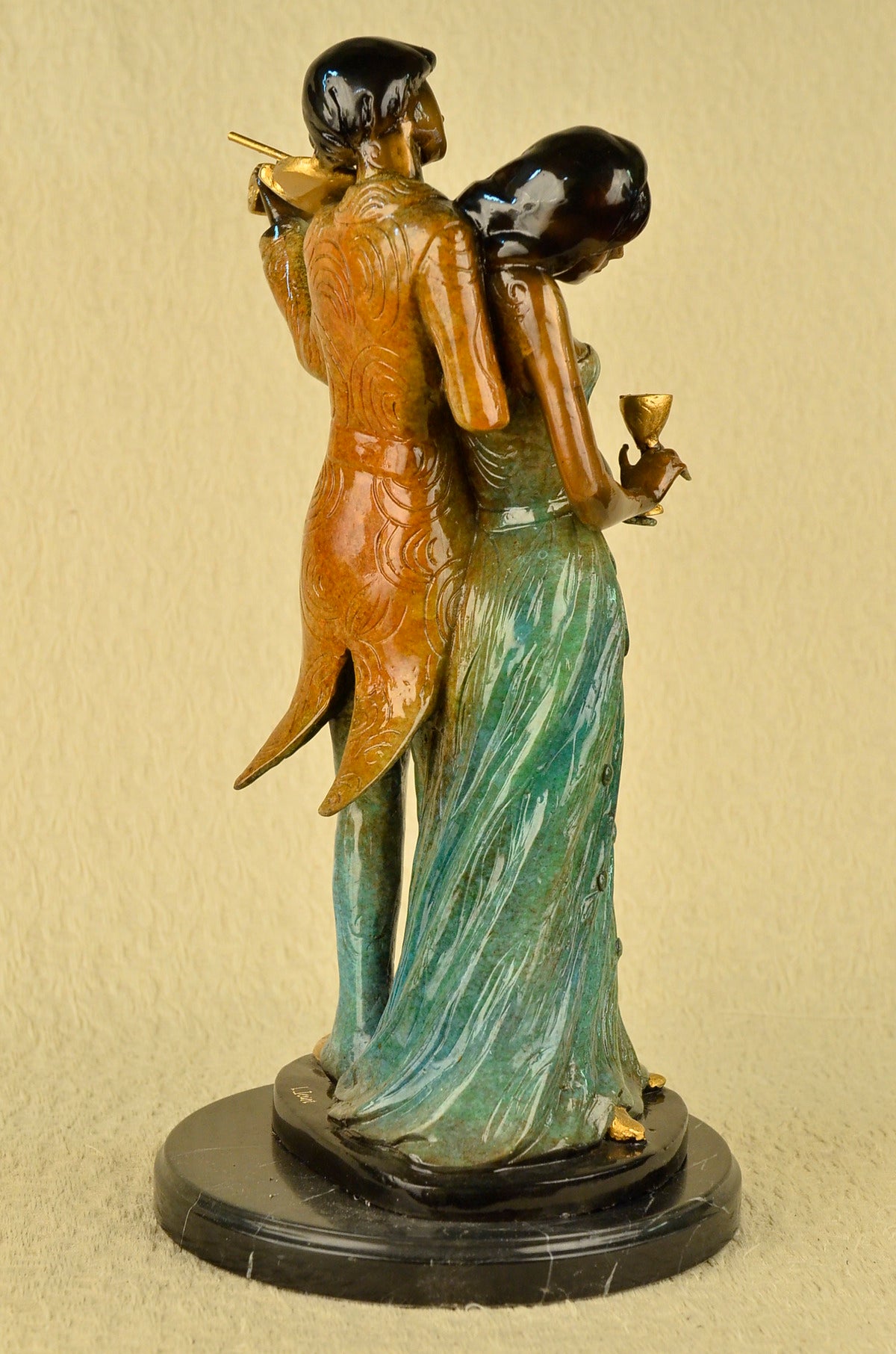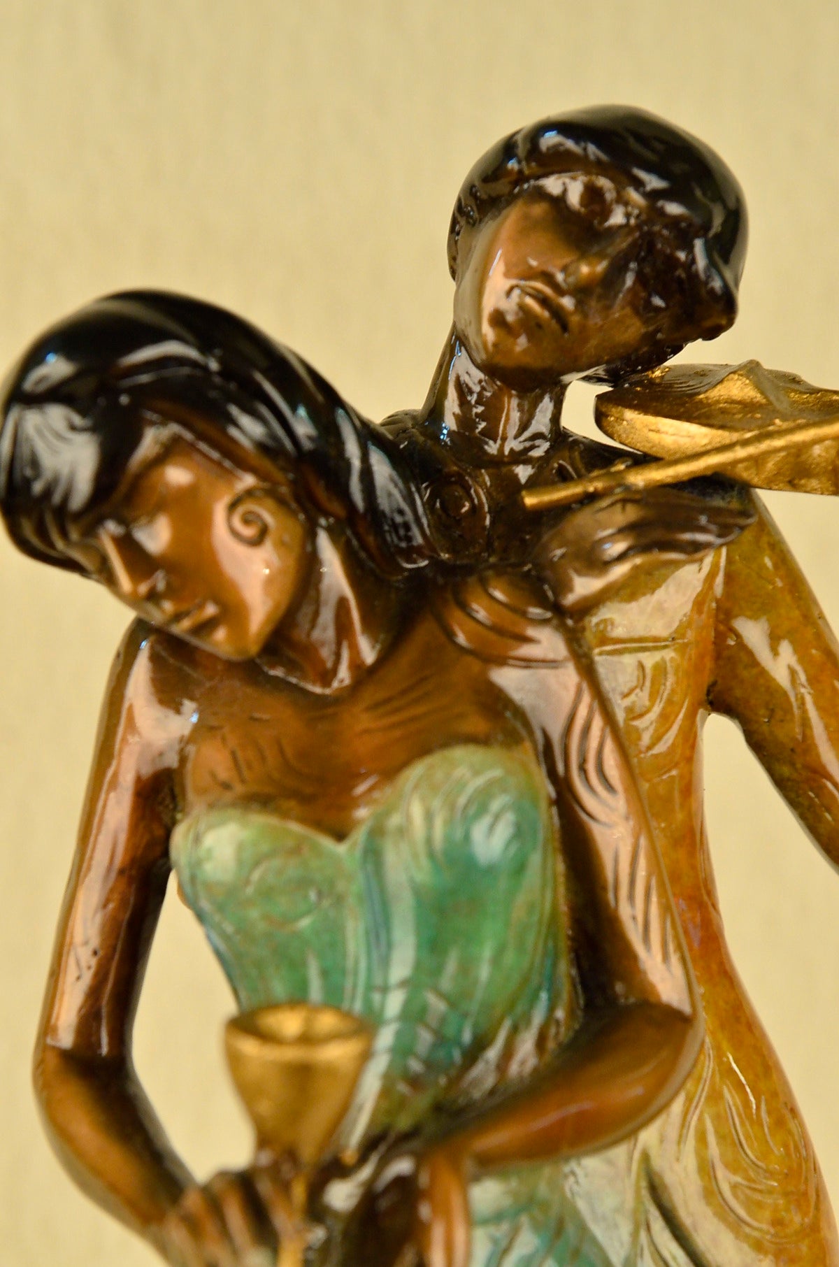 CLEARANCE SALE Patina Romantic Couple Bronze Sculpture Statue Marble Base