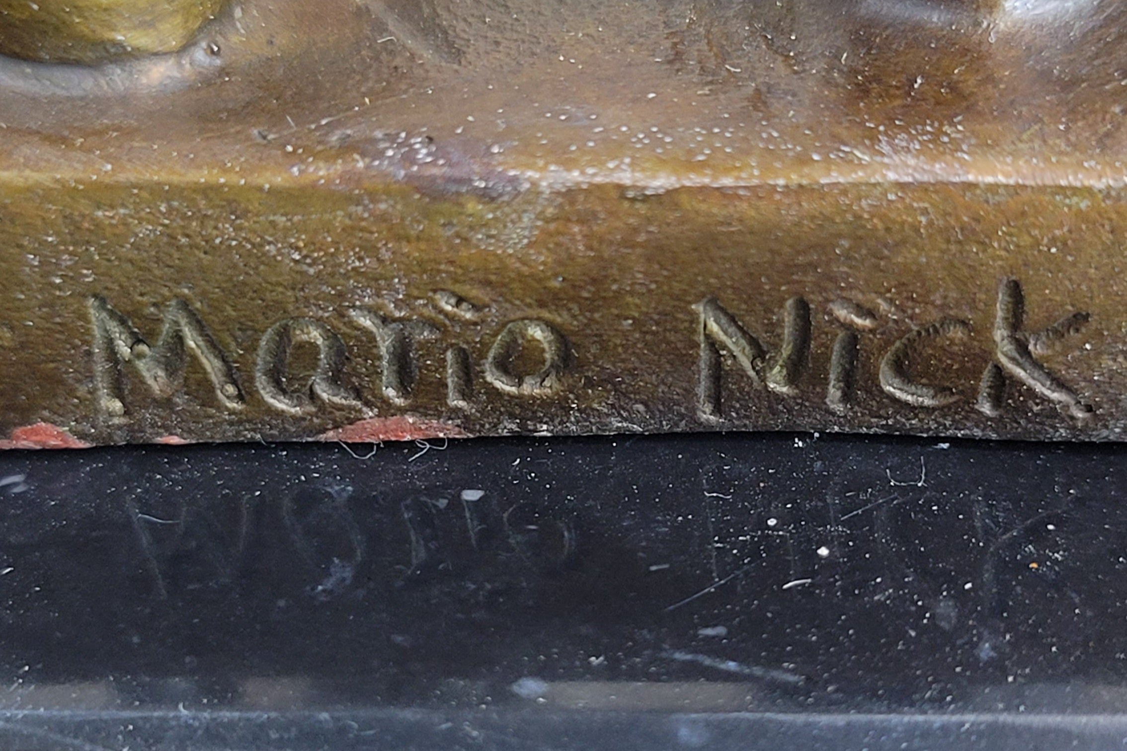 Using the esteemed "Lost Wax Method," the sculpture captures the nuances of emotion and connection between the two figures. The technique ensures that every detail is preserved in bronze, creating a lasting representation of this intimate moment. The sculpture is signed by the artist himself, Mario Nick, reaffirming its authenticity and the artist's personal connection to his creation.