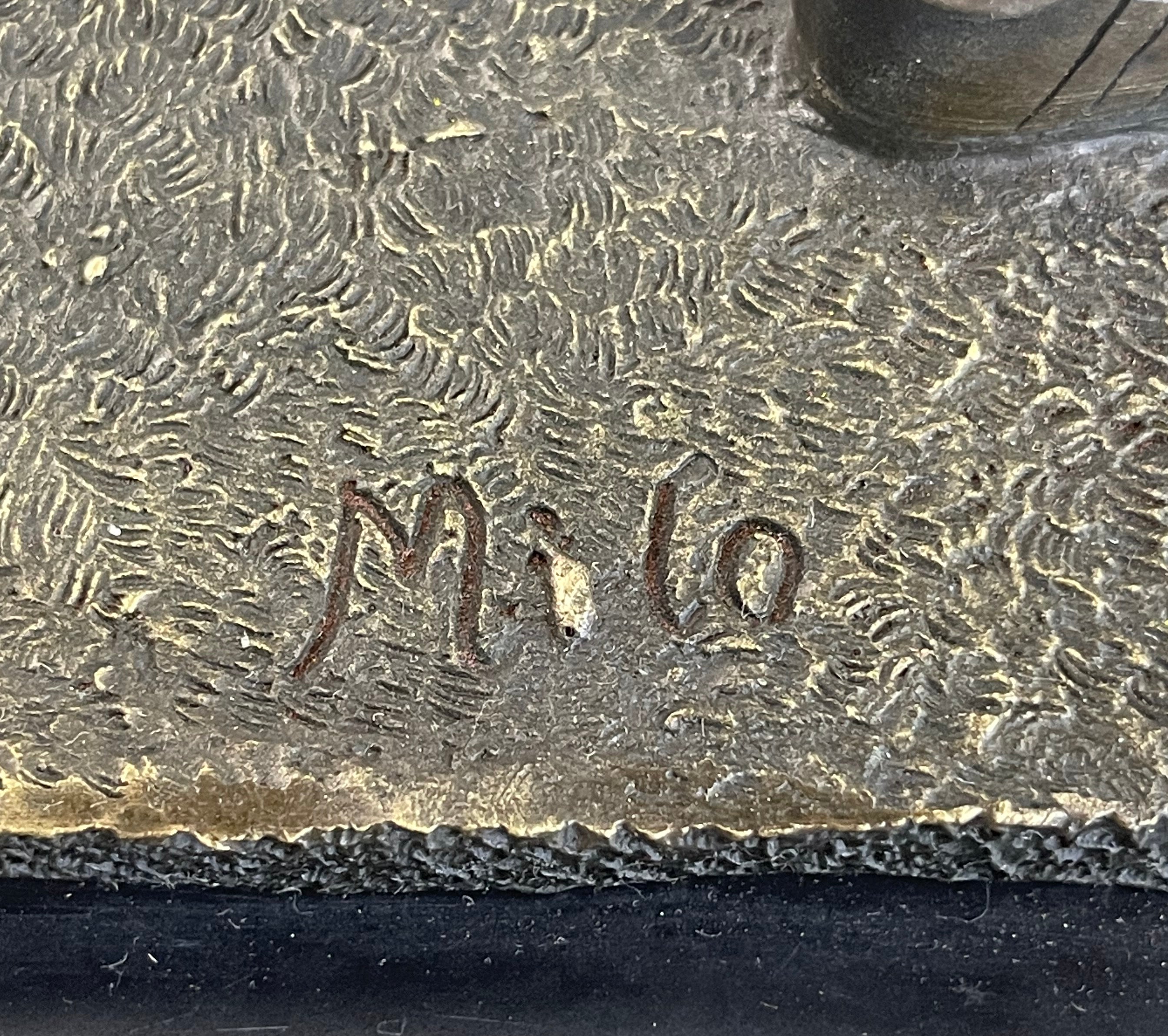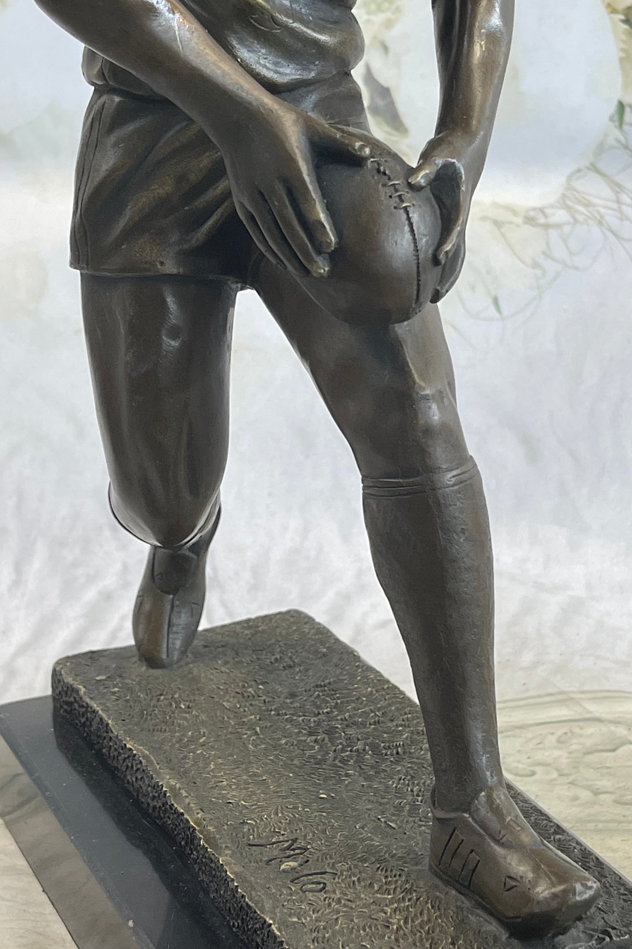 Handmade and cast using the "Lost Wax Method," this sculpture is a true work of art. It is mounted on a green marble base, adding an elegant contrast to the bronze figure. The piece is signed by the renowned artist Milo, ensuring its authenticity and value. This sculpture is a perfect tribute to the dedication and athleticism of Australian football players, making it an ideal addition to any sports enthusiast's collection or a striking centerpiece in a home or office.Bronze Dimensions with Marble Base: Height 14.5" X Width 9"