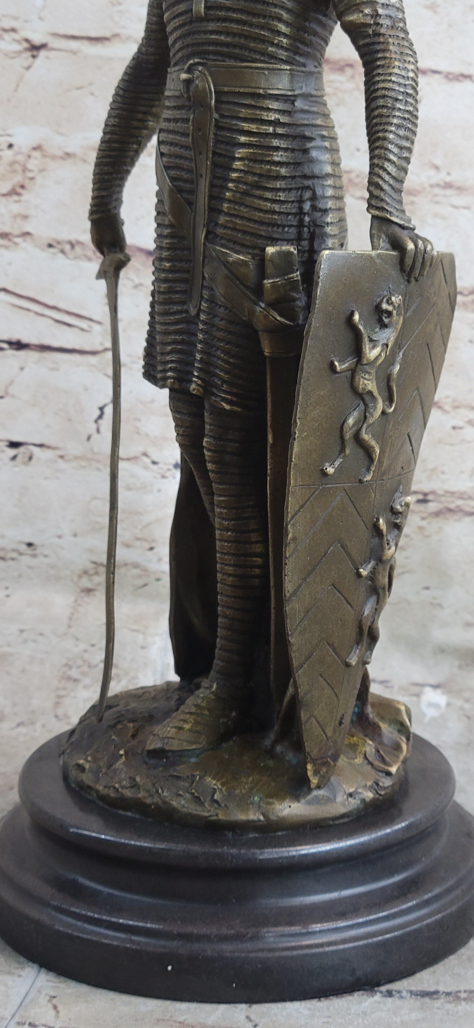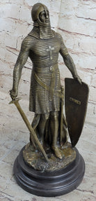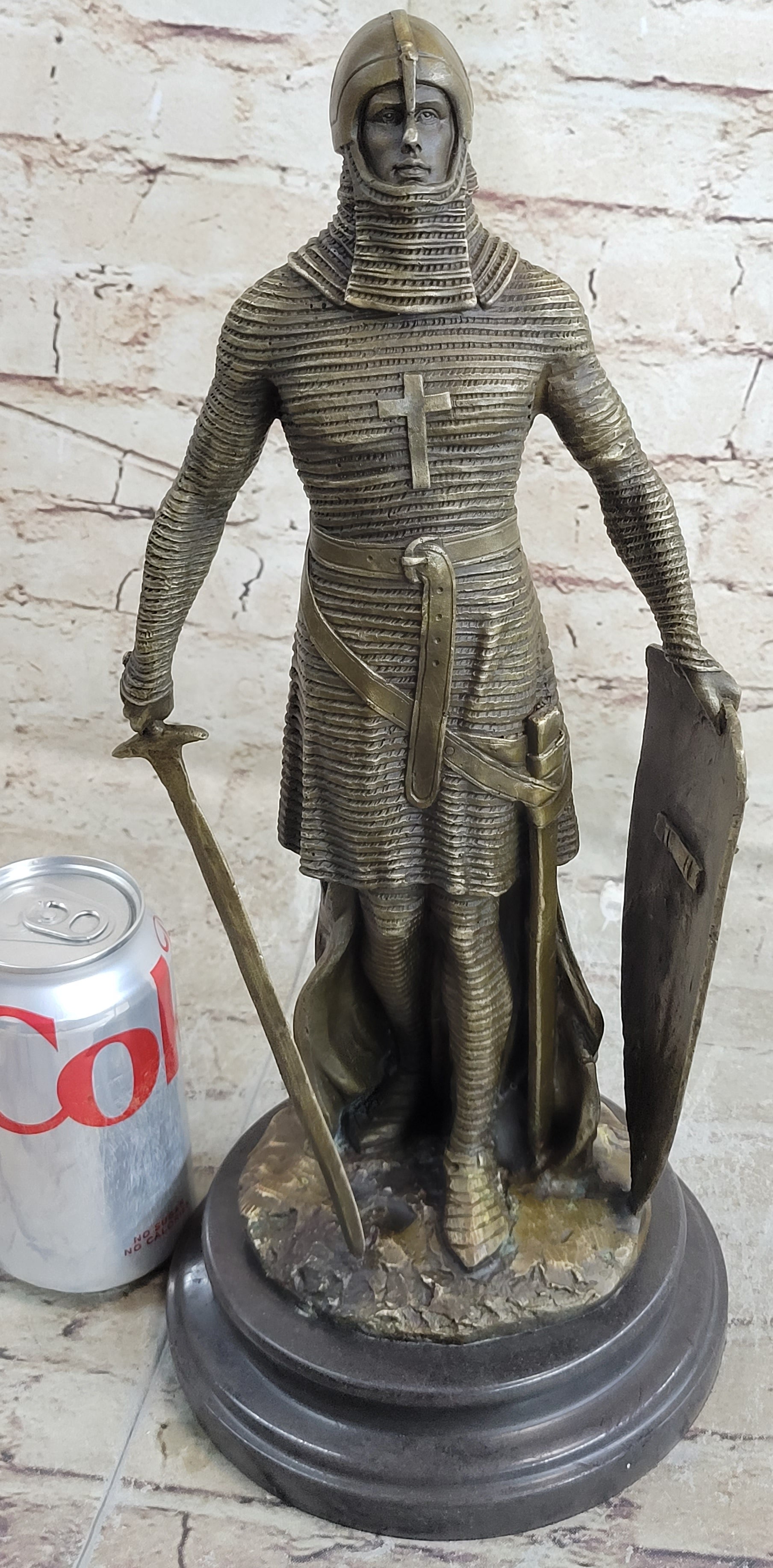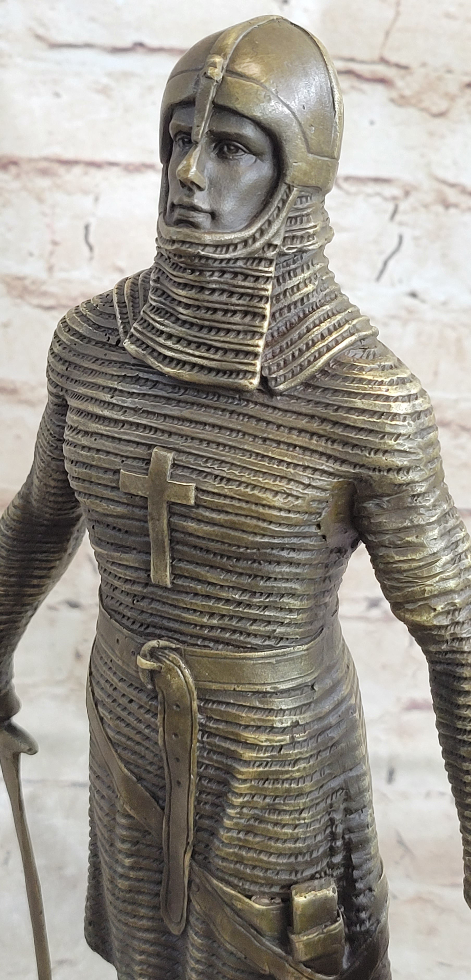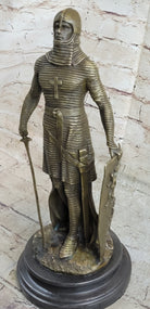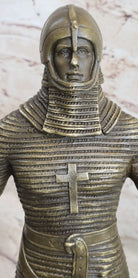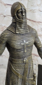 Crusader Knight Templar Bronze Statue Sculpture Figure on Marble Base