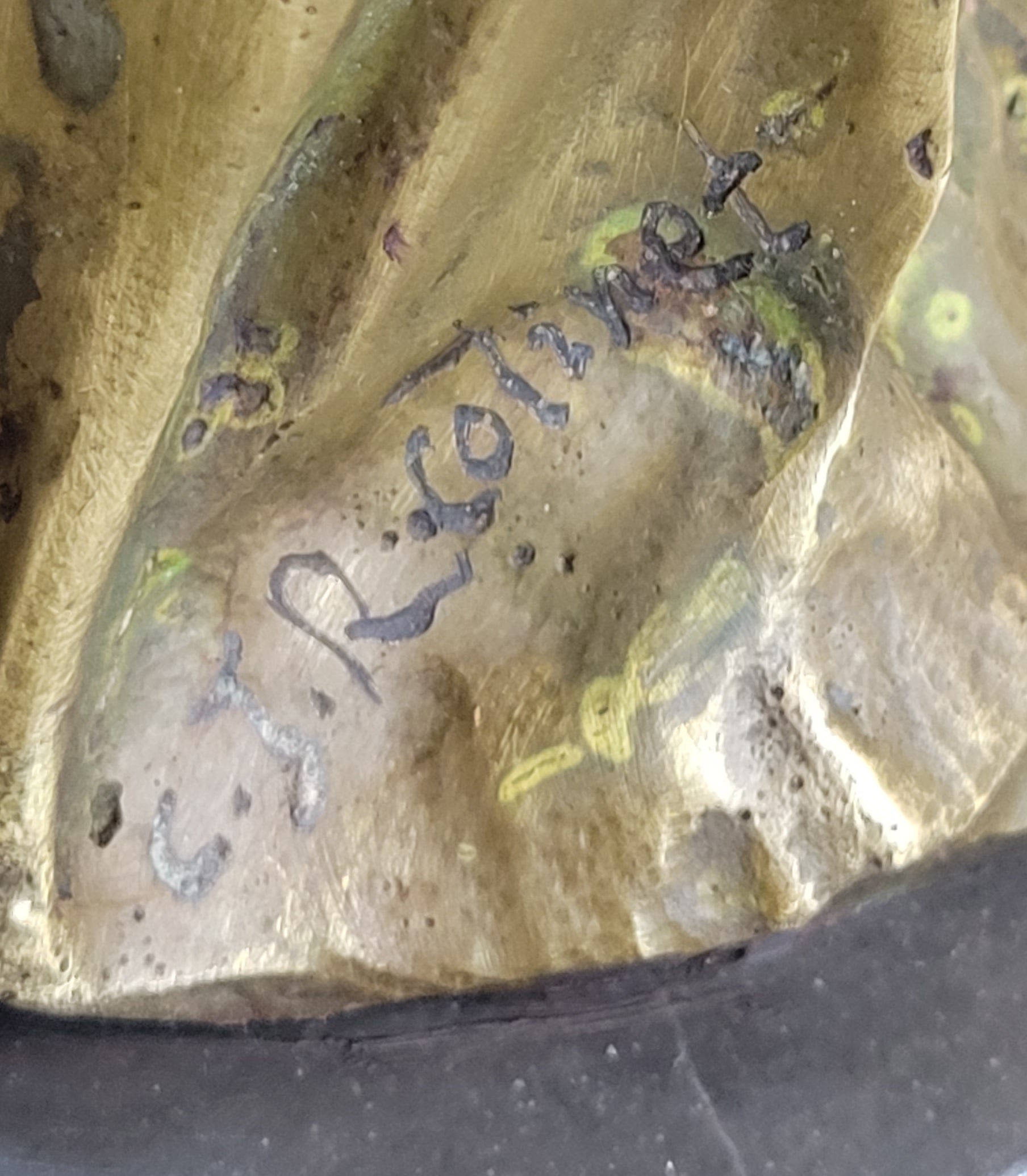 The sculpture stands proudly upon a black marble base, symbolizing strength and sophistication. Imprinted with the European Bronze Finery stamp of quality, it assures the authenticity and high standard of craftsmanship. The base also bears the signature of the talented artist, J.R Colinet, further solidifying its value and uniqueness.