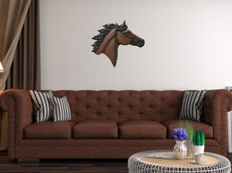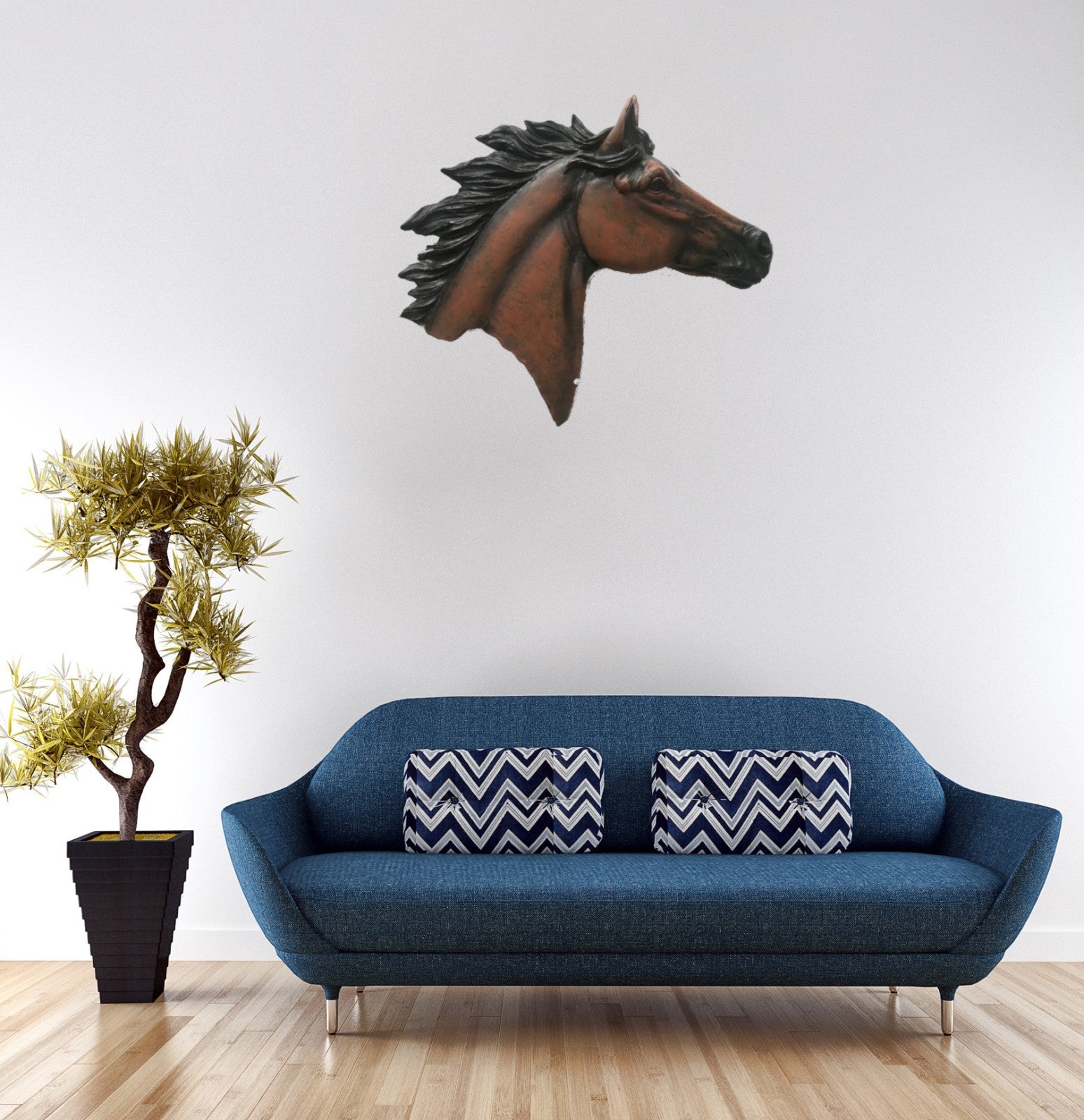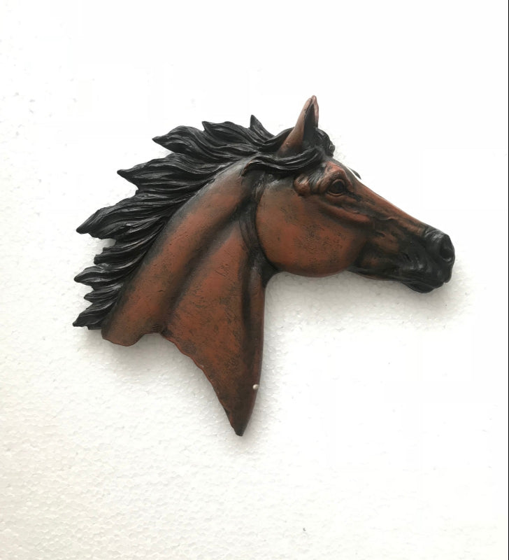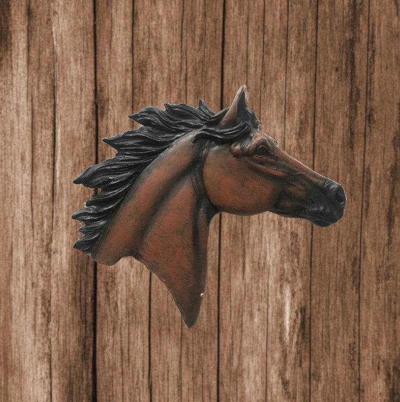 Hello statement maker!!!! This horse head sculpture will sure add the missing farmhouse touch to any of your rooms. Feature it on any of your walls and you will have a statement piece year round! Just add a preserved boxwood wreath around it in the Spring, a nice lavender wreath in the summer, one of earthy tones in the Fall or just a cotton wreath in the winter and it will look gorgeous throughout the seasons!* Crafted of Cold Cast Resin Metallic Bronze Finish