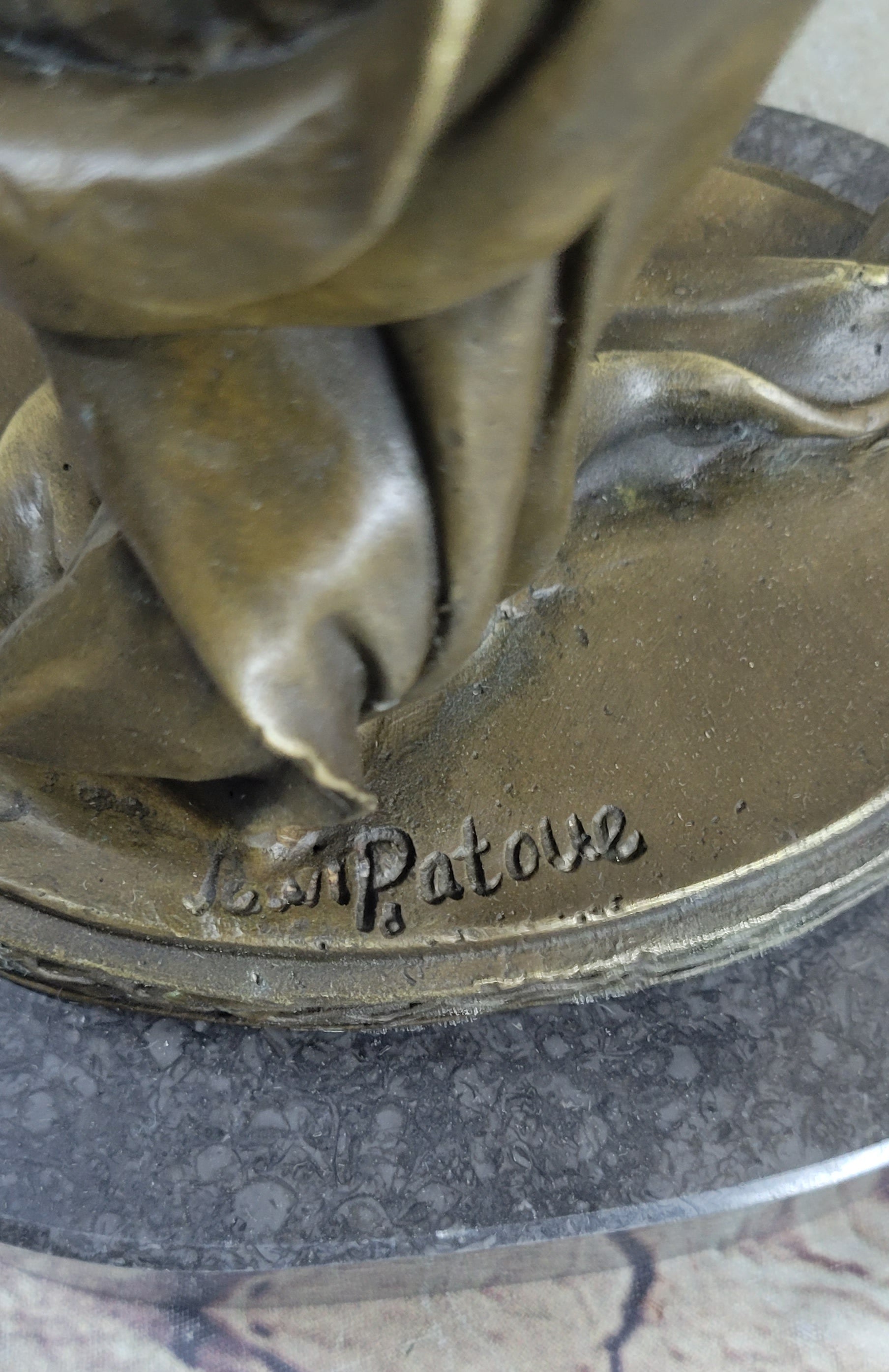 Signed by the esteemed artist Jean Patoue, this candelabra transcends mere decoration to become a cherished collectible. Its association with a renowned creator adds another layer of significance, elevating it beyond mere ornamentation to a symbol of artistic mastery and cultural appreciation. As it graces any interior with its presence, it serves as a reminder of the enduring legacy of Art Nouveau and the enduring appeal of finely crafted objets d'art.Bronze Dimensions with Marble Base: Height 16" X Width 8"