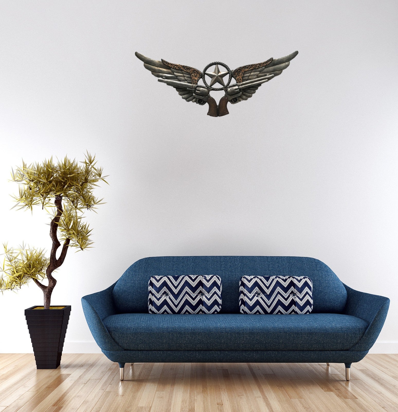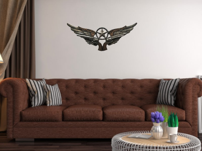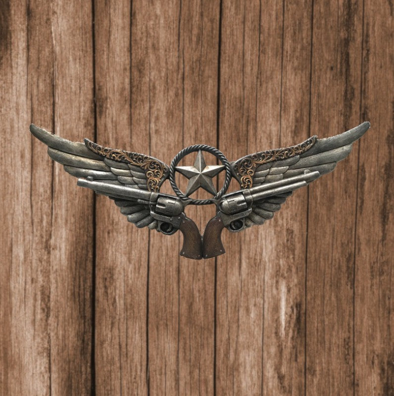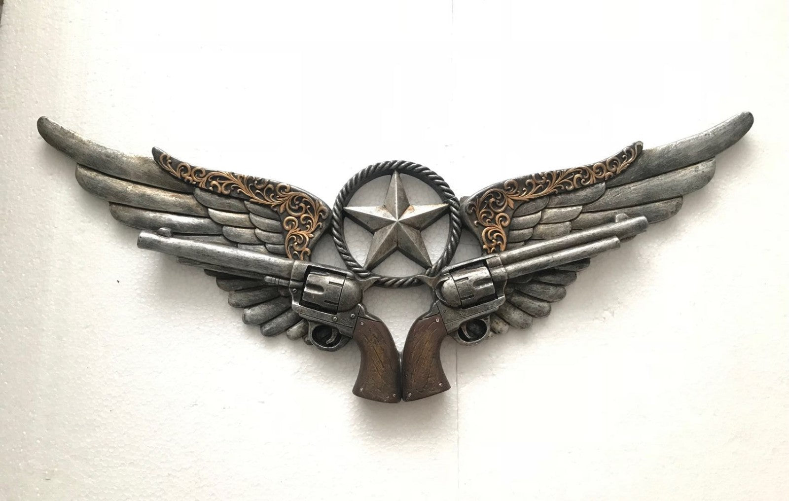 Dual Guns Hand Made Wall Mount Gun Rifle Pistol Hanger Hook Sculpture Deal Decor