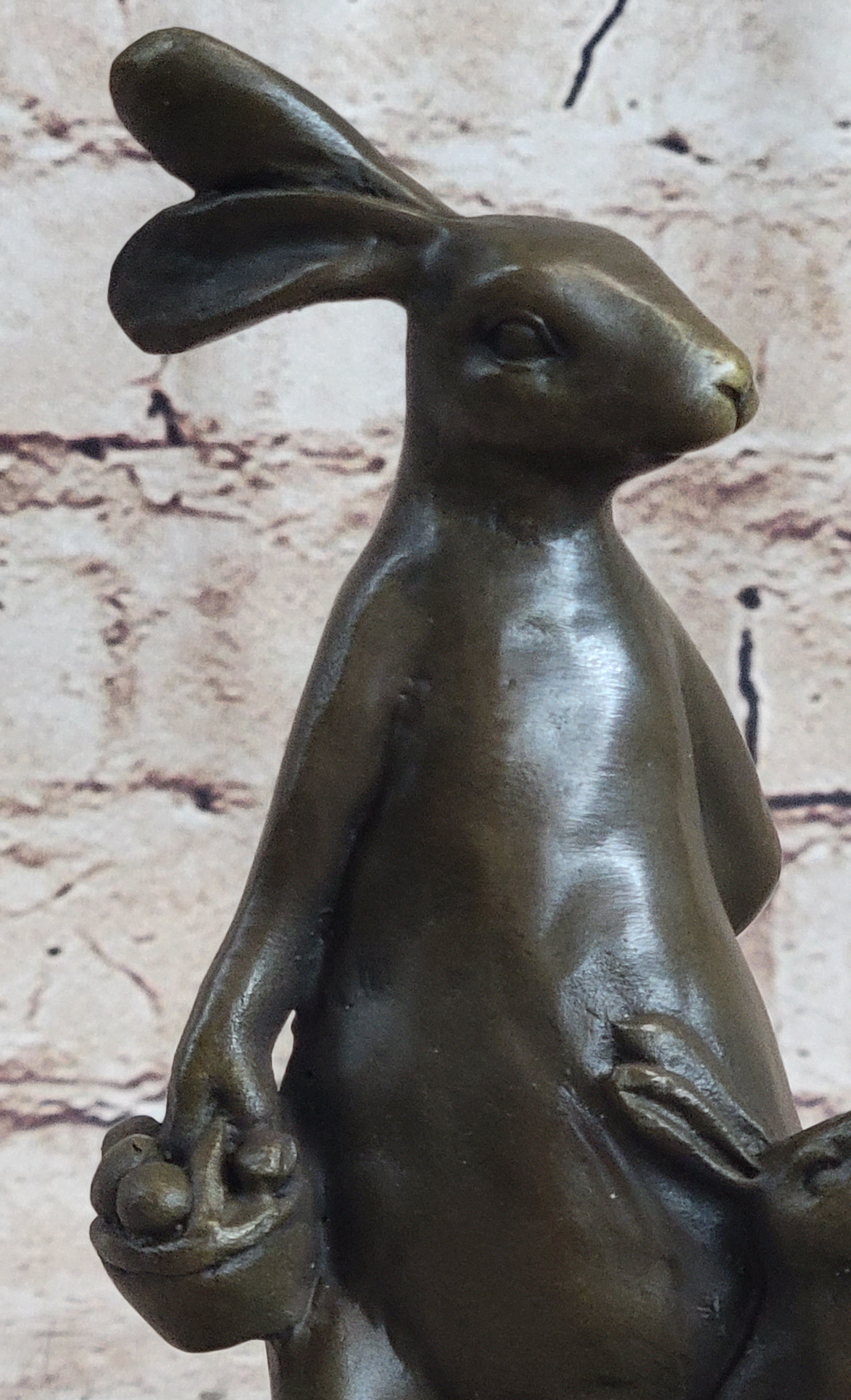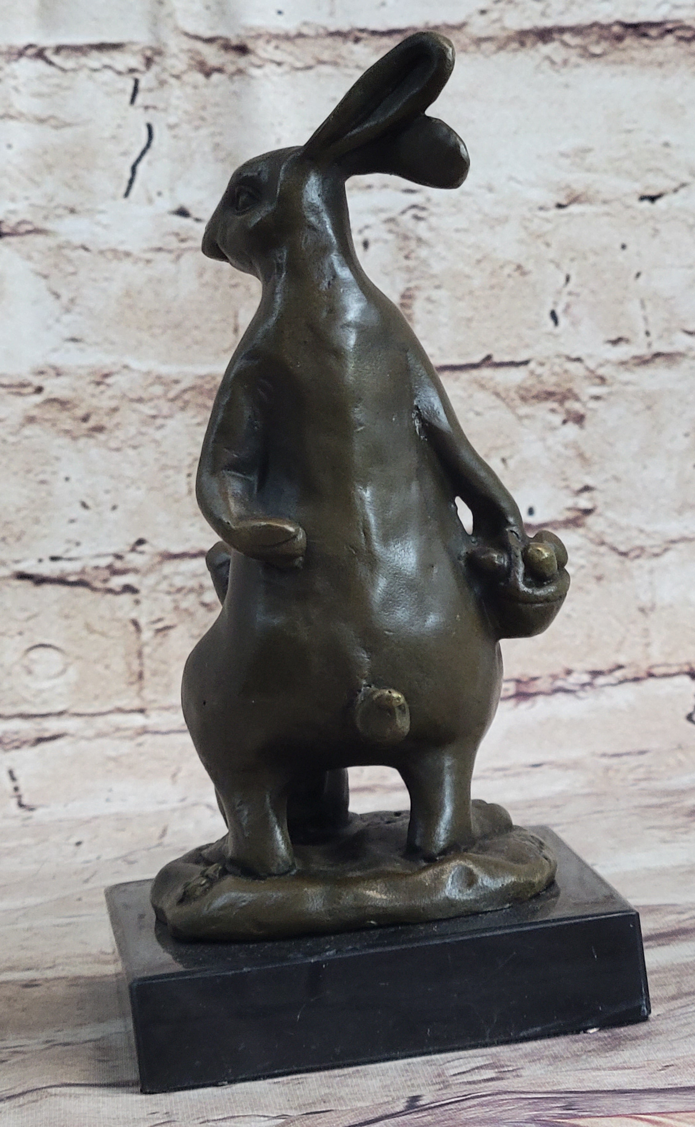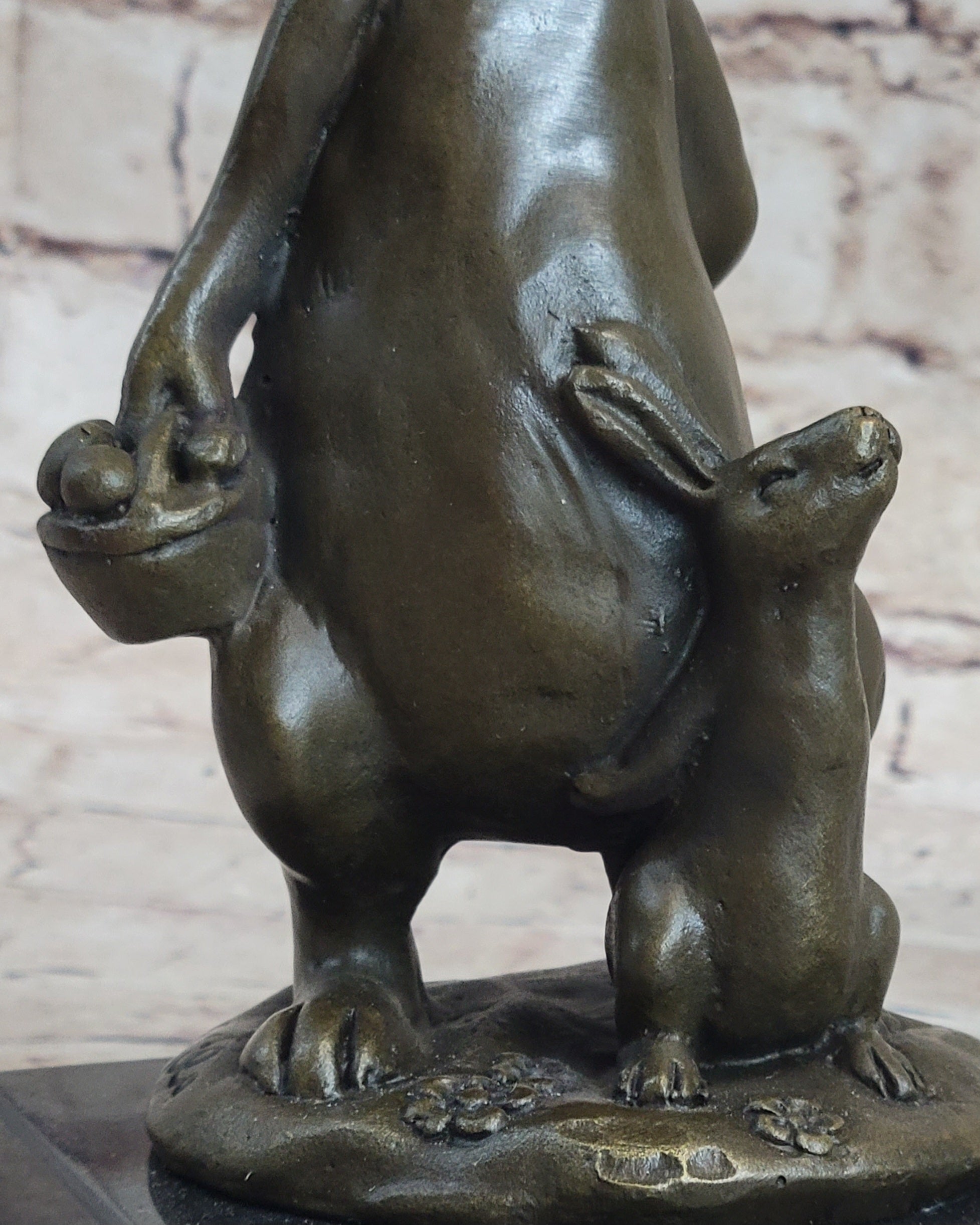 Easter Bunnies Rabbits Bunny Rabbit Holding Basket of Eggs Bronze Sculpture Art