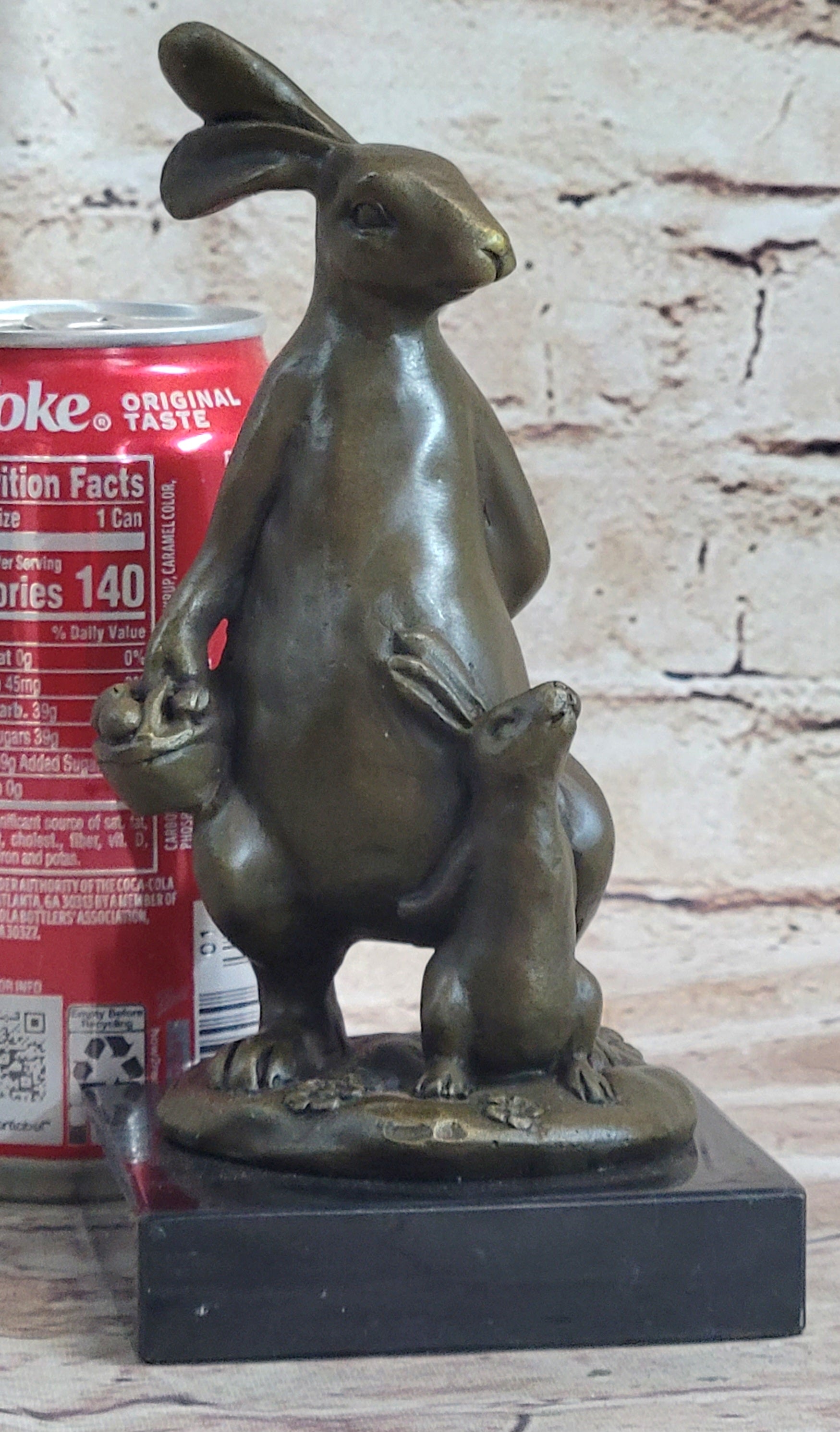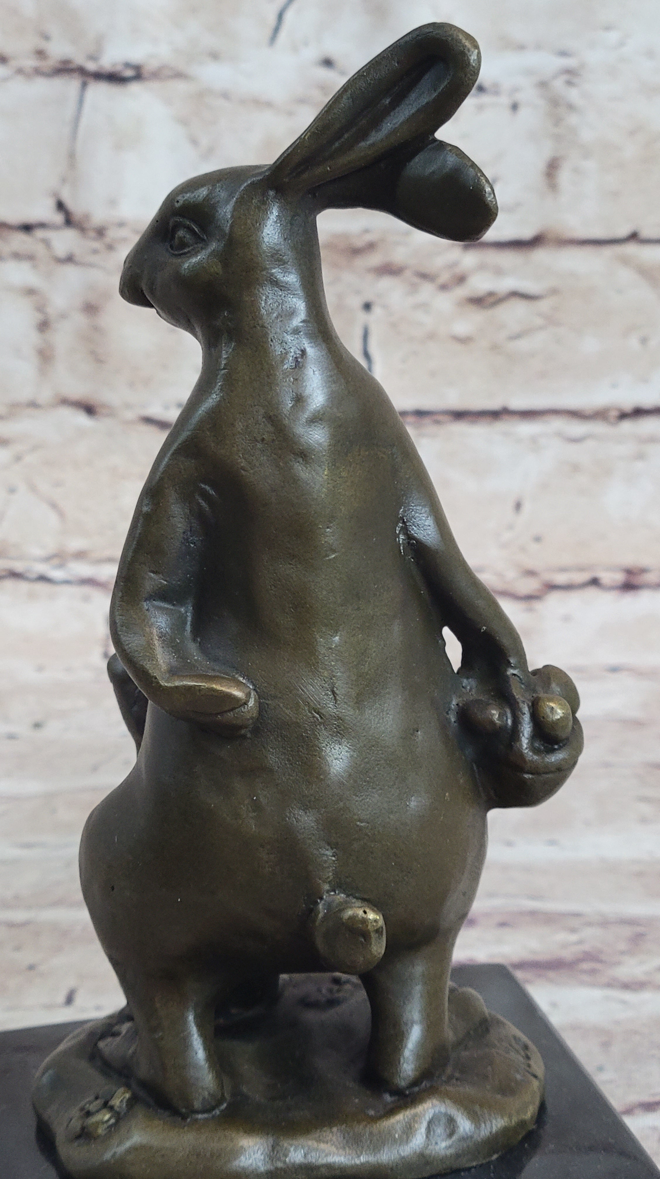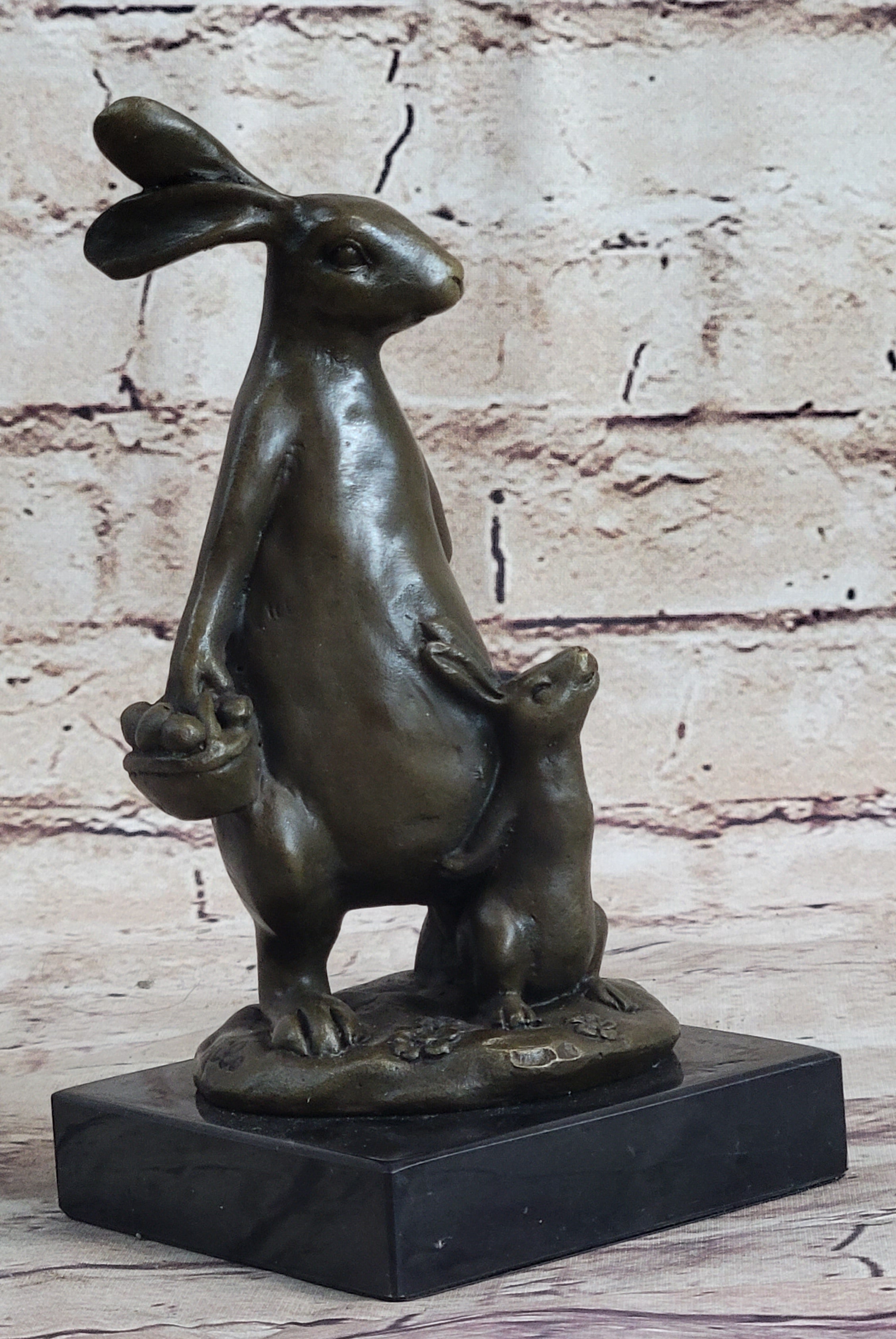 Easter Bunnies Rabbits Bunny Rabbit Holding Basket of Eggs Bronze Sculpture Art