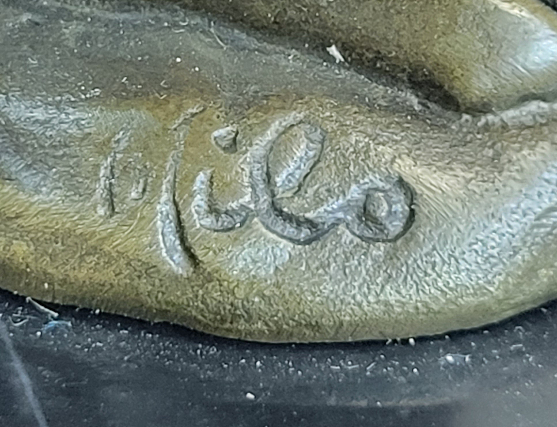To signify its authenticity, the sculpture proudly bears the signature of the renowned artist Milo, known for his exceptional talent in capturing the essence of nature and its tender moments. Whether as a cherished collectible or a thoughtful gift, this sculpture celebrates the beauty of love, nurturing, and the wonders of the natural world.Bronze Dimensions with Marble Base: Height 7" X Width 3 1/2"