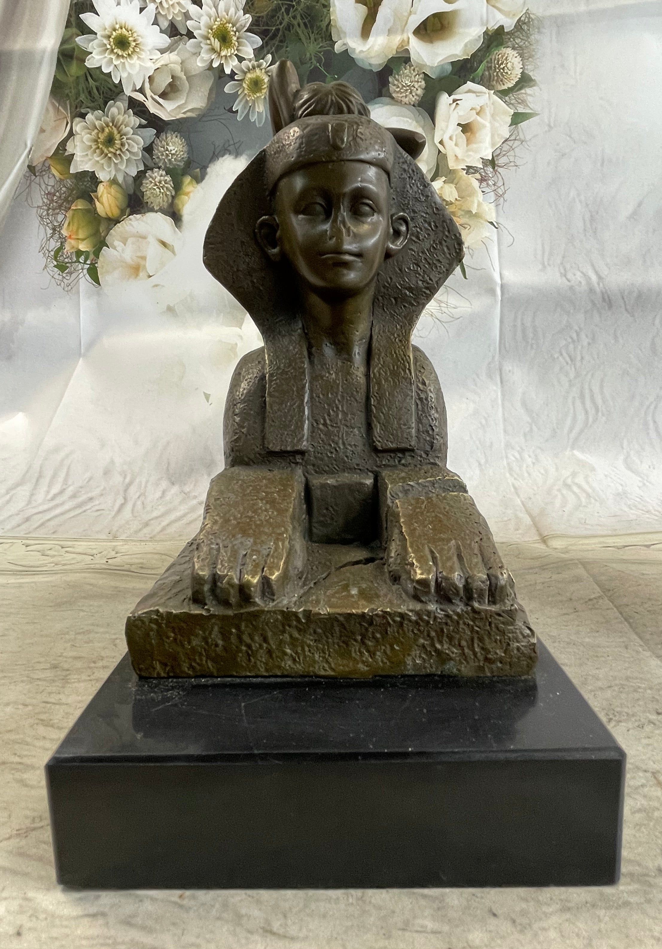 T. Herlinger (1904) Egyptian Sphinx w/ Nude Girl Art Deco Bronze Statue Sculpture 10" x 12"