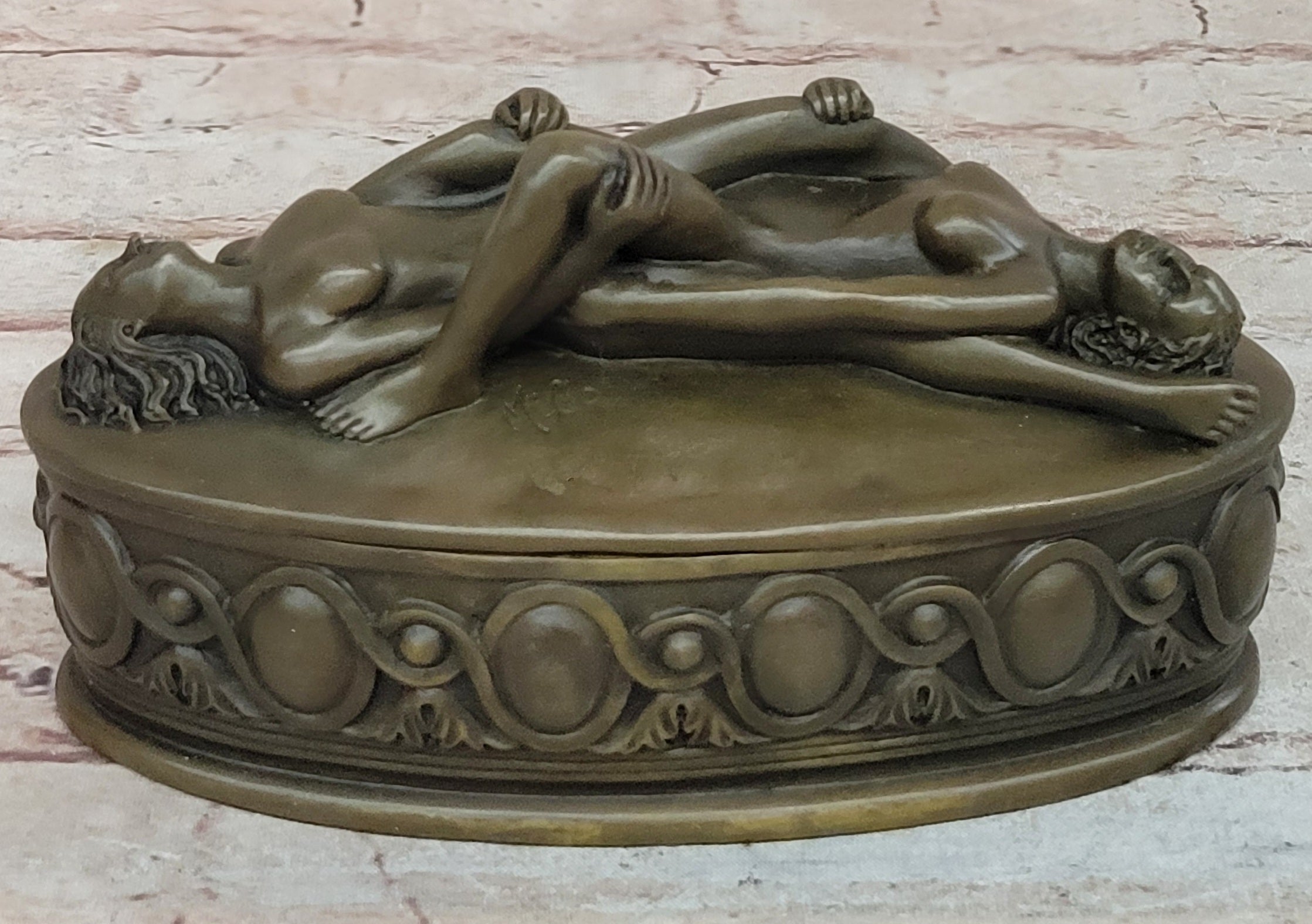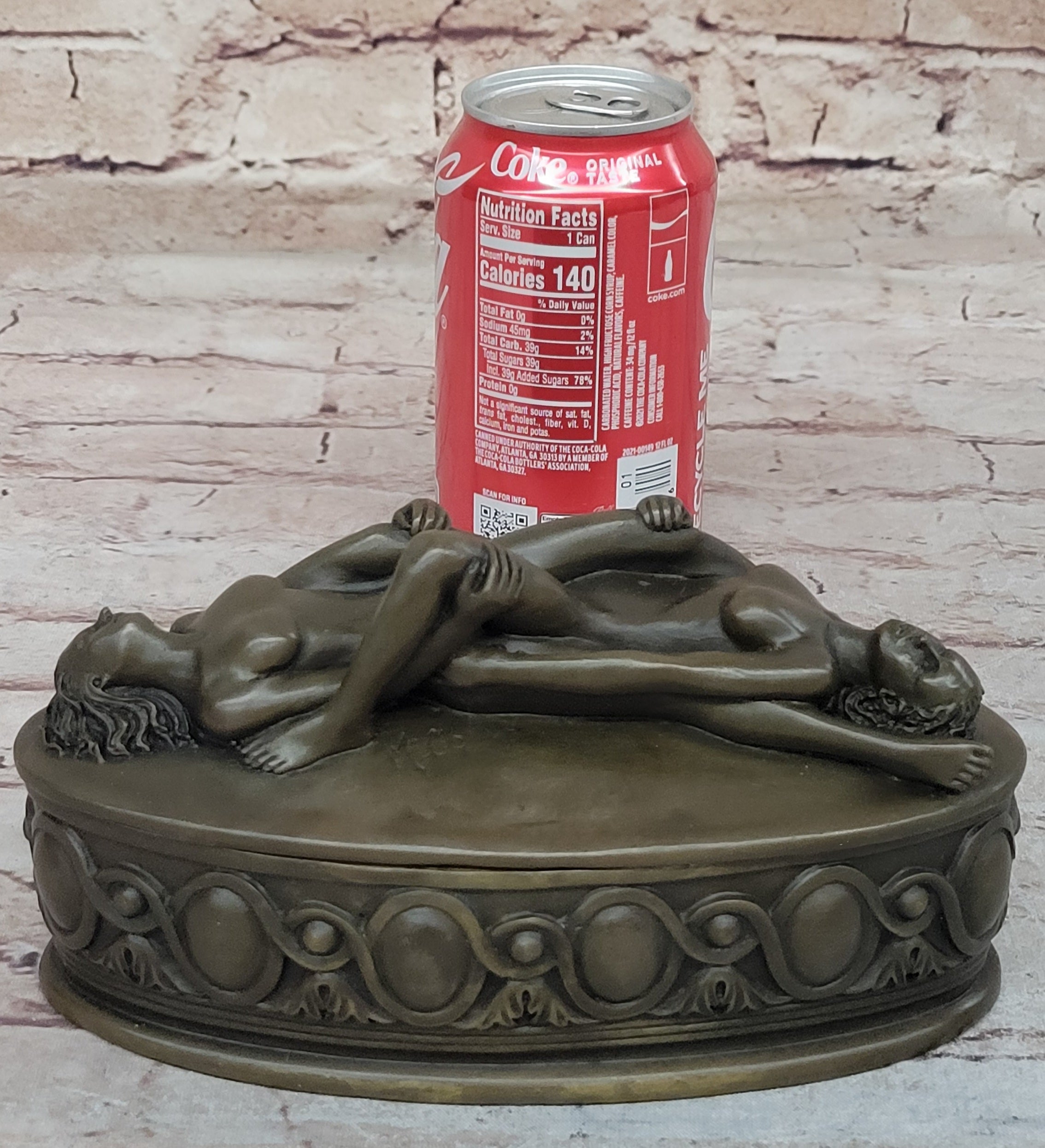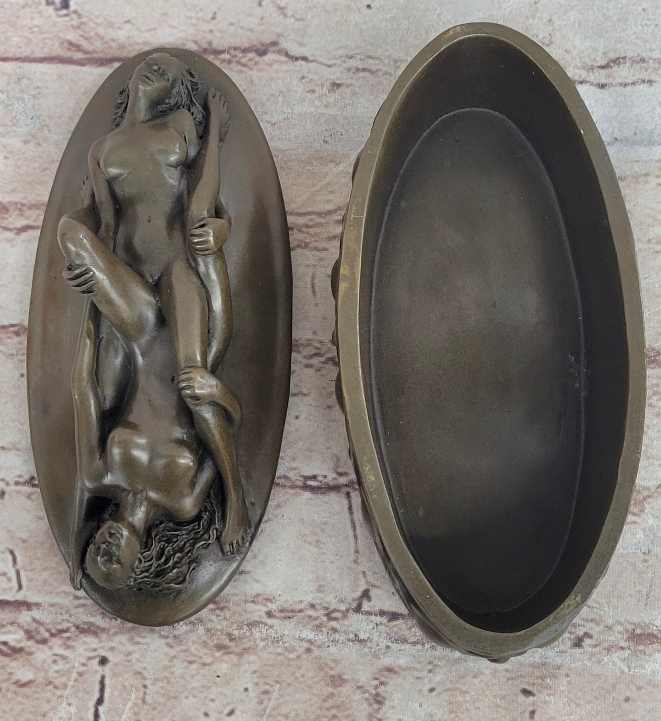 Erotic Art Lesbian Lovers Scissoring Bronze Metal Jewelery Box Sculpture Signed Original