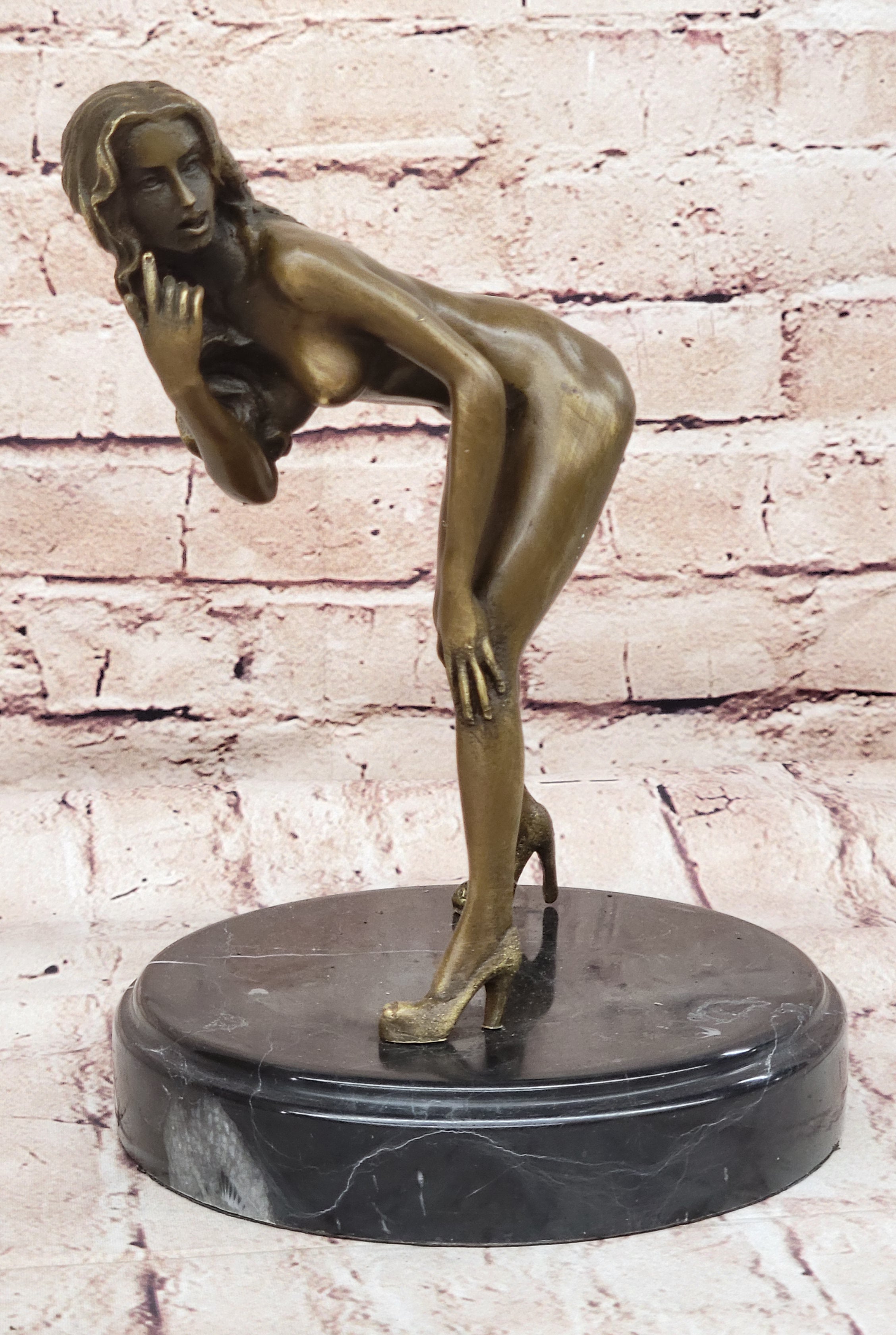 Erotic Bronze Figurine Sculpture Nude Female Looking Back by Mavchi