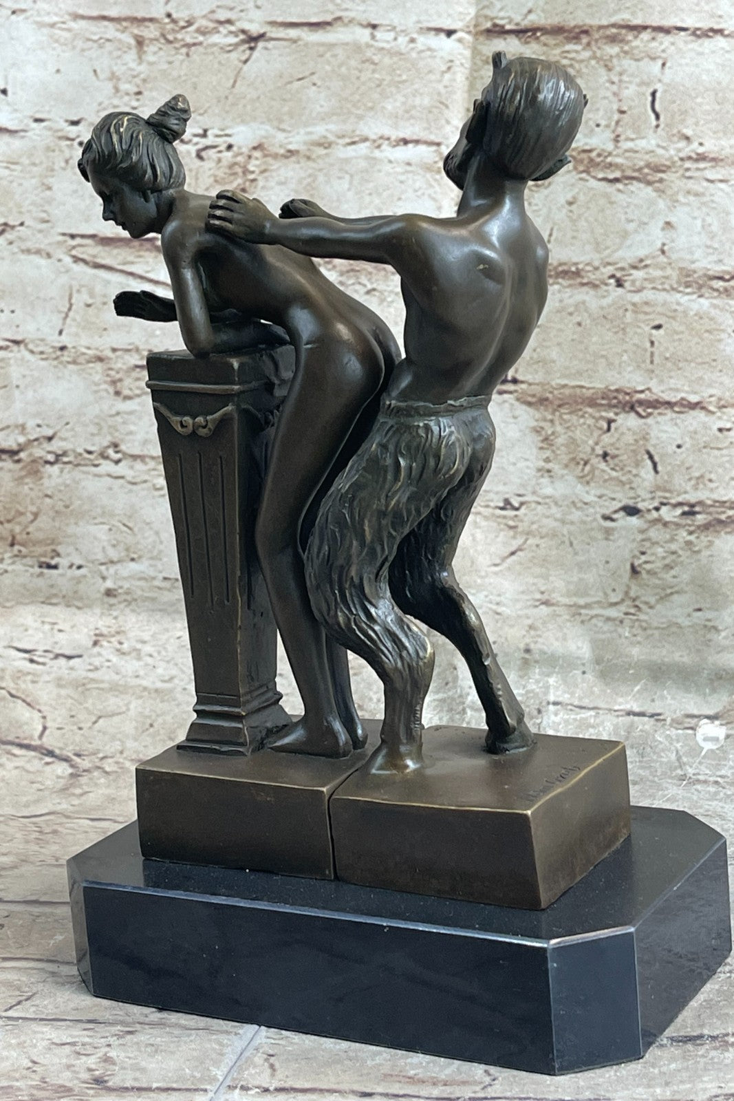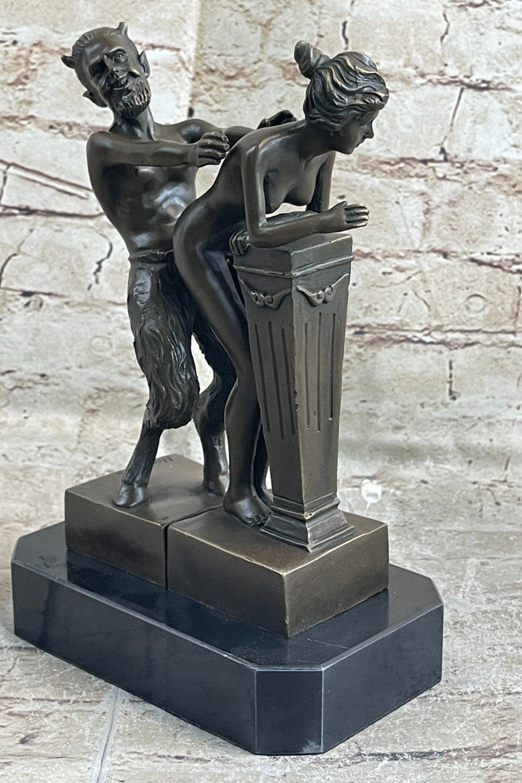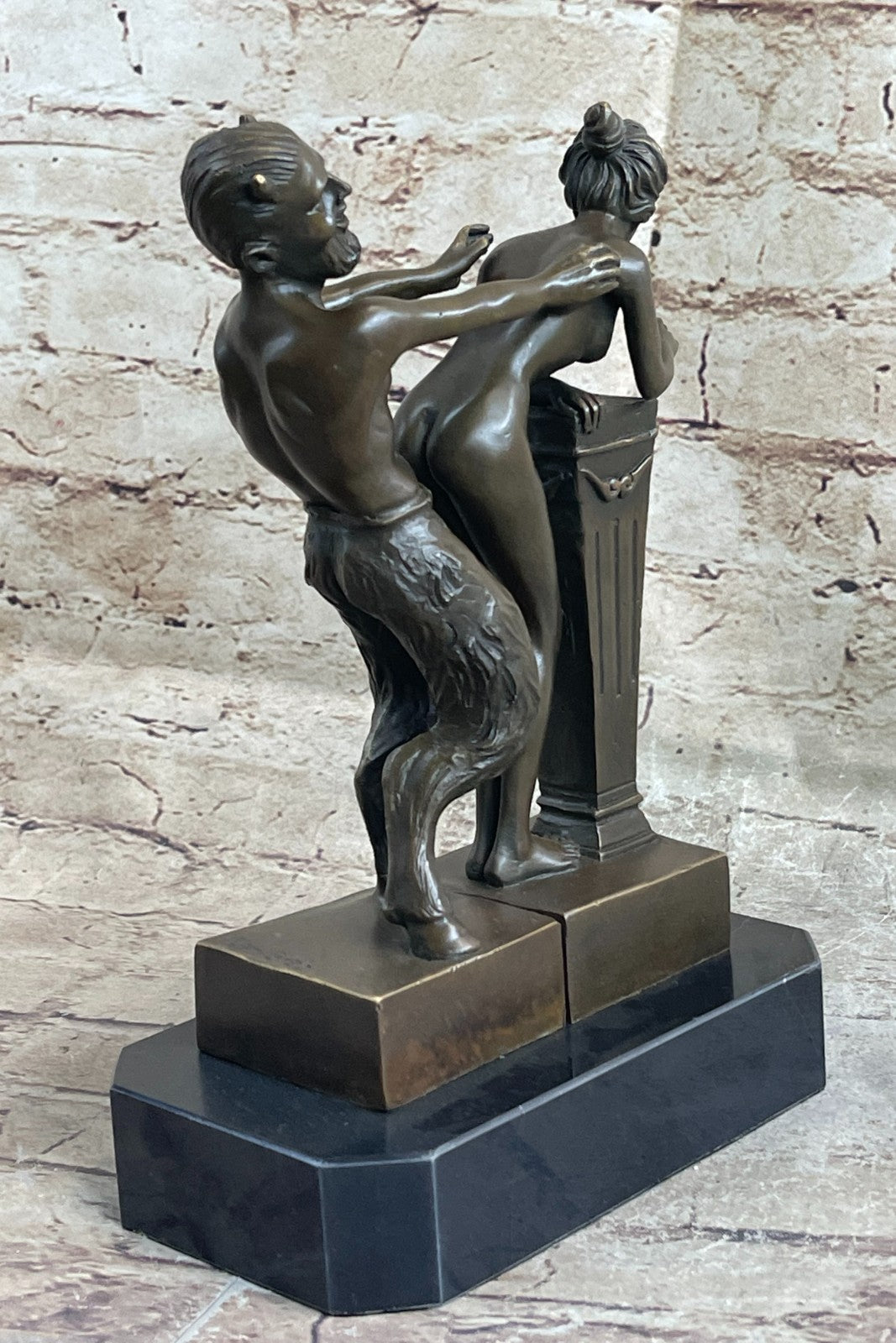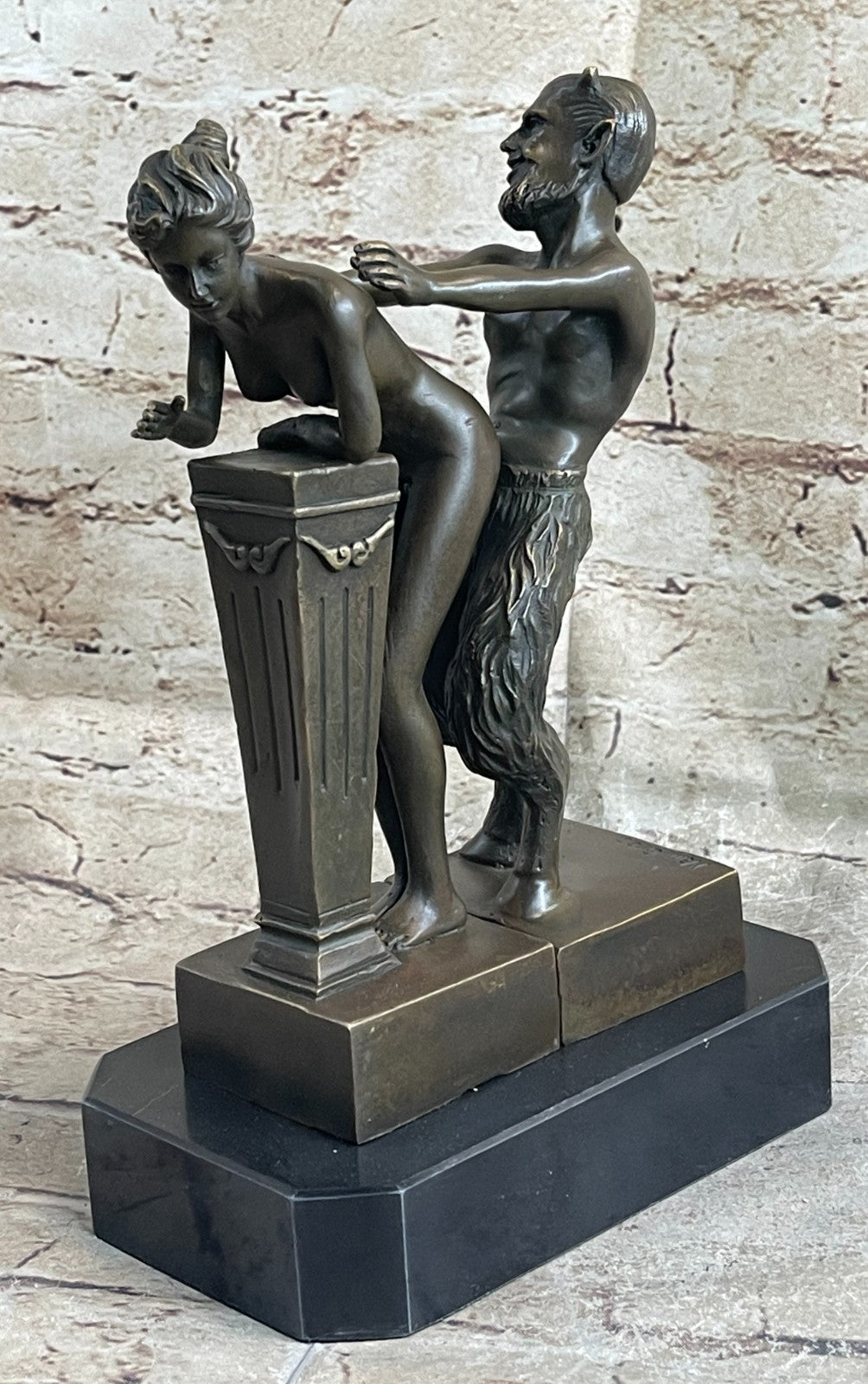 Erotic Bronze Sculpture of Satyr & Nymph Girl Having Sex Metal Figures Marble Base