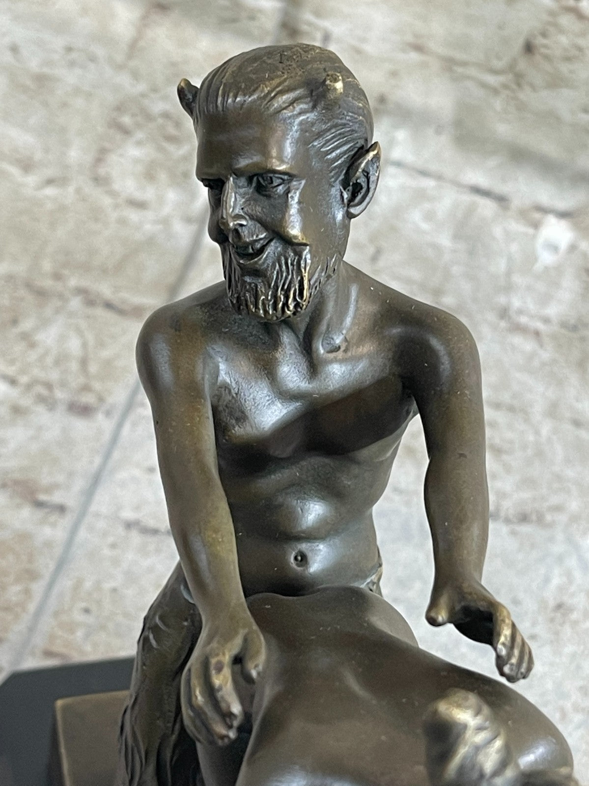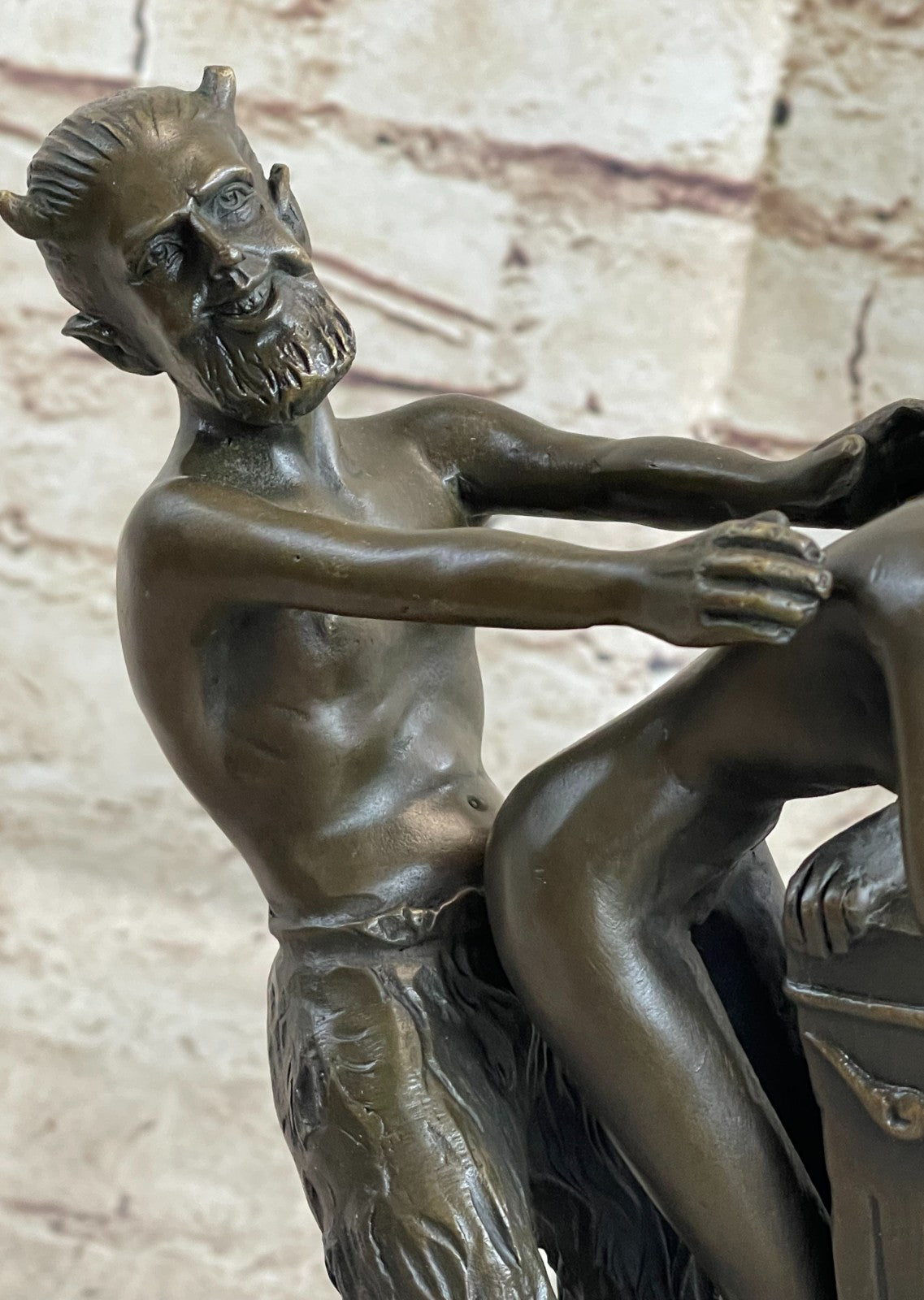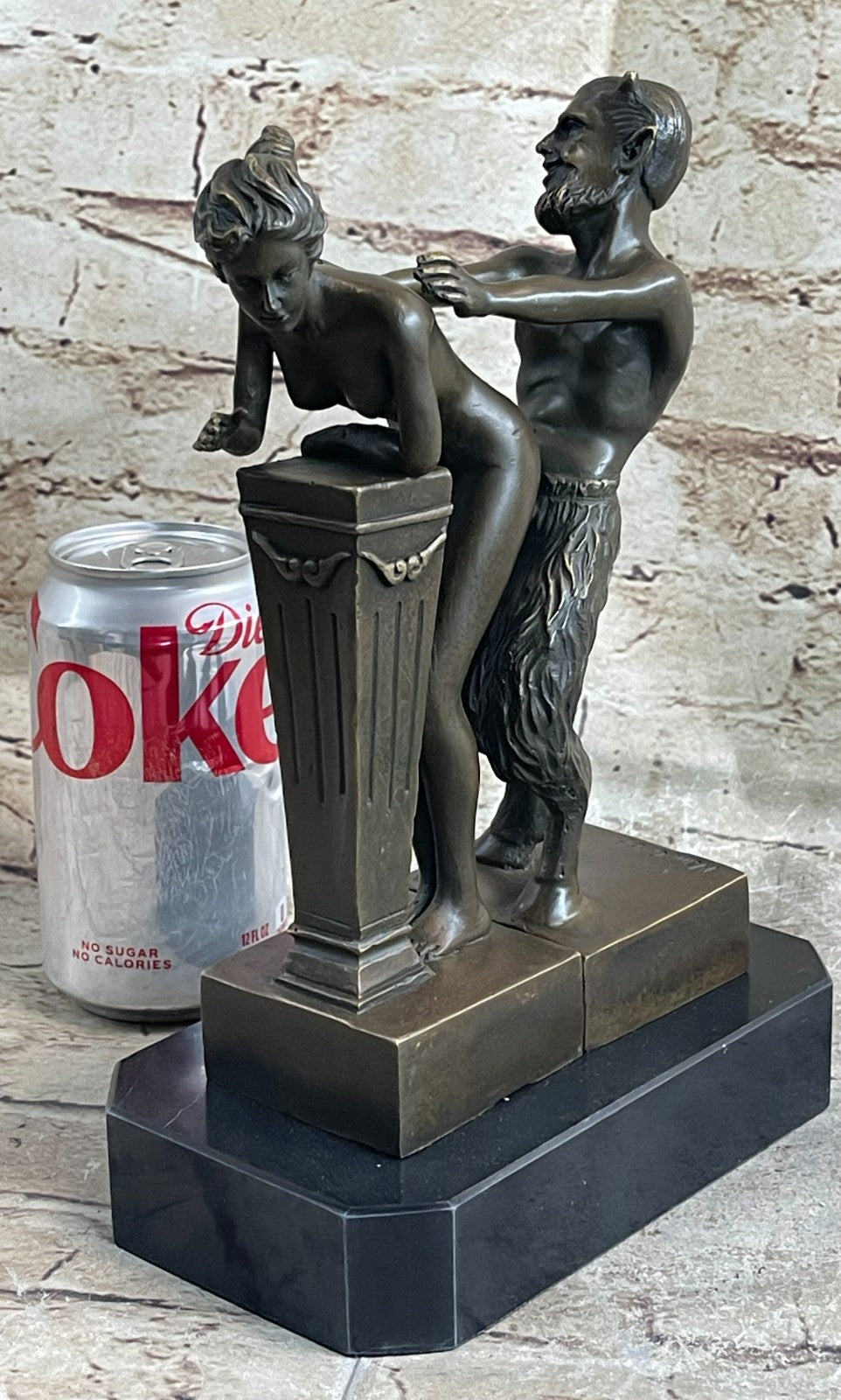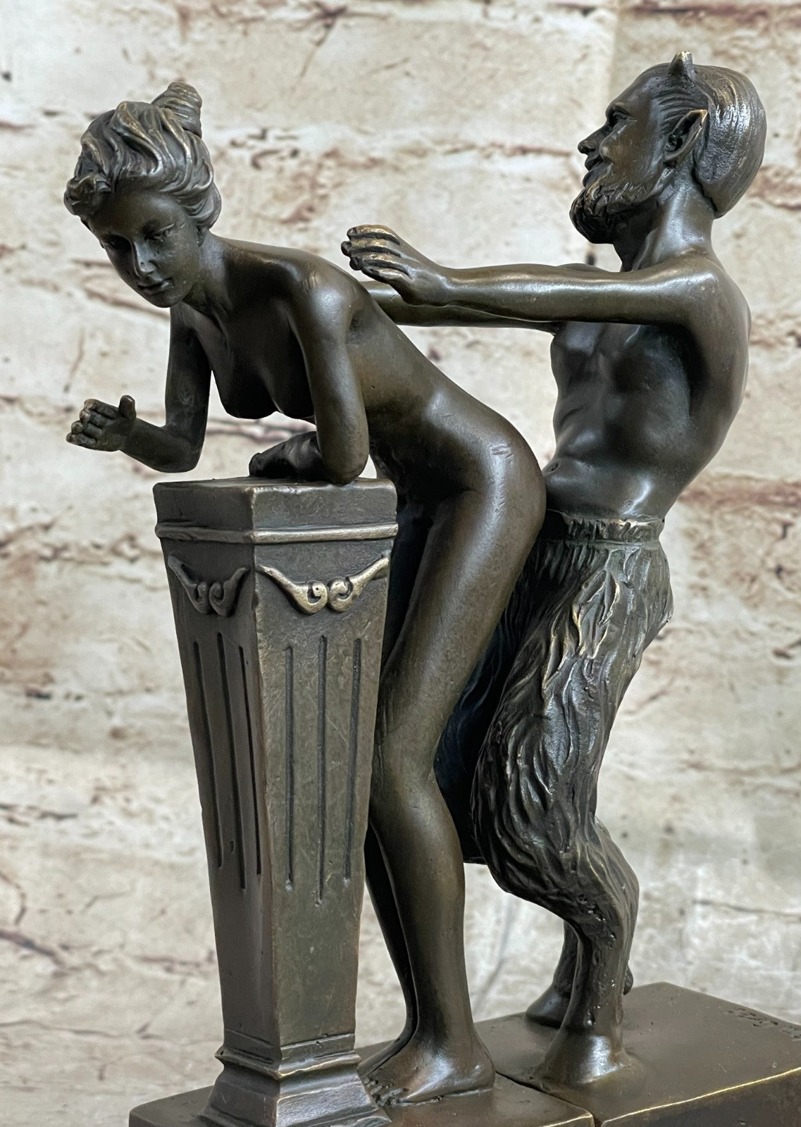 Erotic Bronze Sculpture of Satyr & Nymph Girl Having Sex Metal Figures Marble Base