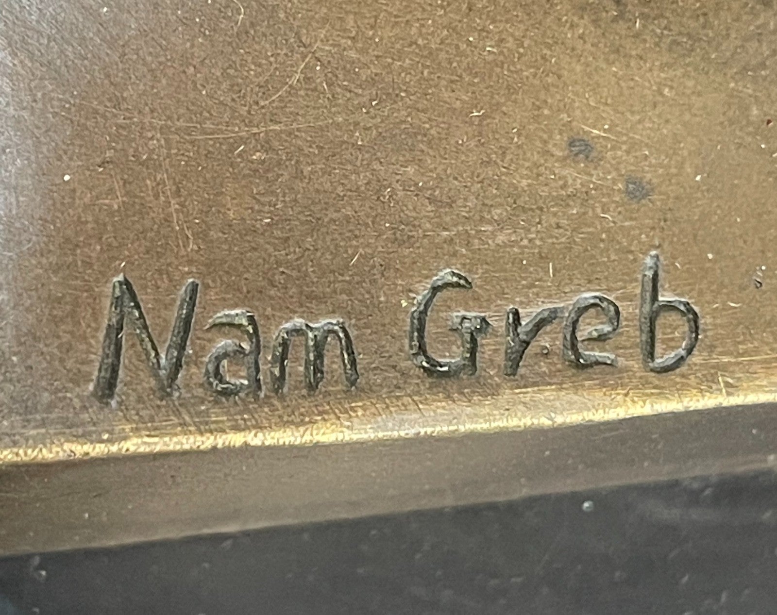 Crafted with the esteemed lost wax method, this sculpture stands firmly upon a sleek black marble base, harmoniously complementing its intricate design. It bears the signature "Nam Greb" discreetly inscribed on the inside of the bottom, attesting to its authenticity and uniqueness.
