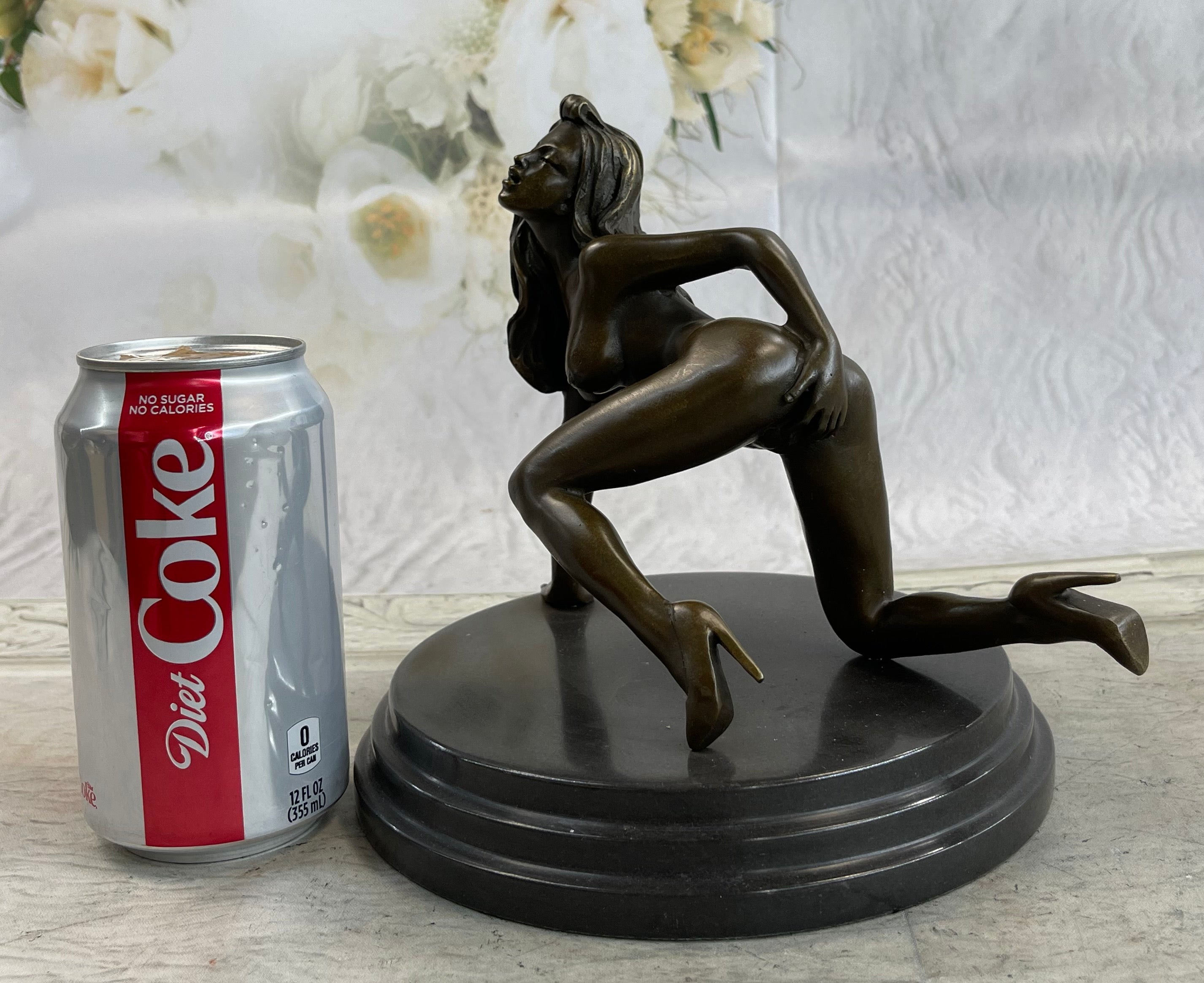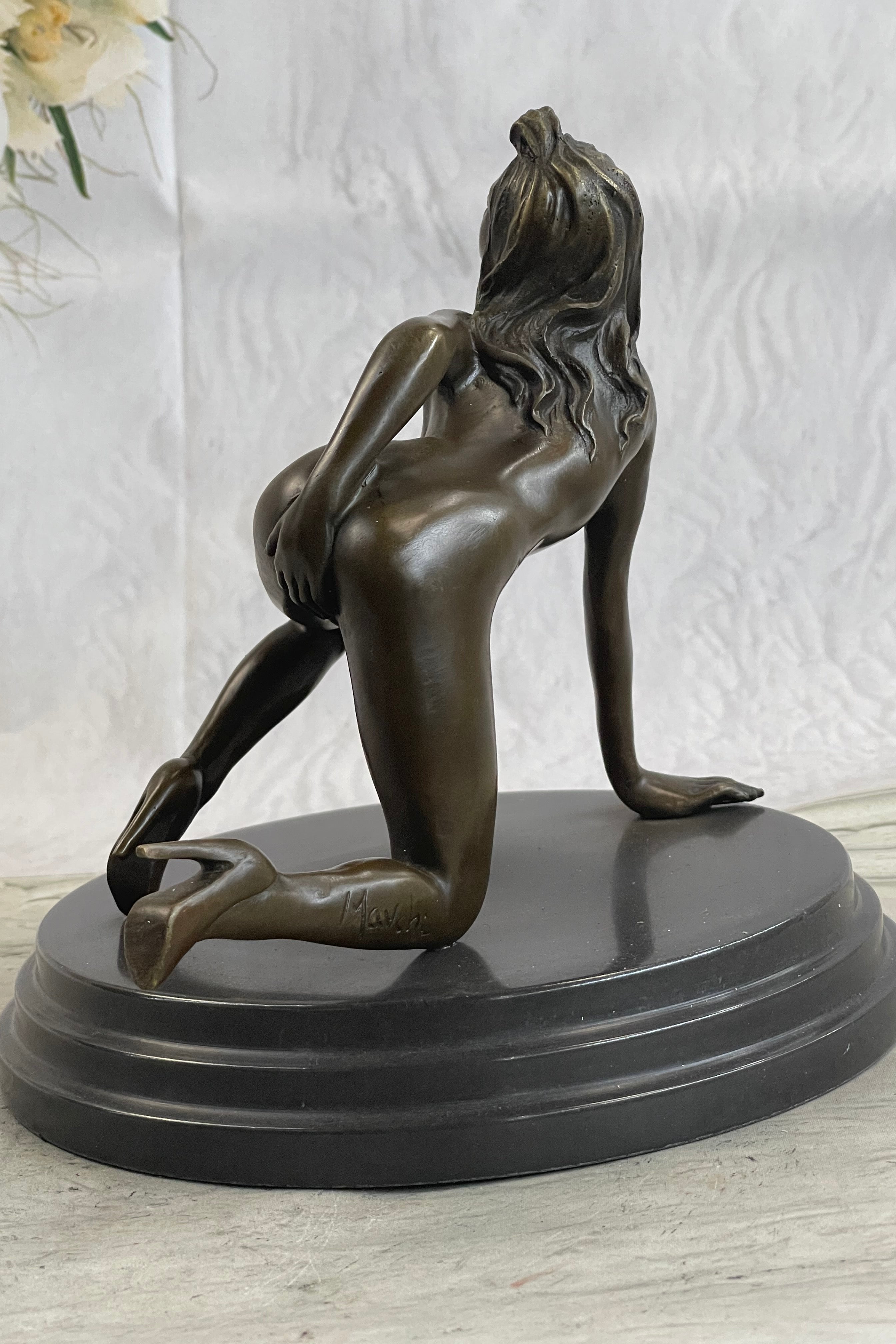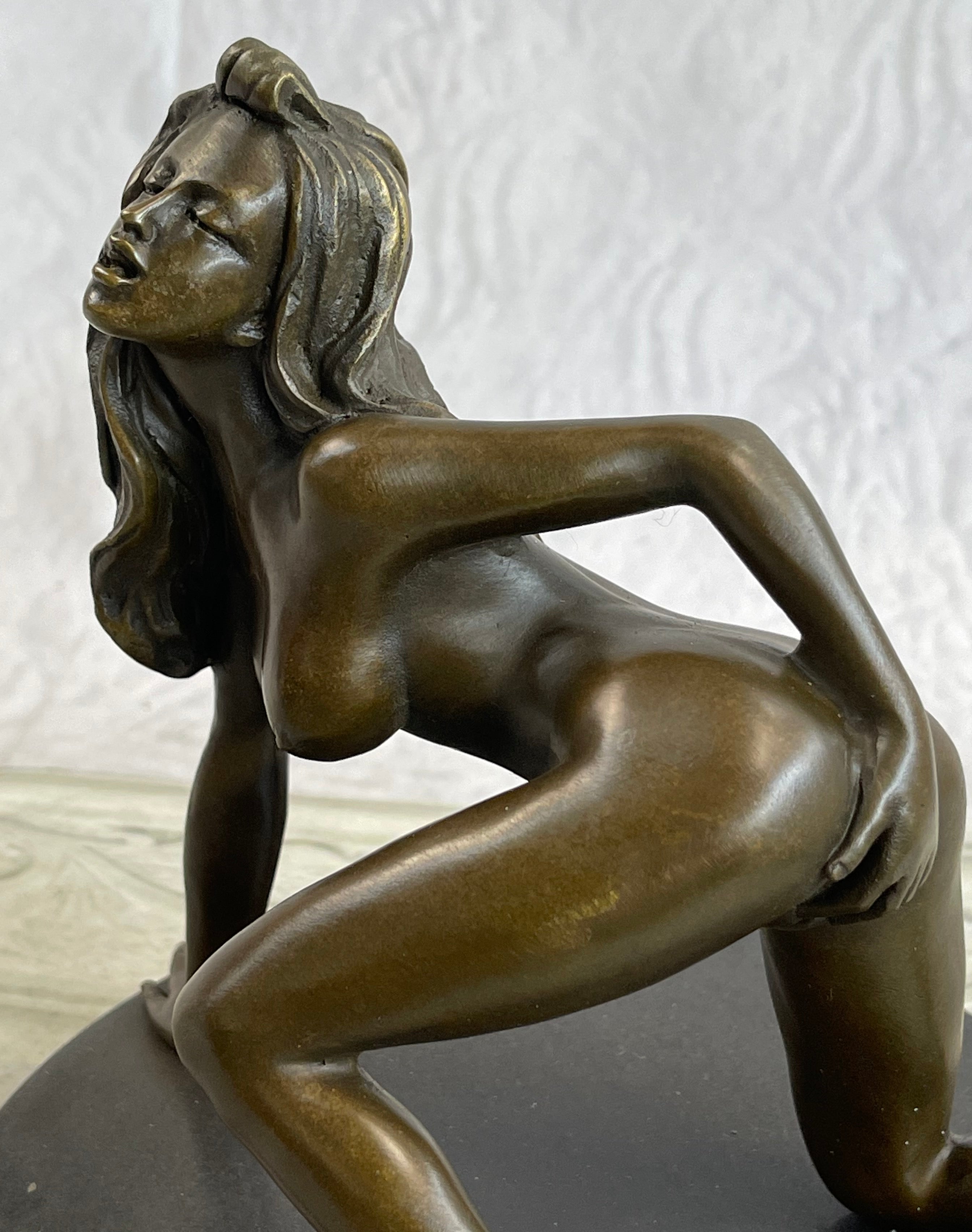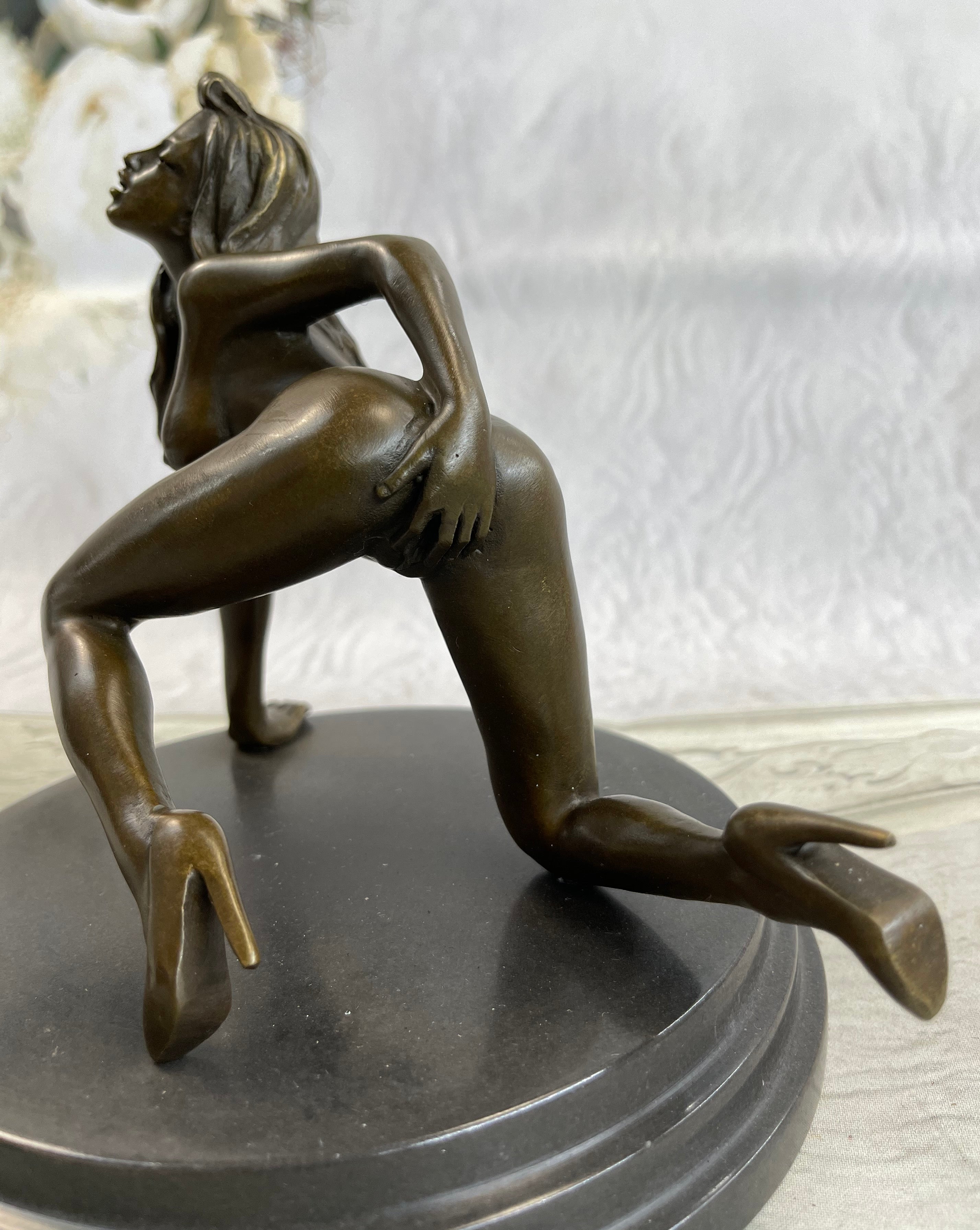 Erotic Exhibitionist Nude Girl Female Figurine Sculpture on Marbl Base by Mavchi
