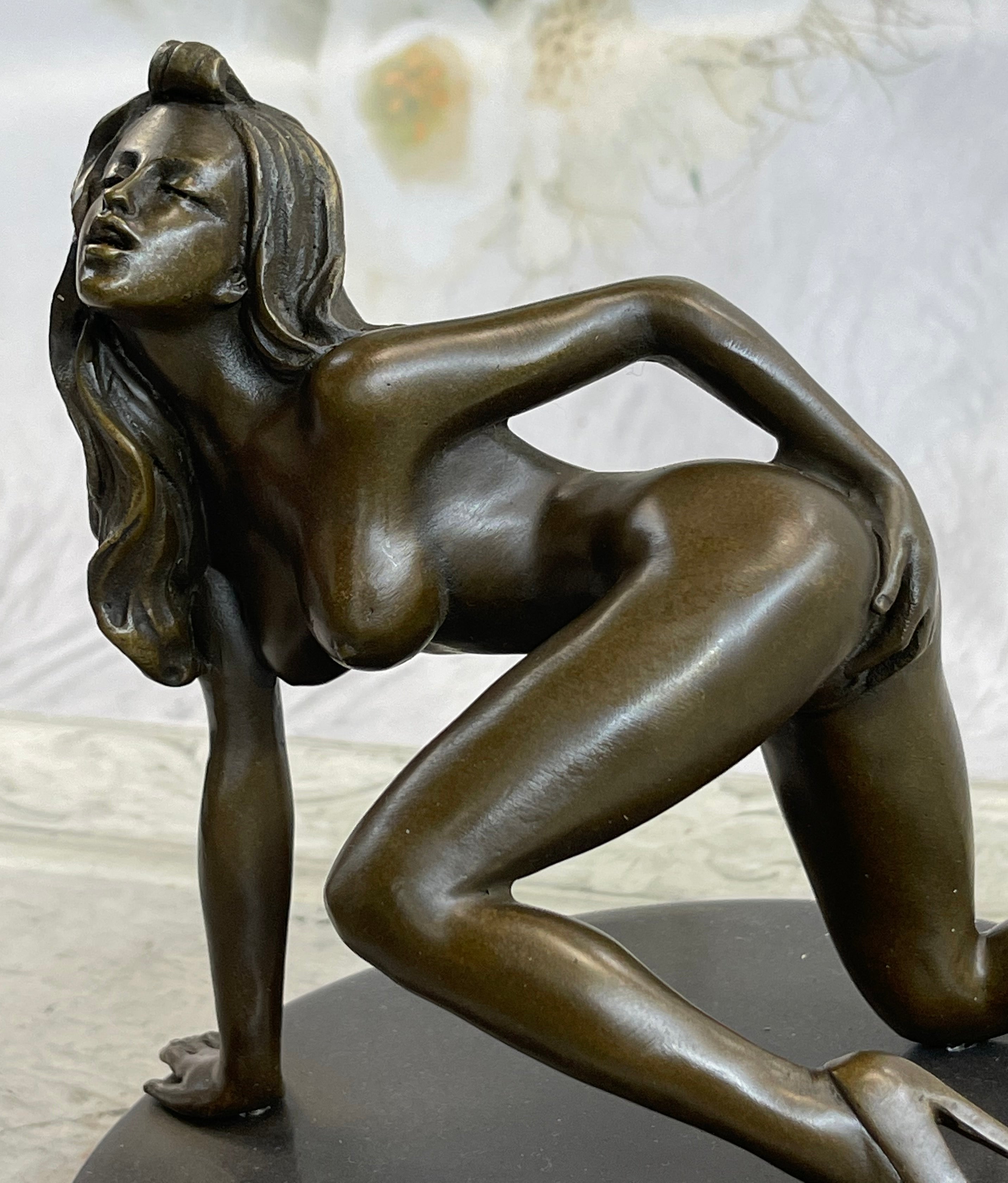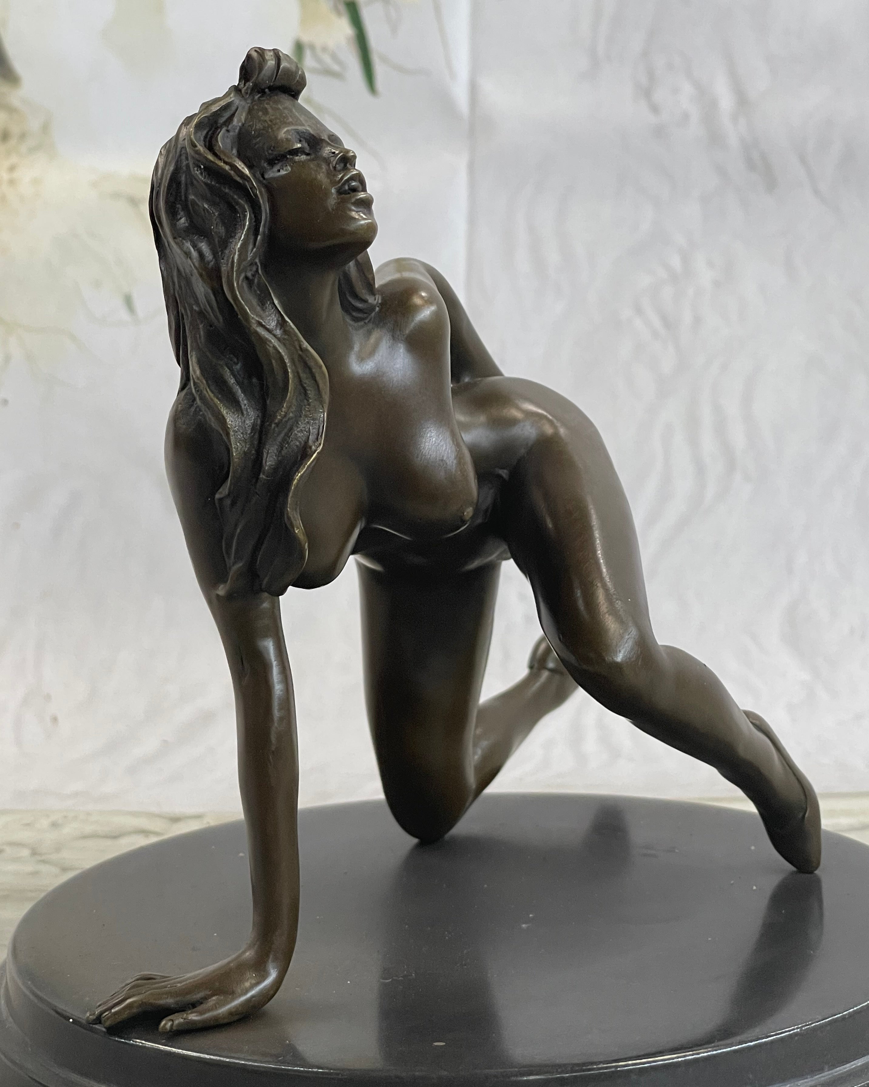 Emanating an aura of alluring sensuality and passion, this captivating bronze sculpture portrays a nude seductress gracefully entwined in the throes of intense desire. With exquisite detailing and craftsmanship, the sculpture captures the essence of feminine sexuality, showcasing the curves and contours of the female form in a captivating display of intimacy and allure. Crafted using the ancient lost-wax casting method, the sculpture embodies the artist's dedication to preserving the intricacies of human expression and emotion, resulting in a stunning and evocative portrayal of womanhood and desire.