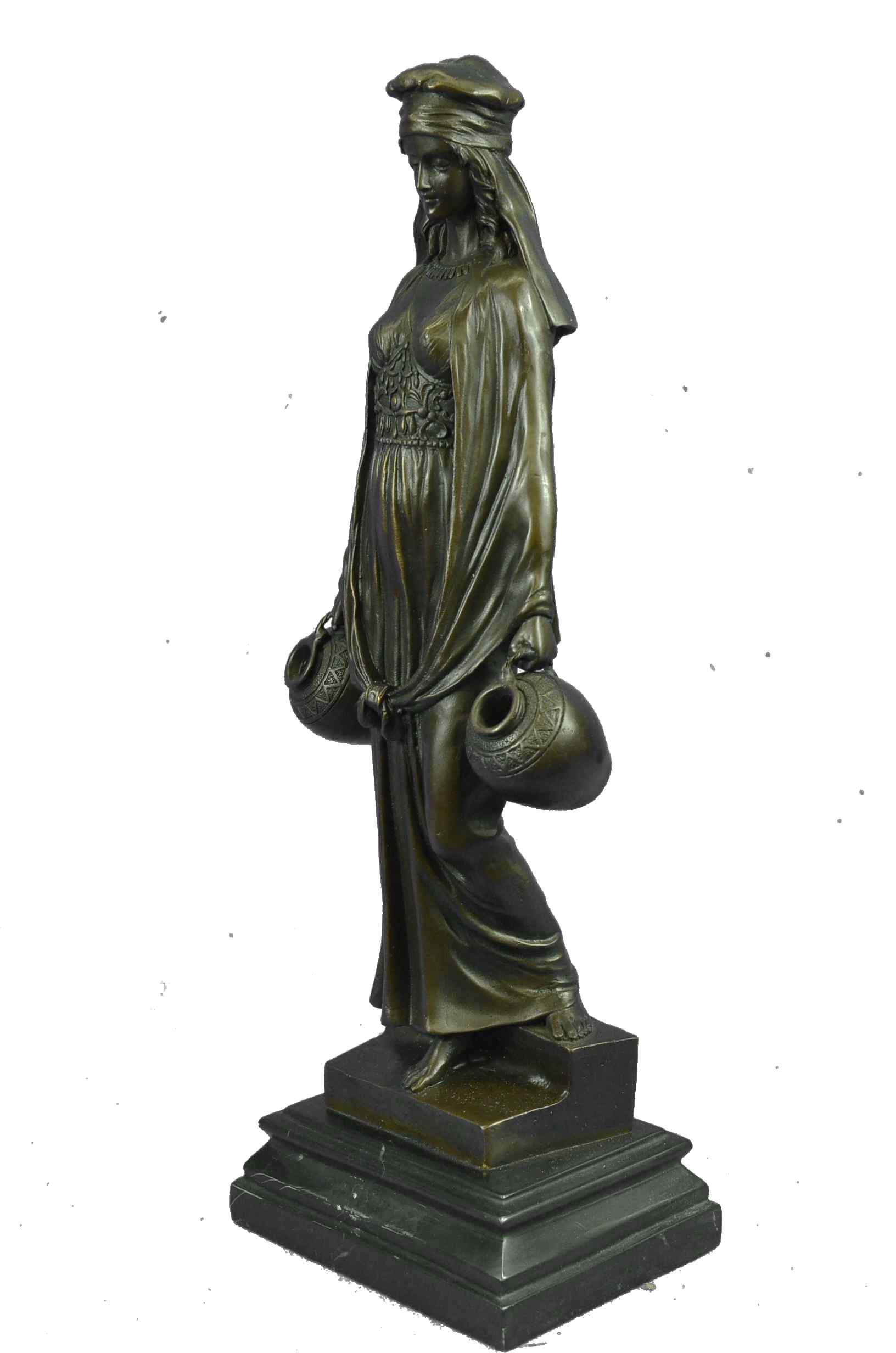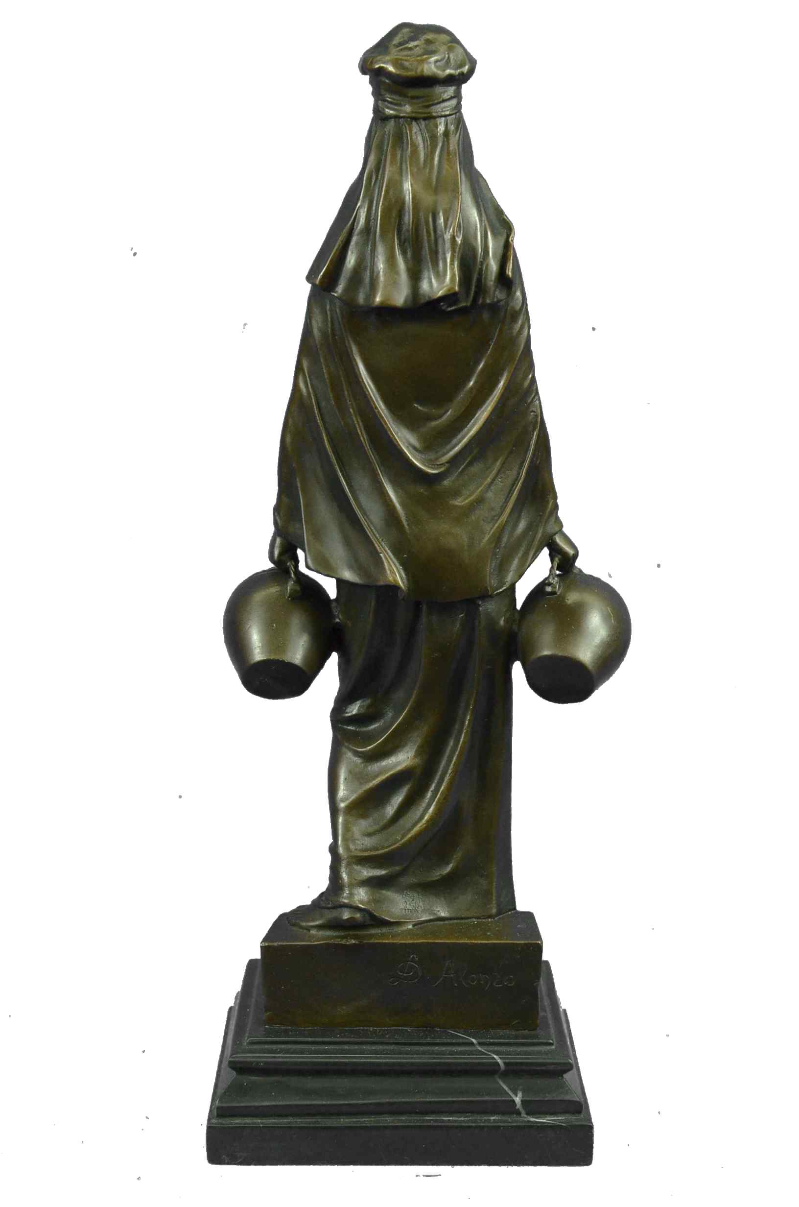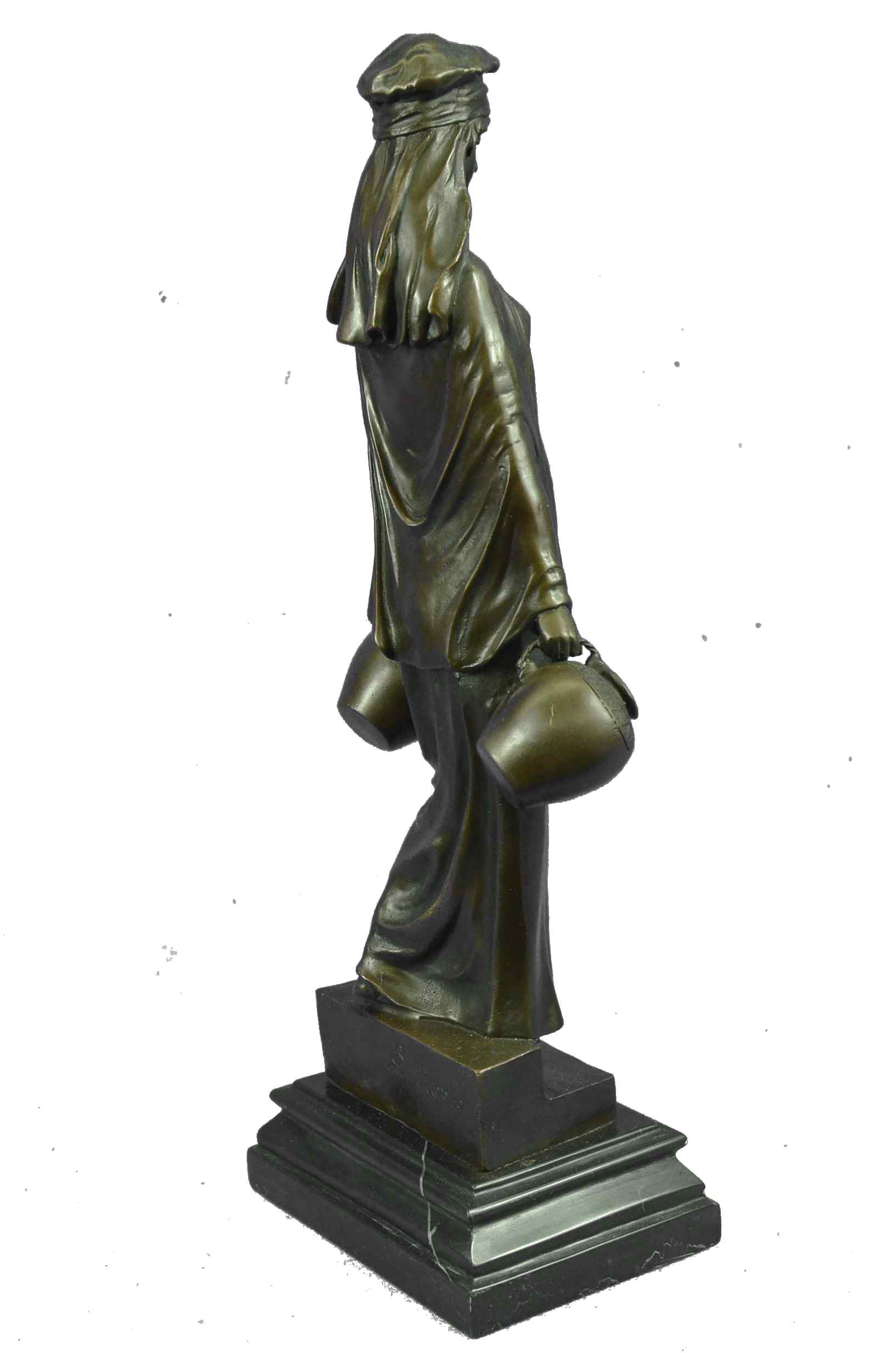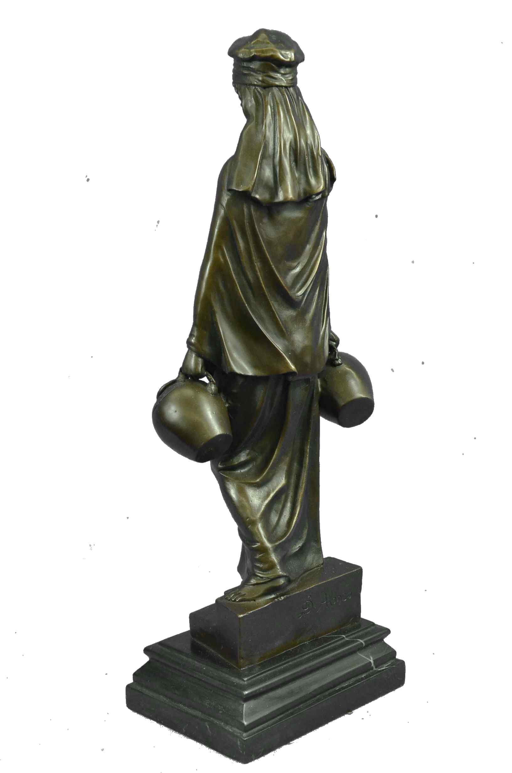 Lady Carrying Water Jugs Bronze Sculpture Hot Cast Marble Base Figurine
