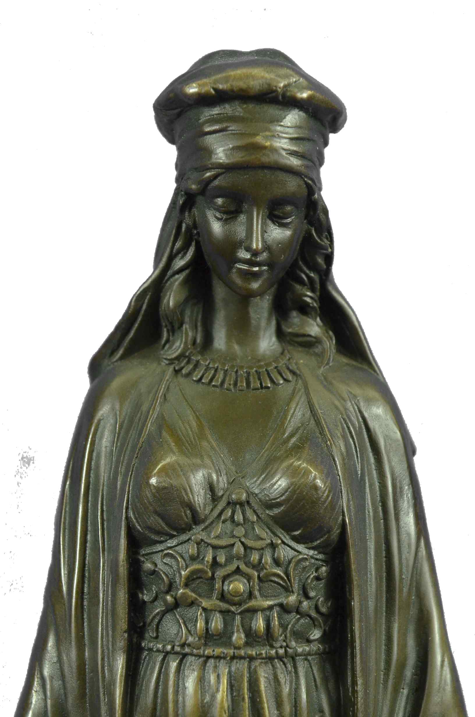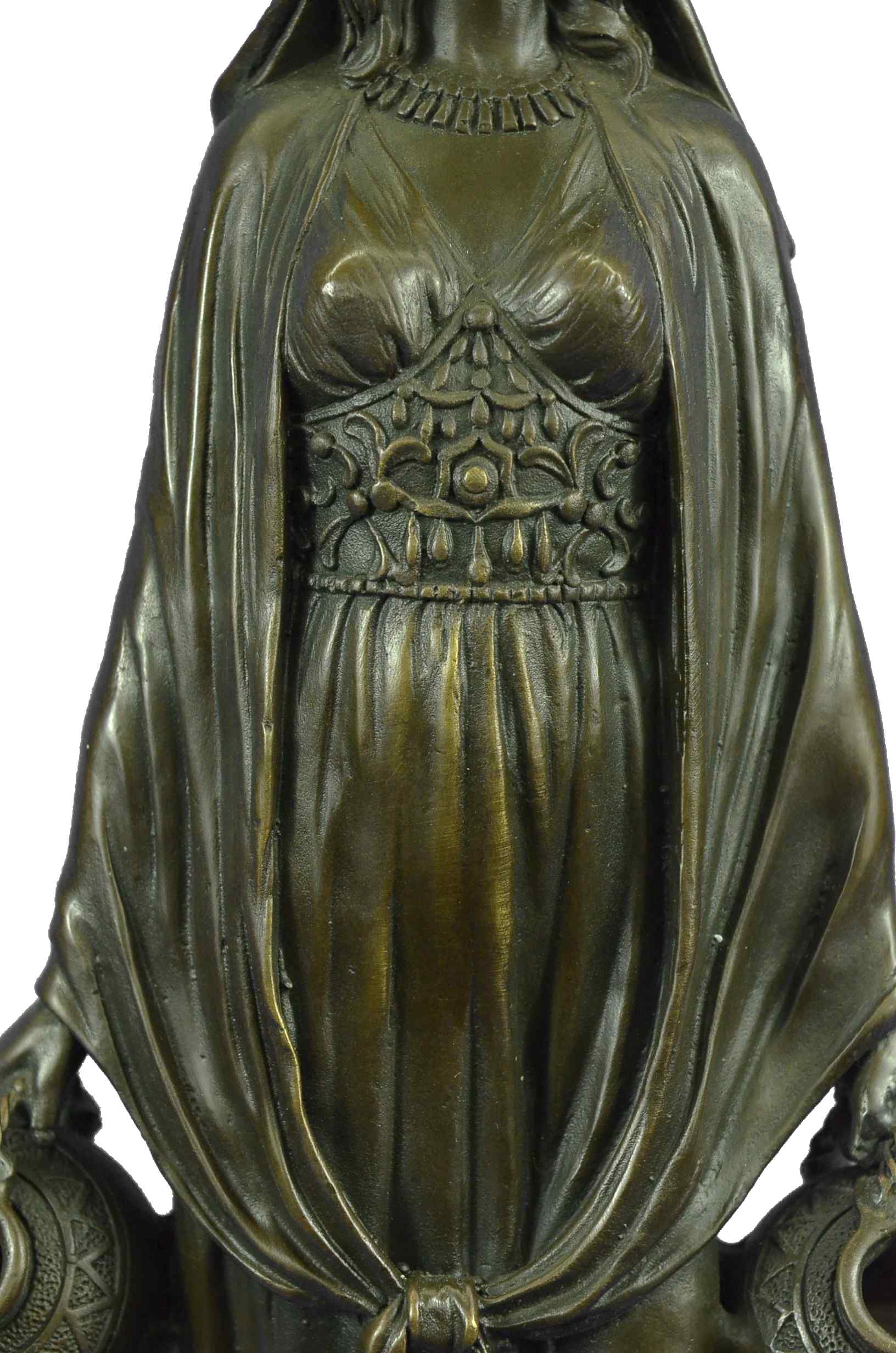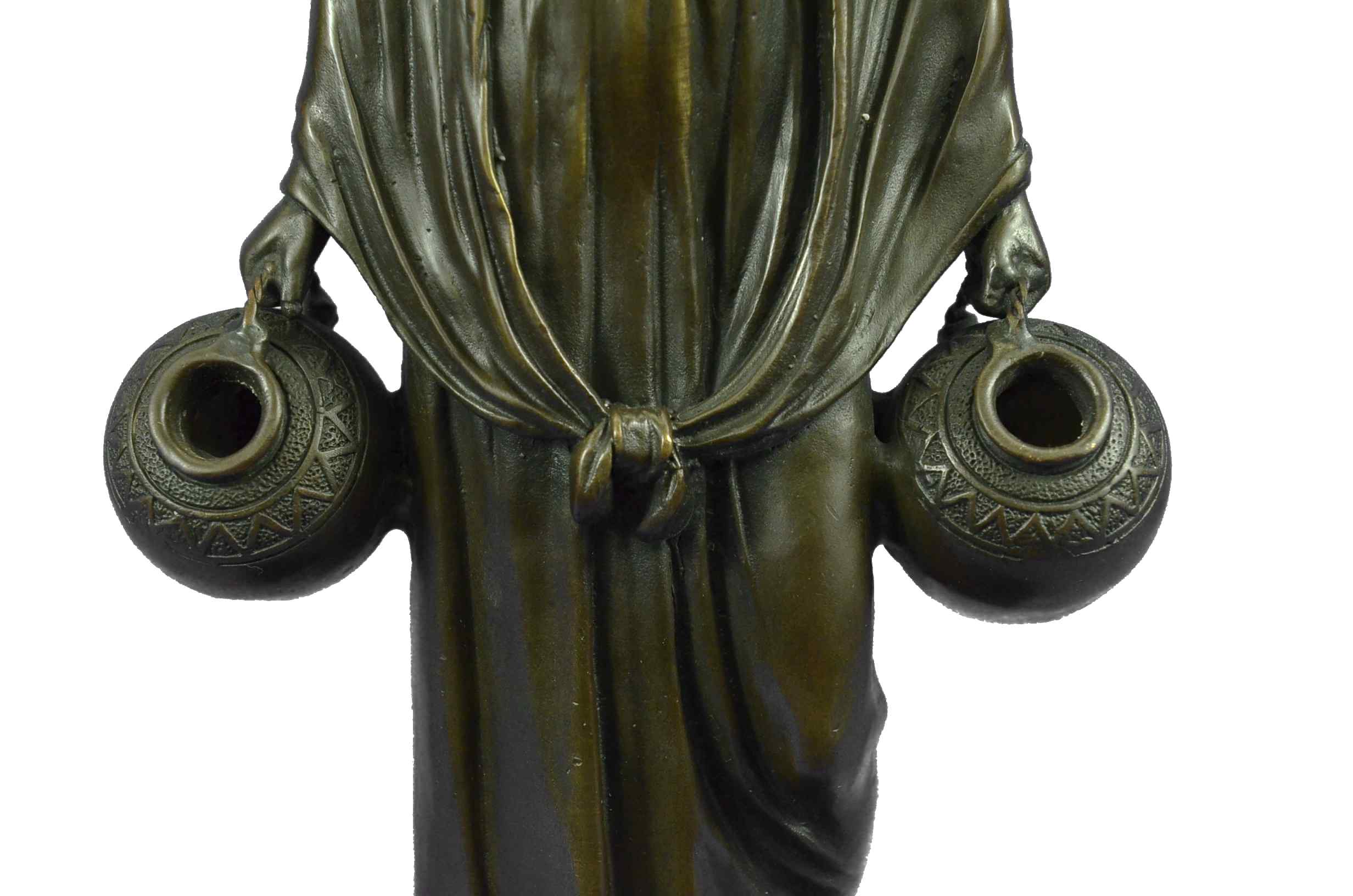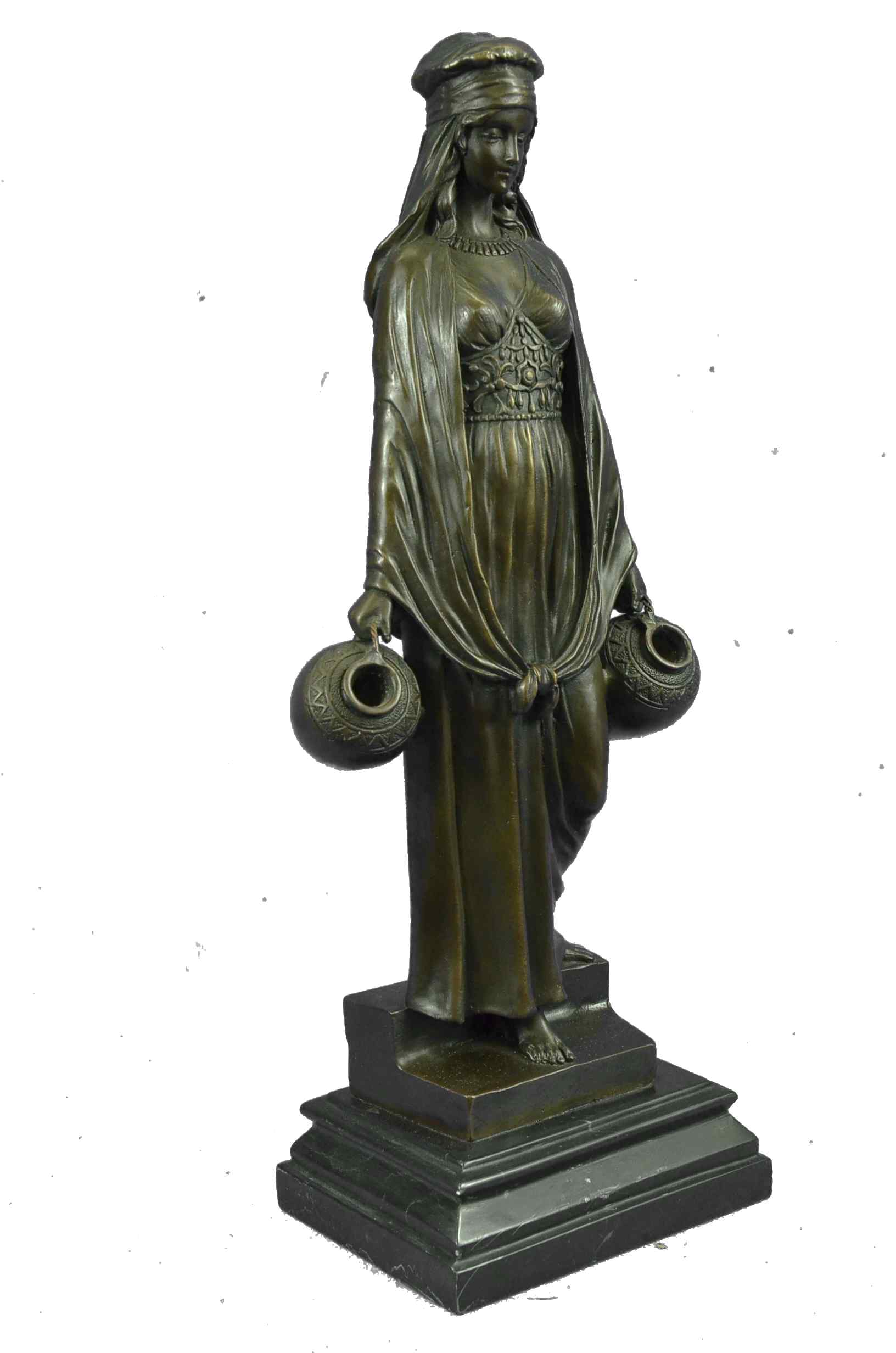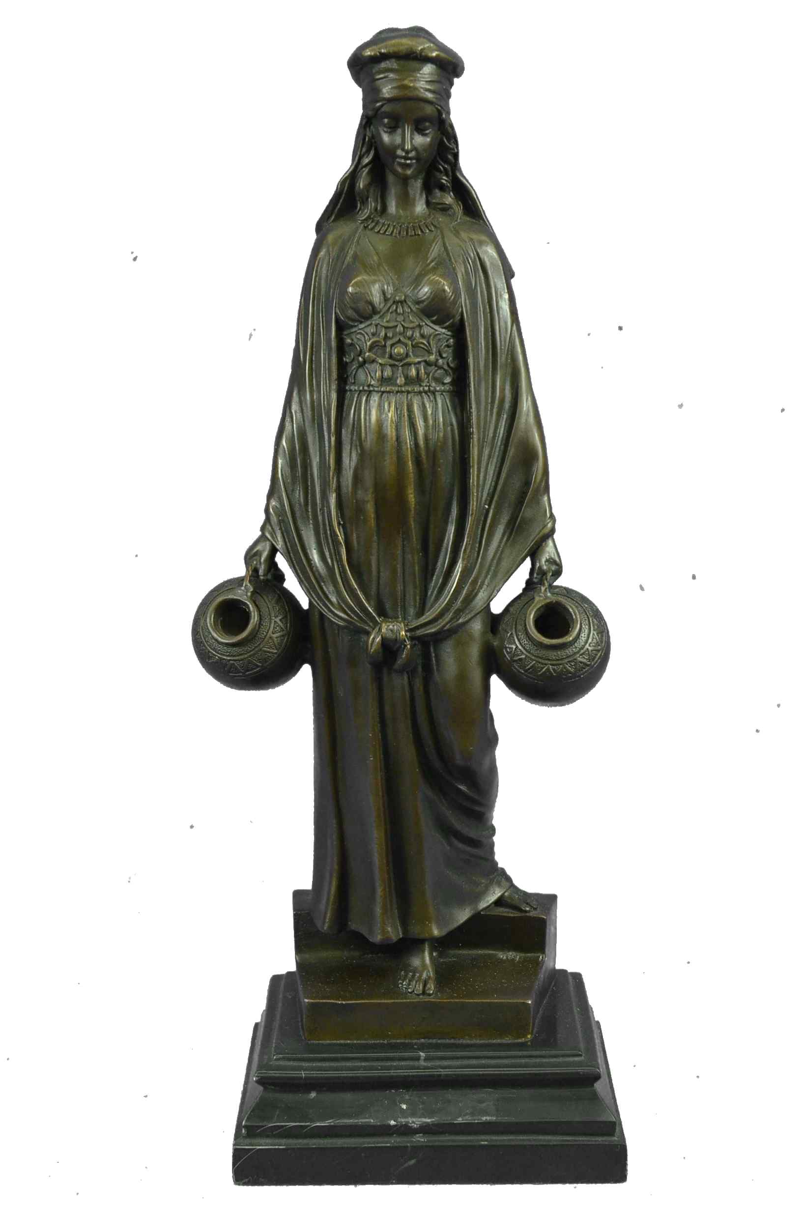 Lady Carrying Water Jugs Bronze Sculpture Hot Cast Marble Base Figurine
