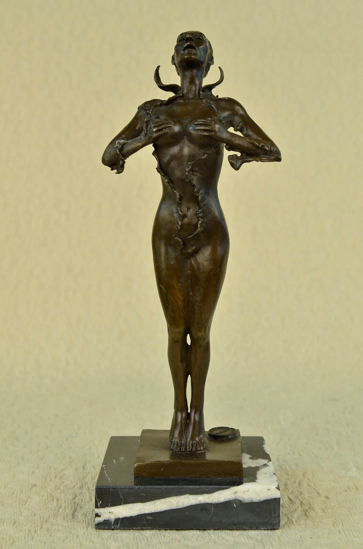 Erotic Sensual Nude Female Woman Signed Bronze Marble Statue Sculpture Sexy Art