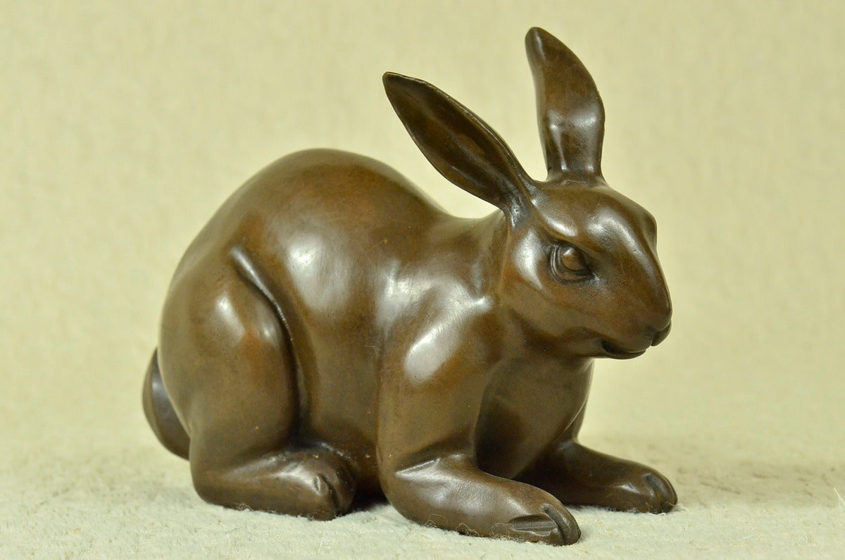 European Sweet Rabbit Bunny Bronze Sculpture Garden Yard Deco Great Gift Figure