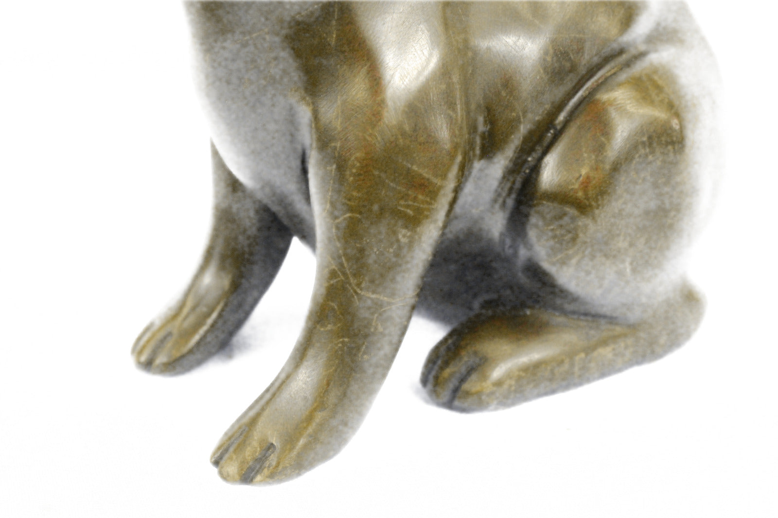 This cute bunny looks up with the sweetest look and taking a brake from a long day. This little rabbit is the perfect touch of decor for a sweet and loving home. His ears are long and he stands on his legs while looking up with full attention. His facial features are great giving him character and capturing a lovely and innocent look. This is a perfect gift to give around spring time and Easter. This sculpture was cast using the "Lost Wax Method" and has a two tone brown patina and is signed by artist Milo. which are Custom Cast with European Bronze Finery.Original or Reproduction: Original