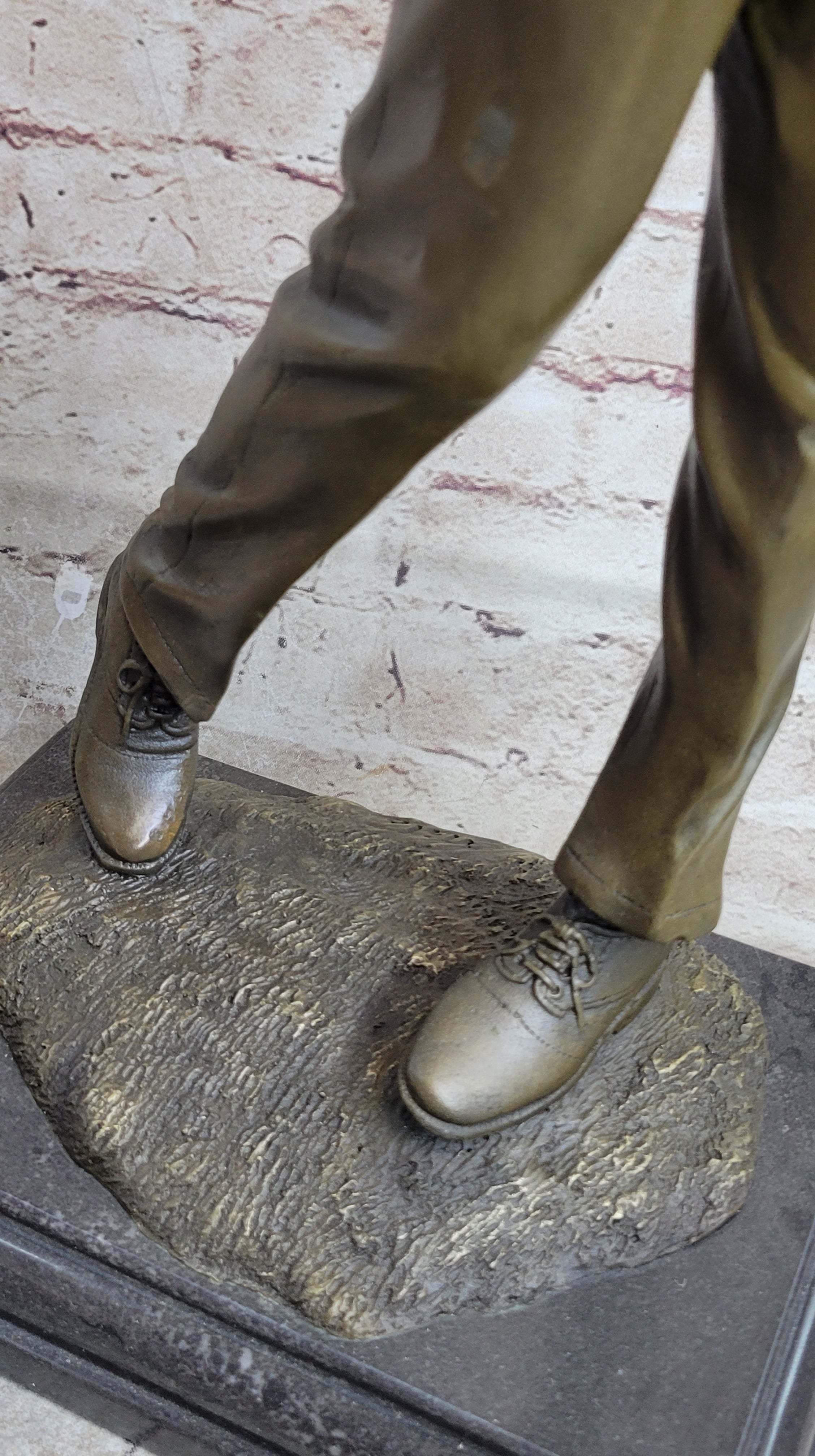 Crafted with meticulous attention to detail, this sculpture captures the essence of the golfing experience, from the subtle ripples of the golfer's clothing to the texture of the manicured grass beneath her feet. Mounted on a sturdy marble base, it stands as a testament to the skill and dedication of the artist, signed Milo, who employed the timeless "Lost Wax Method" to bring this moment to life in enduring bronze.Bronze Dimensions with Marble Base: Height 23" X Width 12"