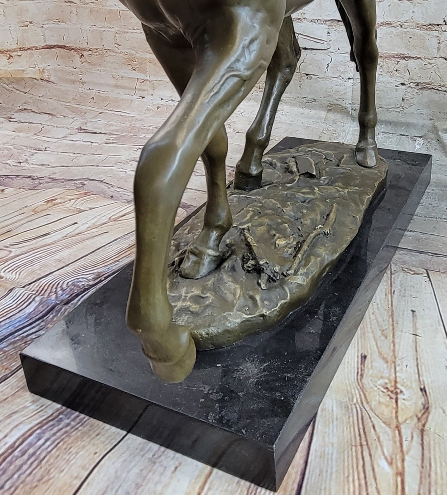 Set upon a base adorned with lifelike grassy patches, the sculpture immerses the viewer in the serene beauty of a natural setting. Crafted with meticulous detail using the revered "Lost Wax Method," this bronze masterpiece features a nuanced two-tone brown patina that captures the subtle textures of both mare and foal. Handmade and signed by the esteemed artist P.J Mene, this sculpture is an ideal gift for those who appreciate the elegance and vitality of these majestic creatures.Bronze Dimensions with Marble Base: Height 22" X Width 23"