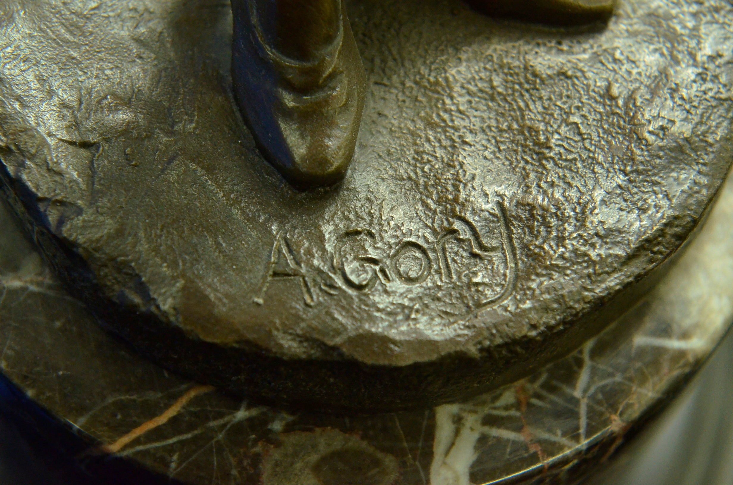 Condition: This sculpture is in perfect condition. Bronze Dimensions with Marble Base:Height 20" x Width 6" Marble Dimensions: Diameter 6". Height without base: 19" Weight : 17 LBS Inventory : 23X2143502