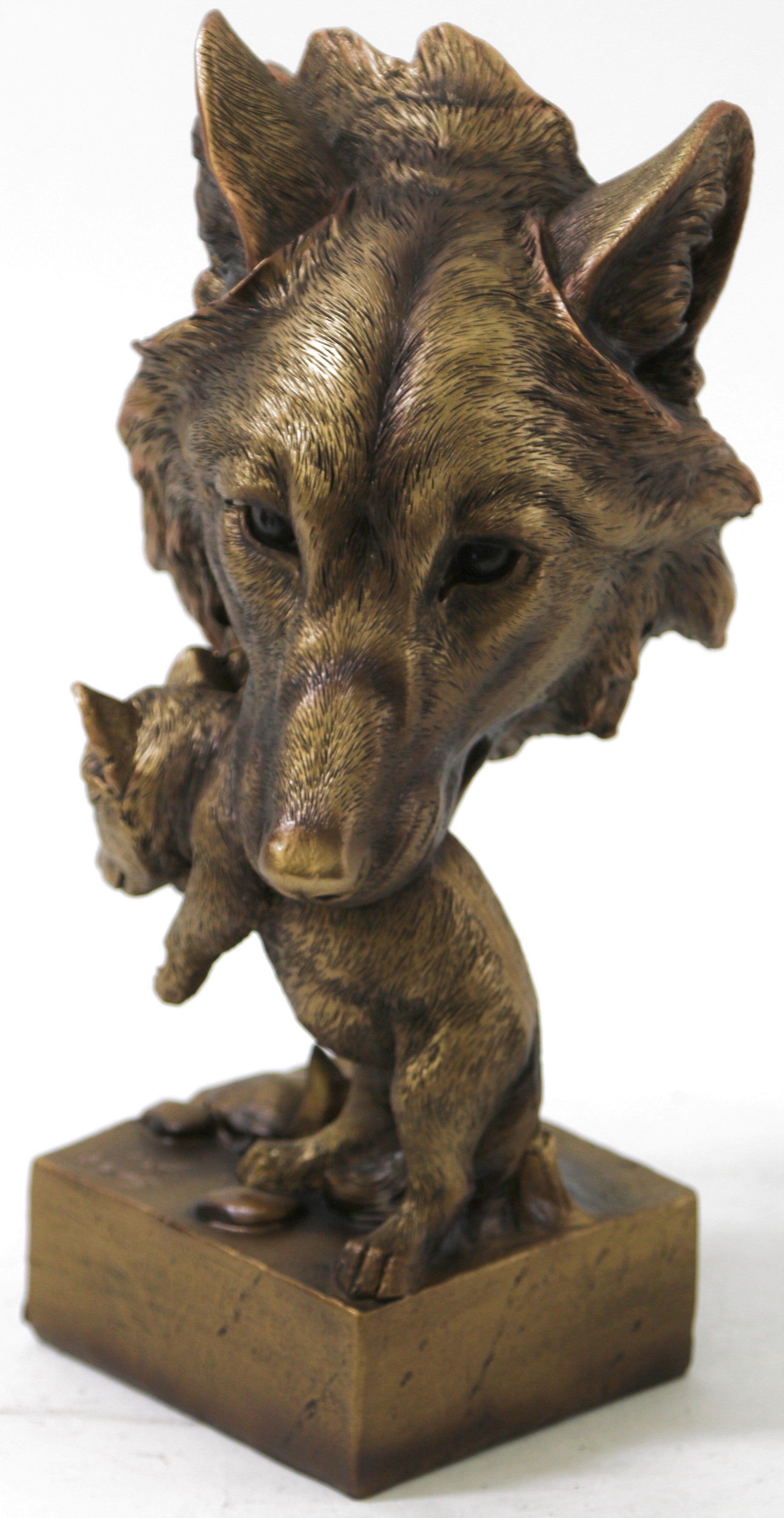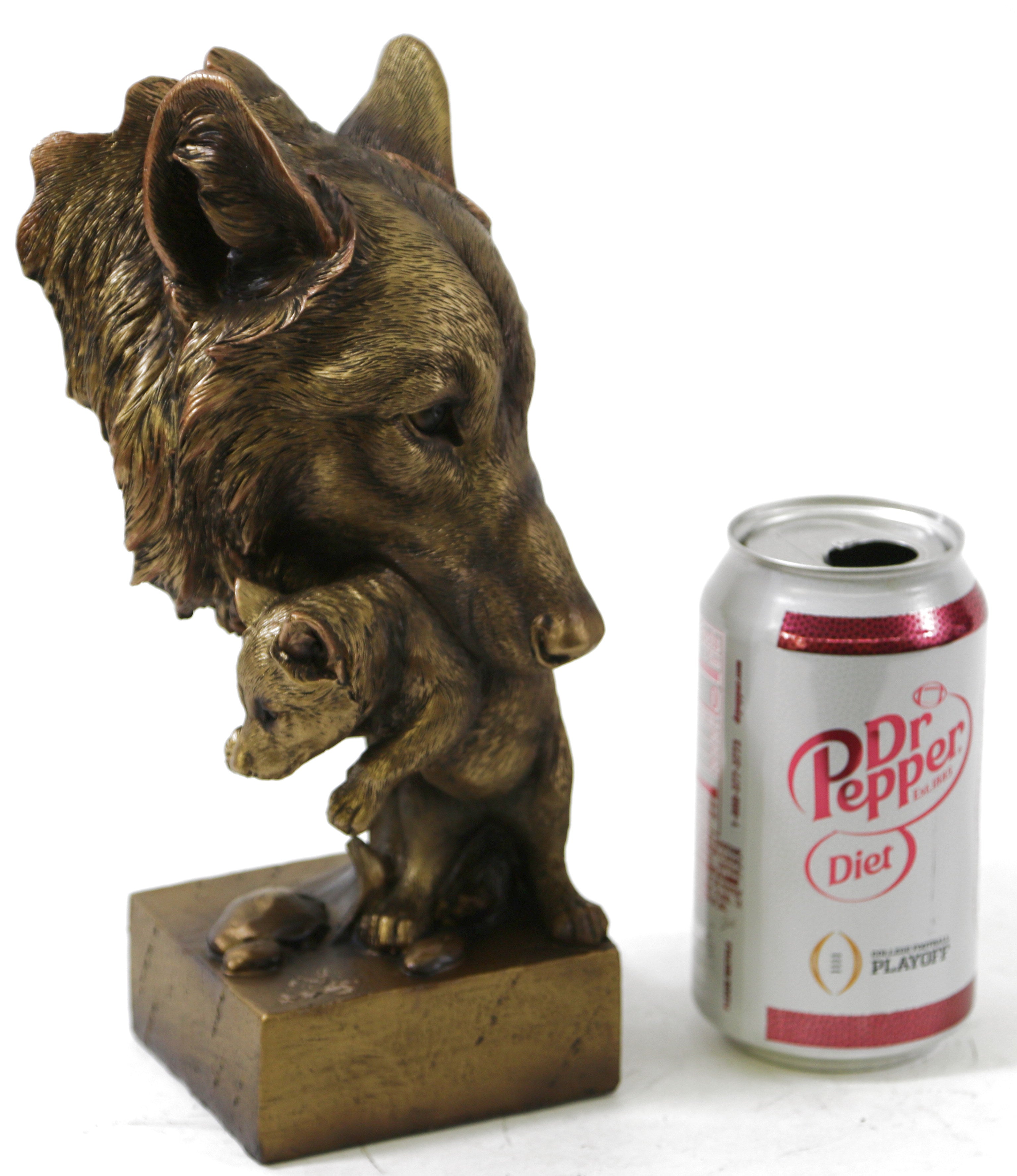 Faux Bronze Sculpture Museum Quality Classic Wildlife Artwork Wolf Family Cub