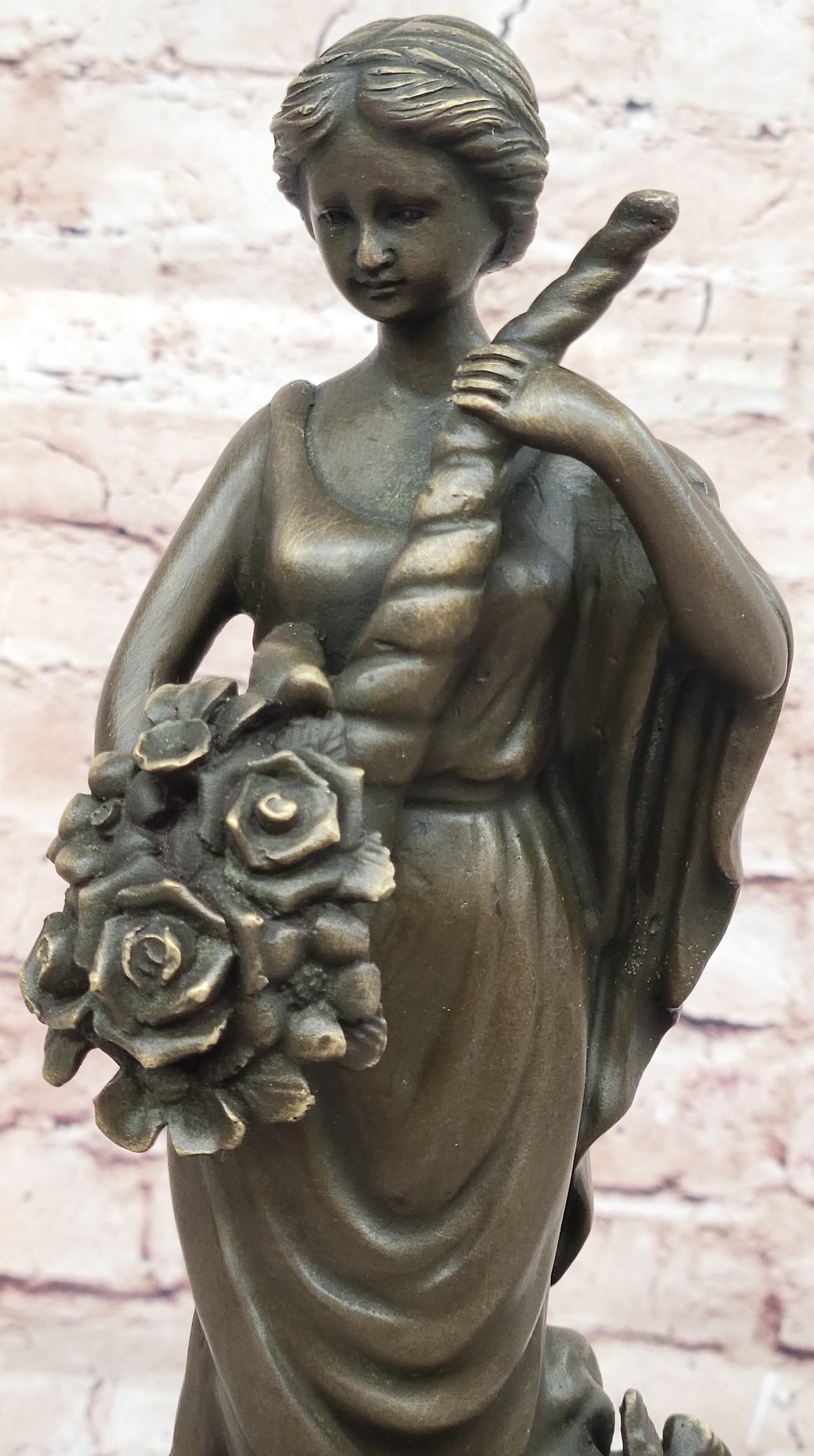 French Handcrafted Bronze Sculpture of a Woman Holding a Flower Cornucopia by Milo