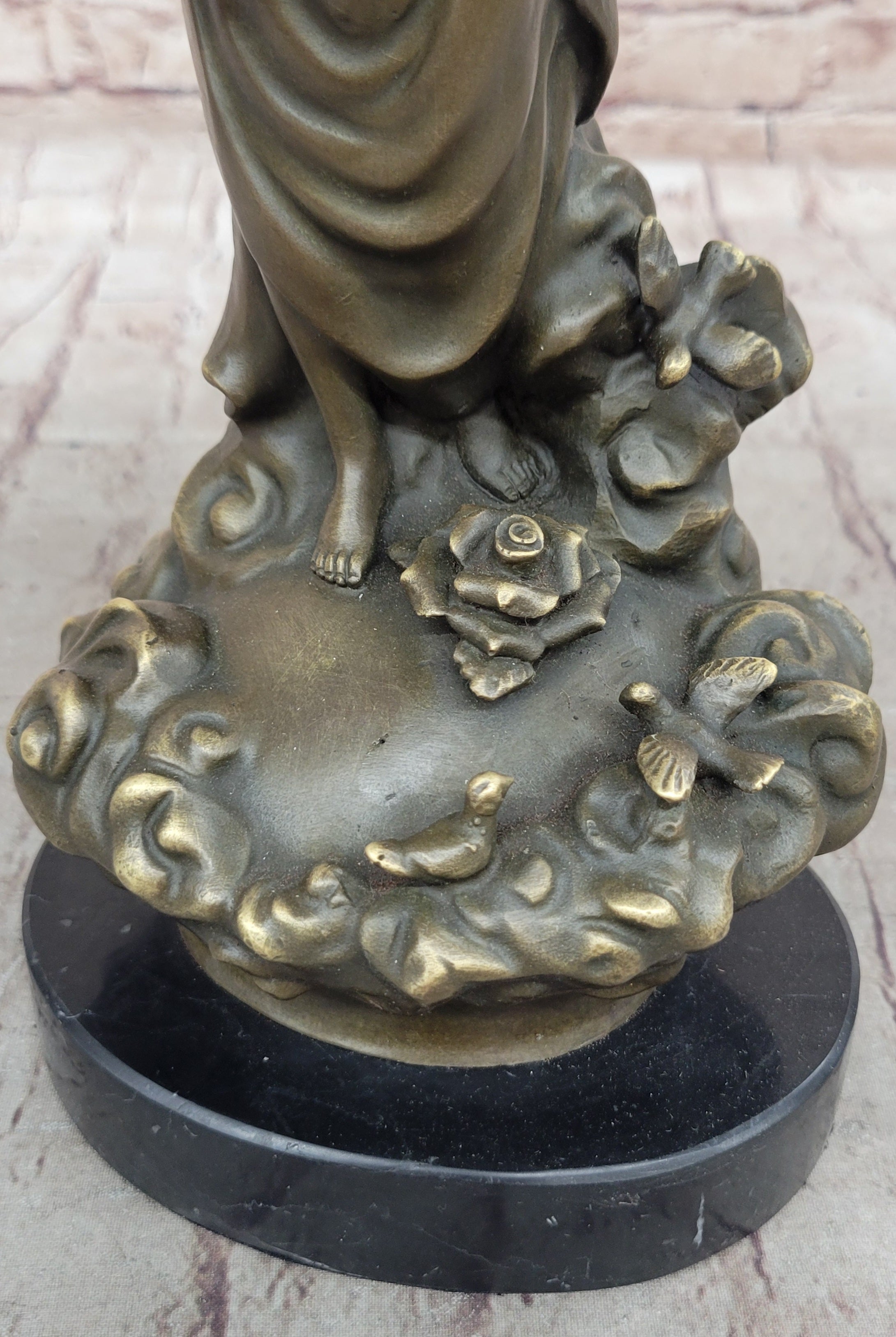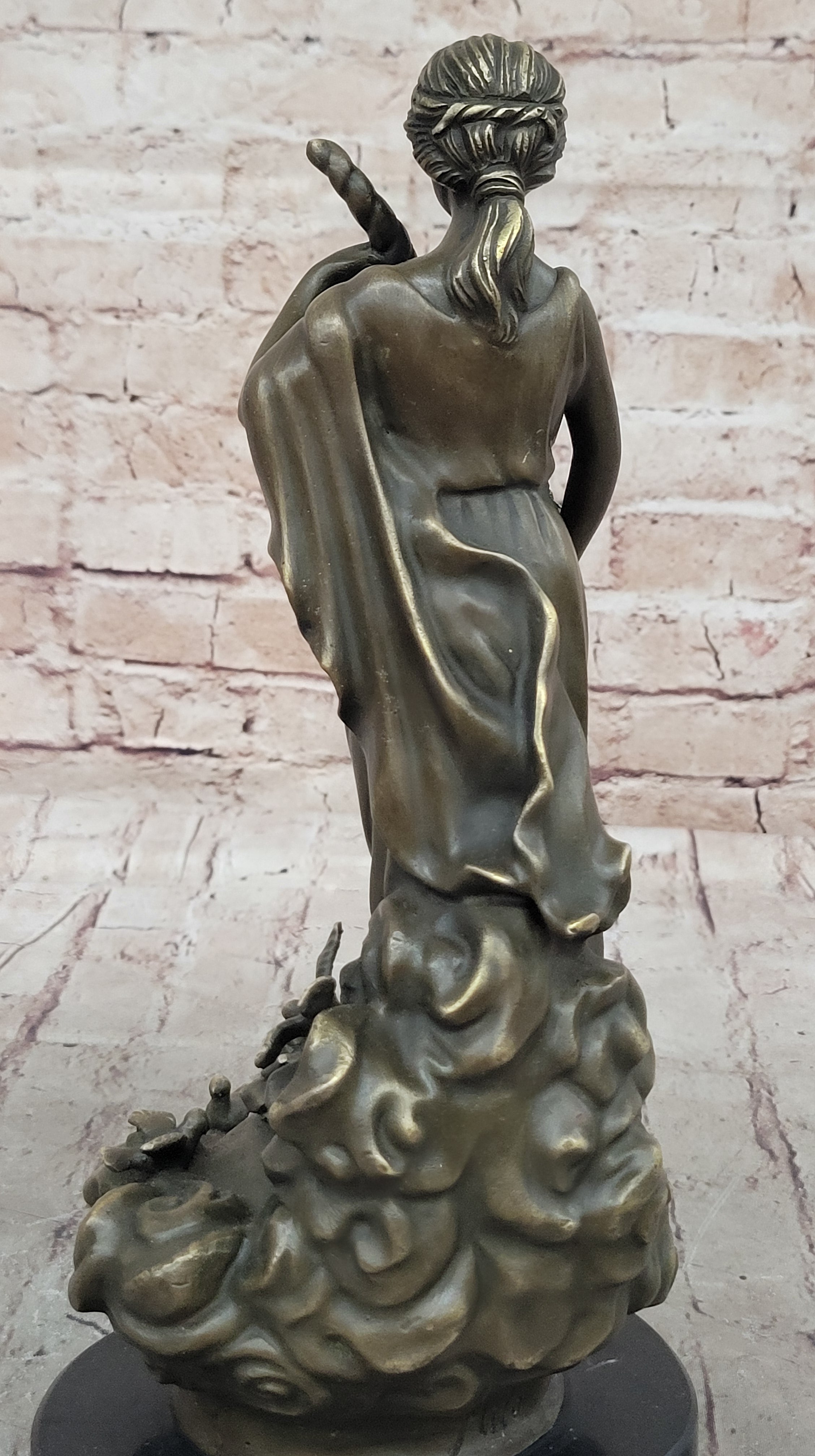 Resting on an oval black marble base, this piece not only highlights the beauty of the bronze but also provides stability and elegance. Perfect for collectors or as a thoughtful gift for art lovers, this sculpture serves as a timeless reminder of the beauty of nature and the grace of the human form.Bronze Dimensions with Marble Base: Height 13" X Width 6"