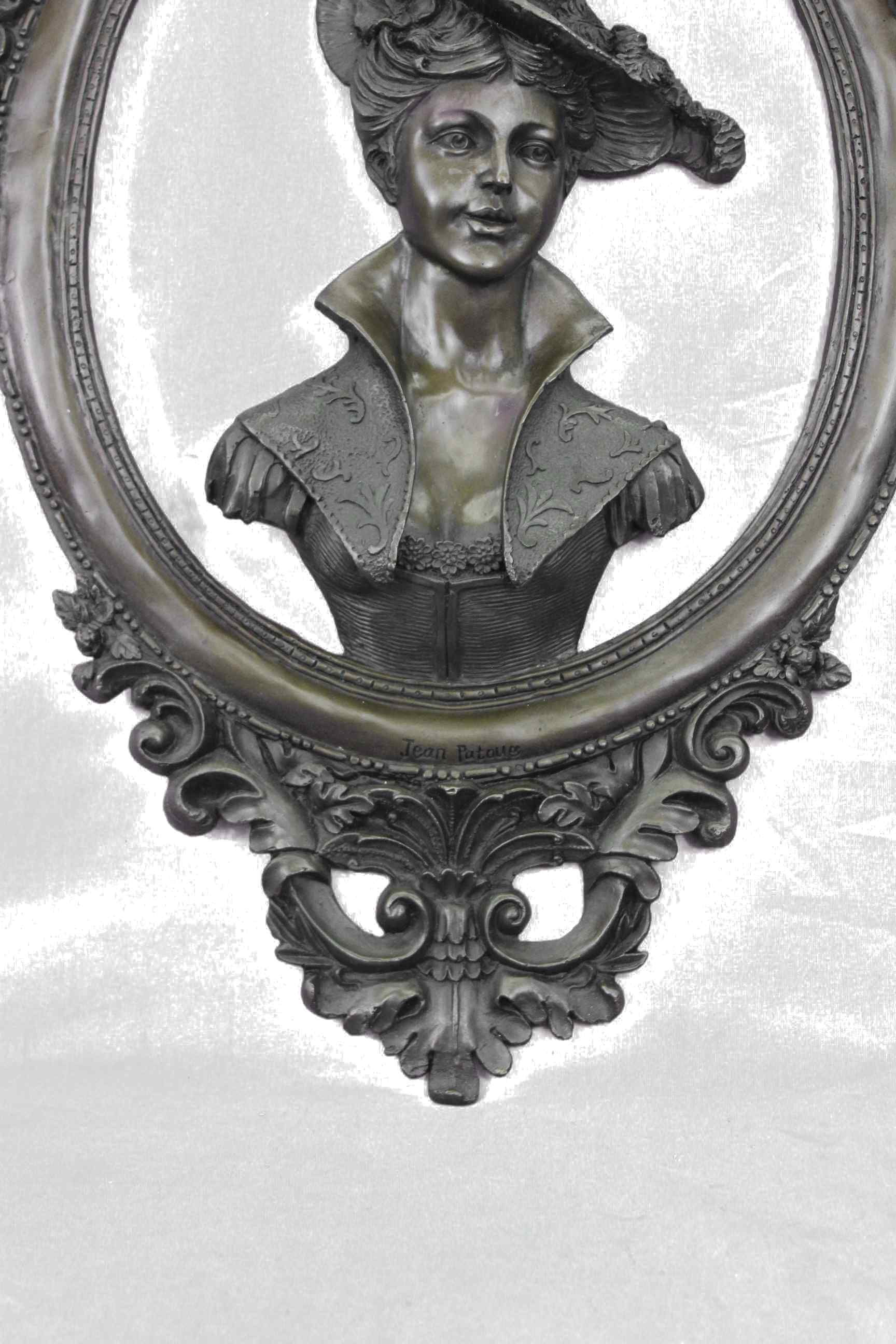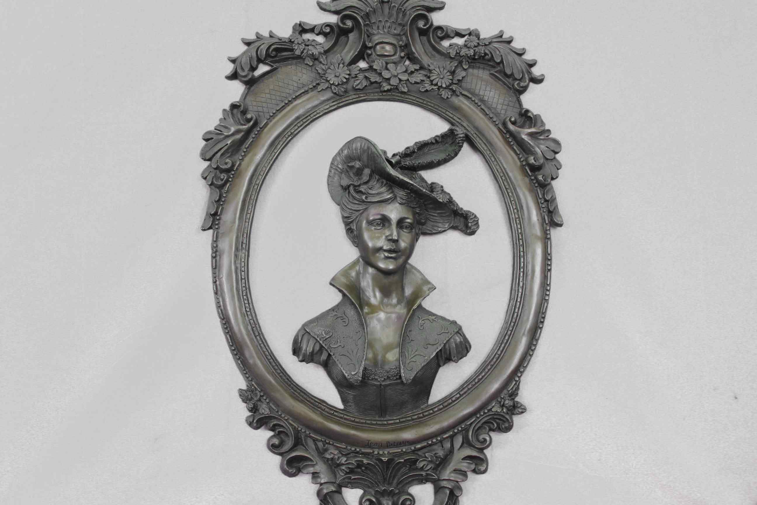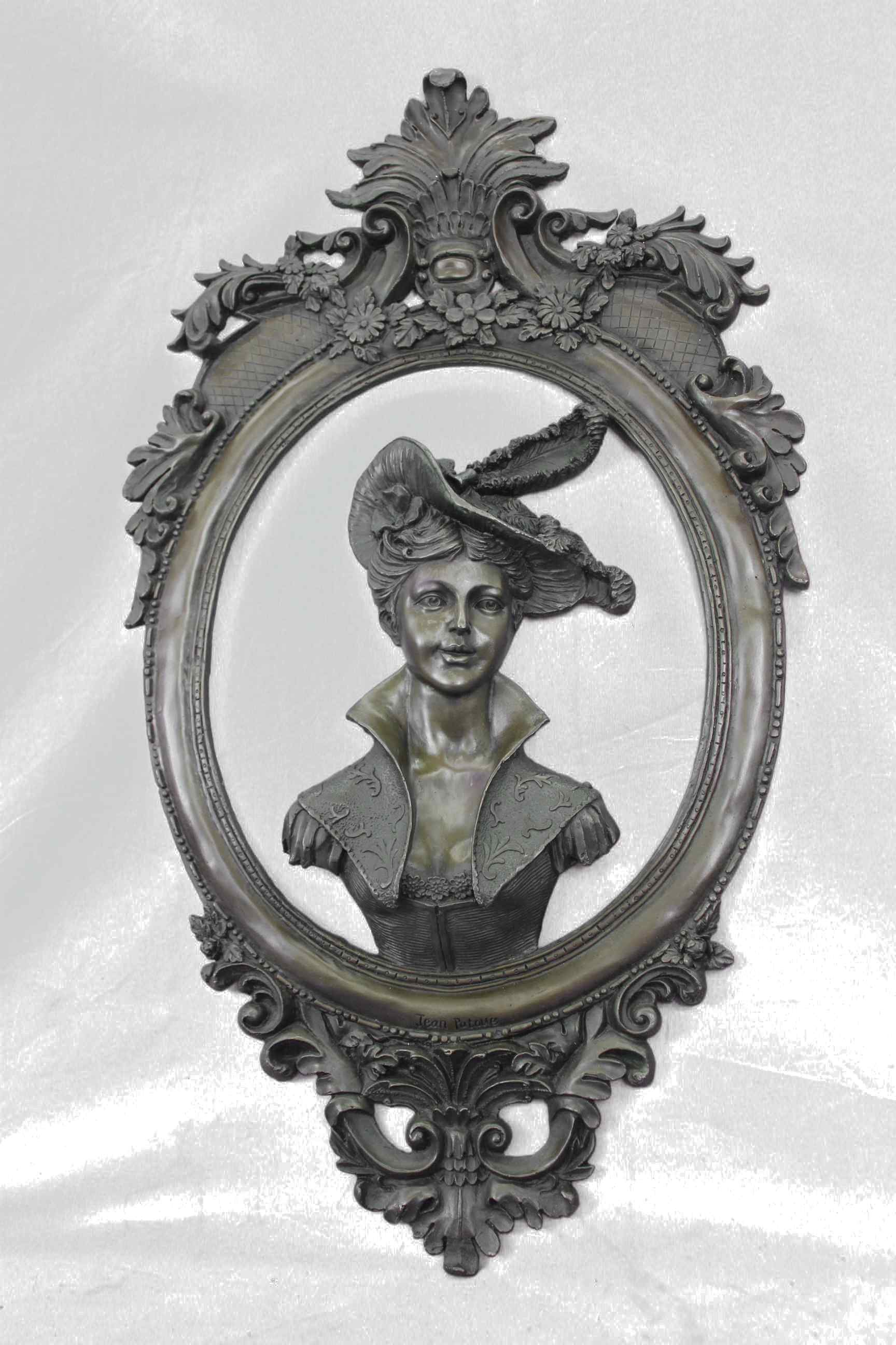 High relief Cameo medallion Female Woman`s Lady`s Girl`s Face Panel sculpture for sale for Indoors Inside Interior Wall Decoration by the Exquisite International Sculptor Jean Patoue who was Inspired by and adapted from the famous drawing by Michelangelo.Original or Reproduction: Original