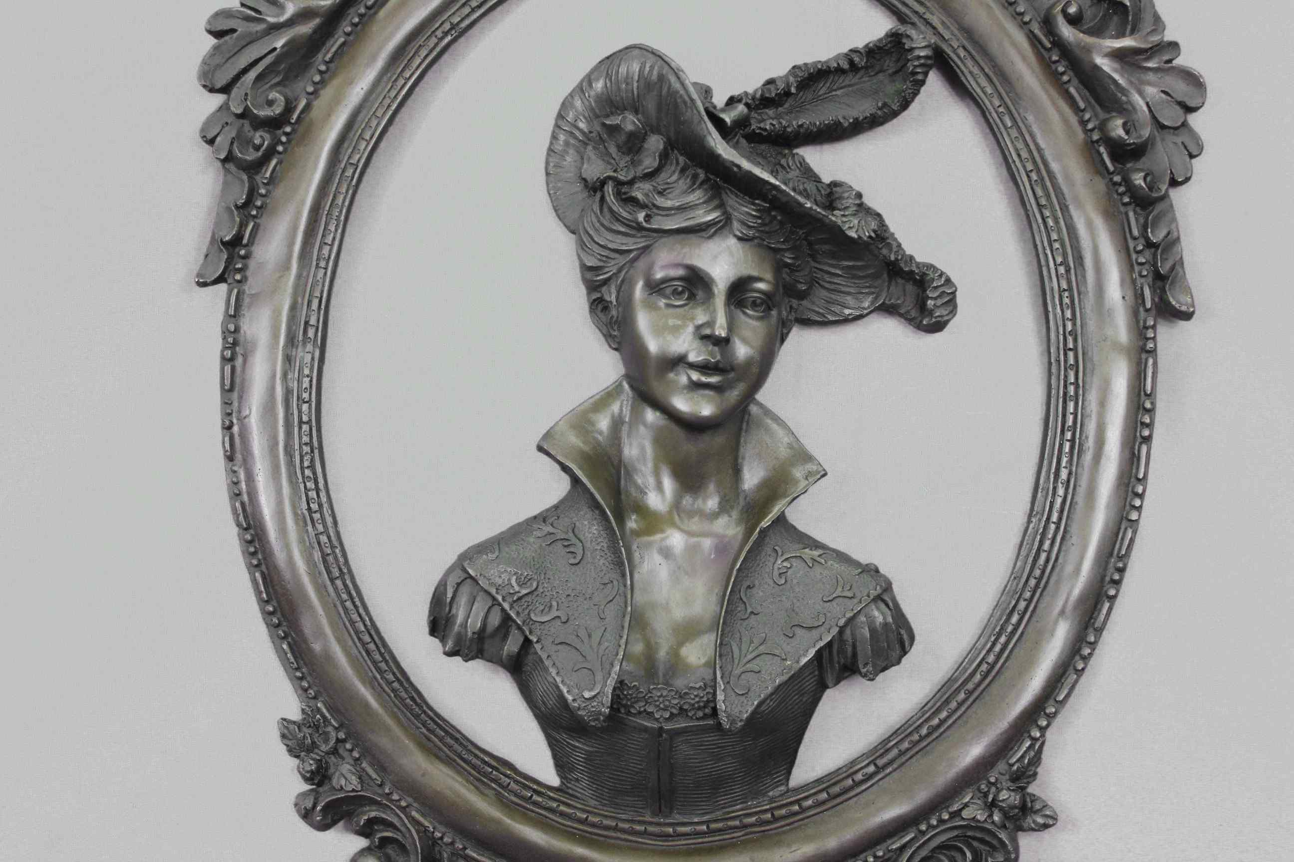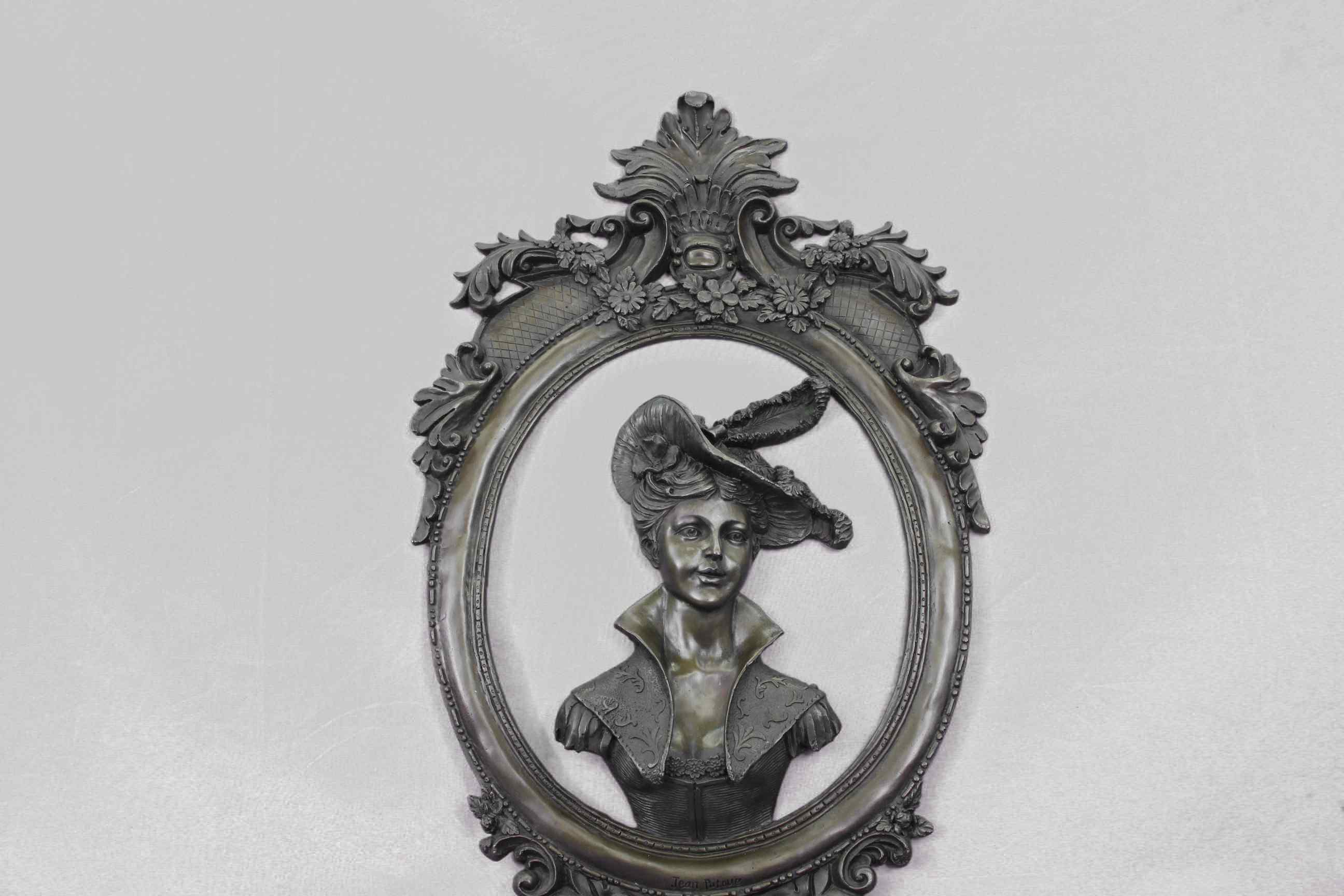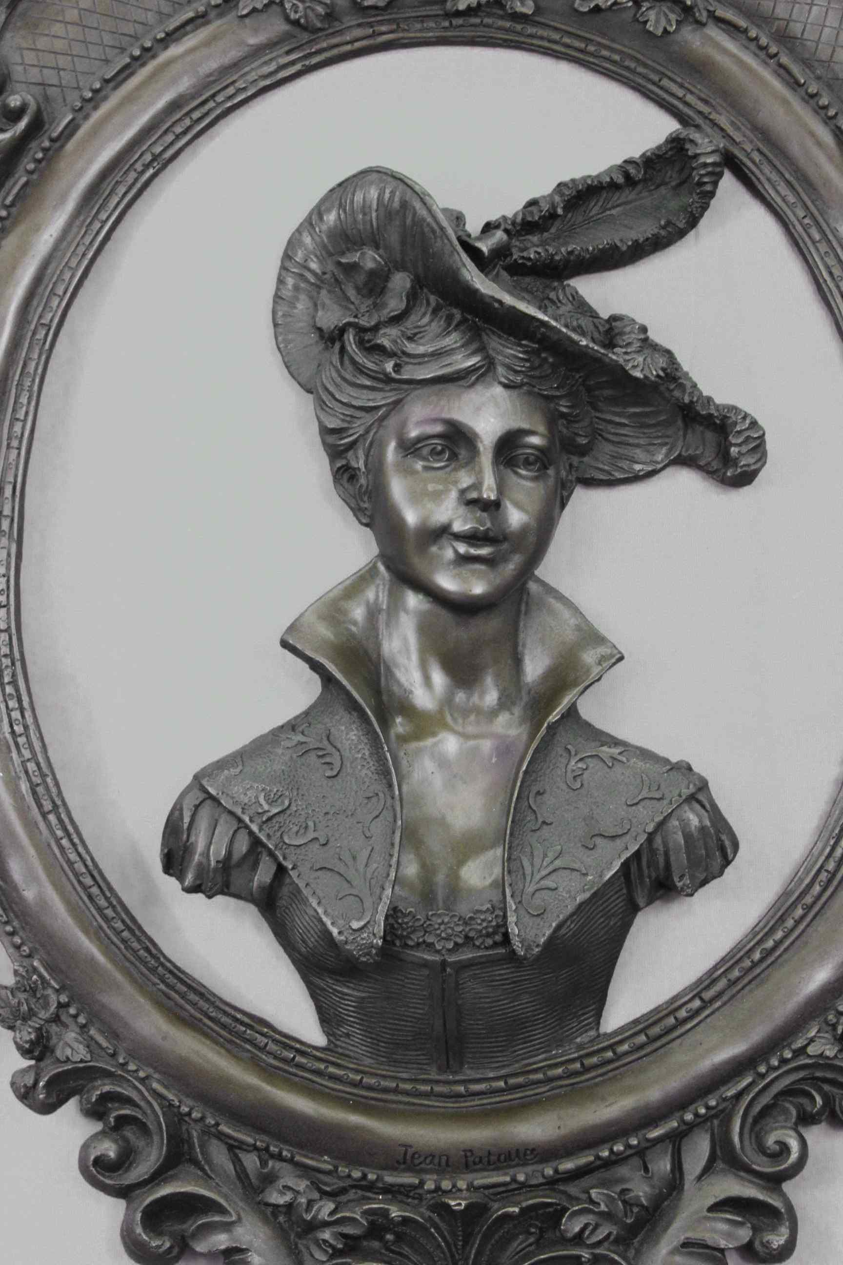 High relief Cameo medallion Female Woman`s Lady`s Girl`s Face Panel sculpture for sale for Indoors Inside Interior Wall Decoration by the Exquisite International Sculptor Jean Patoue who was Inspired by and adapted from the famous drawing by Michelangelo.Original or Reproduction: Original