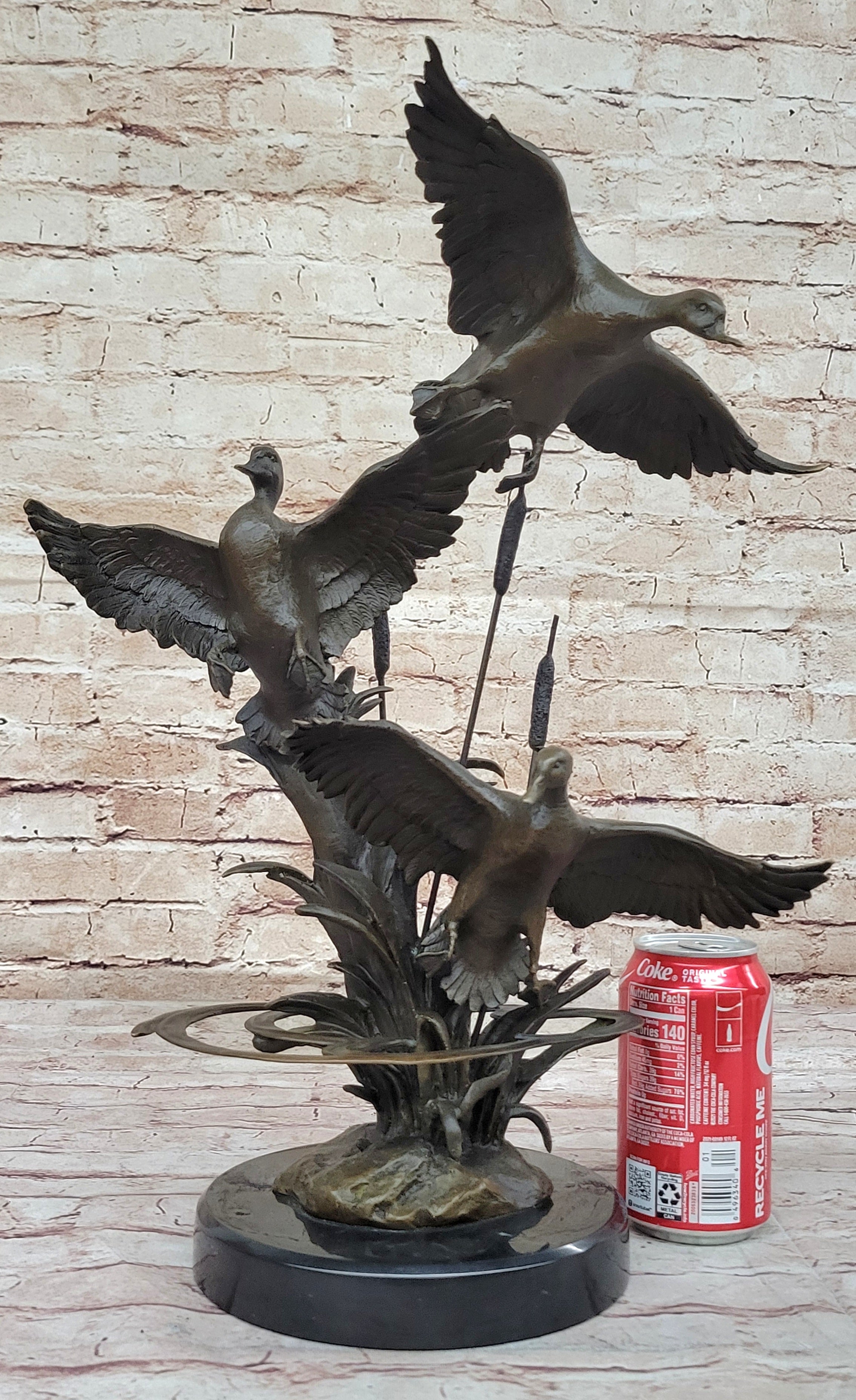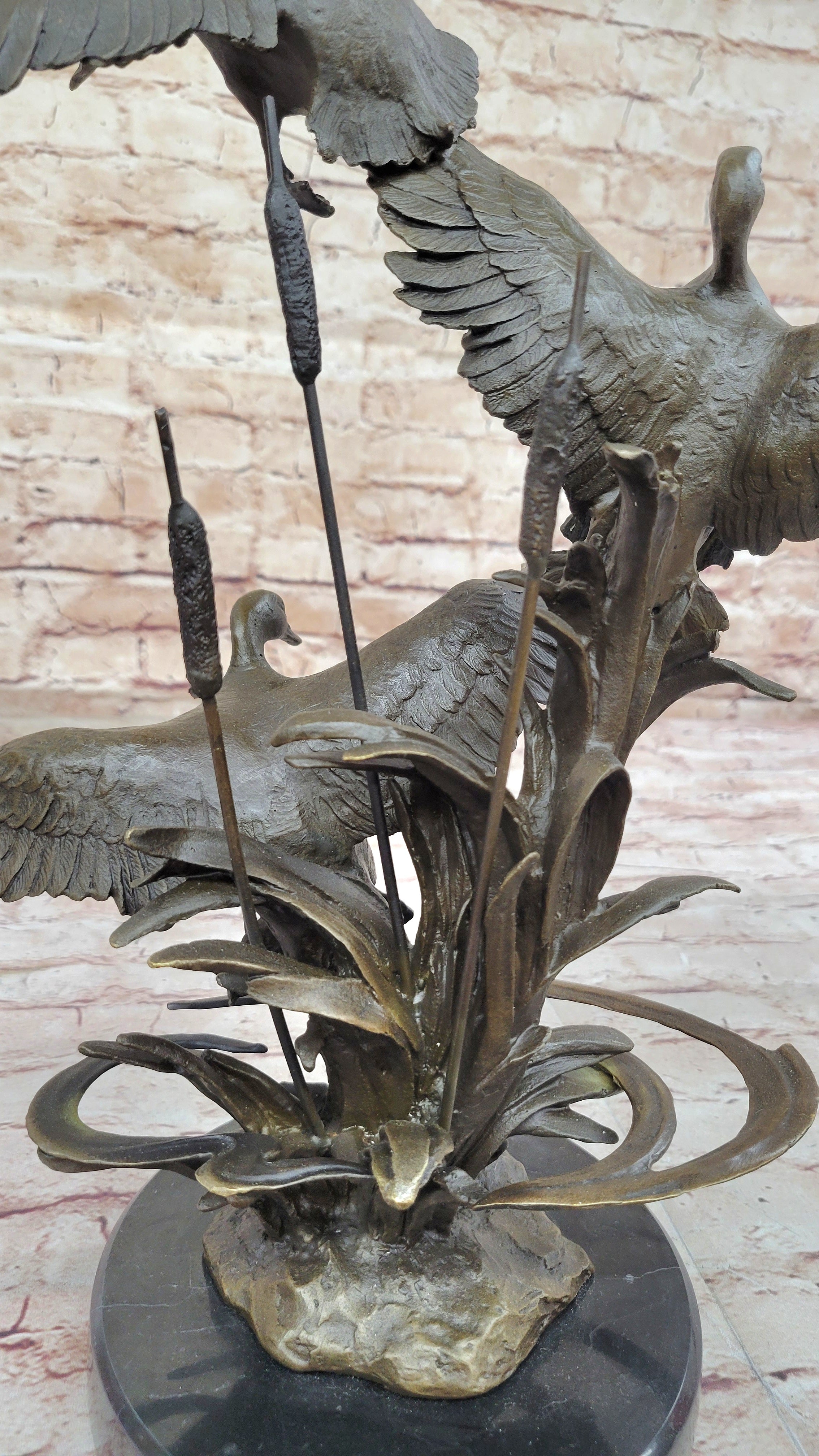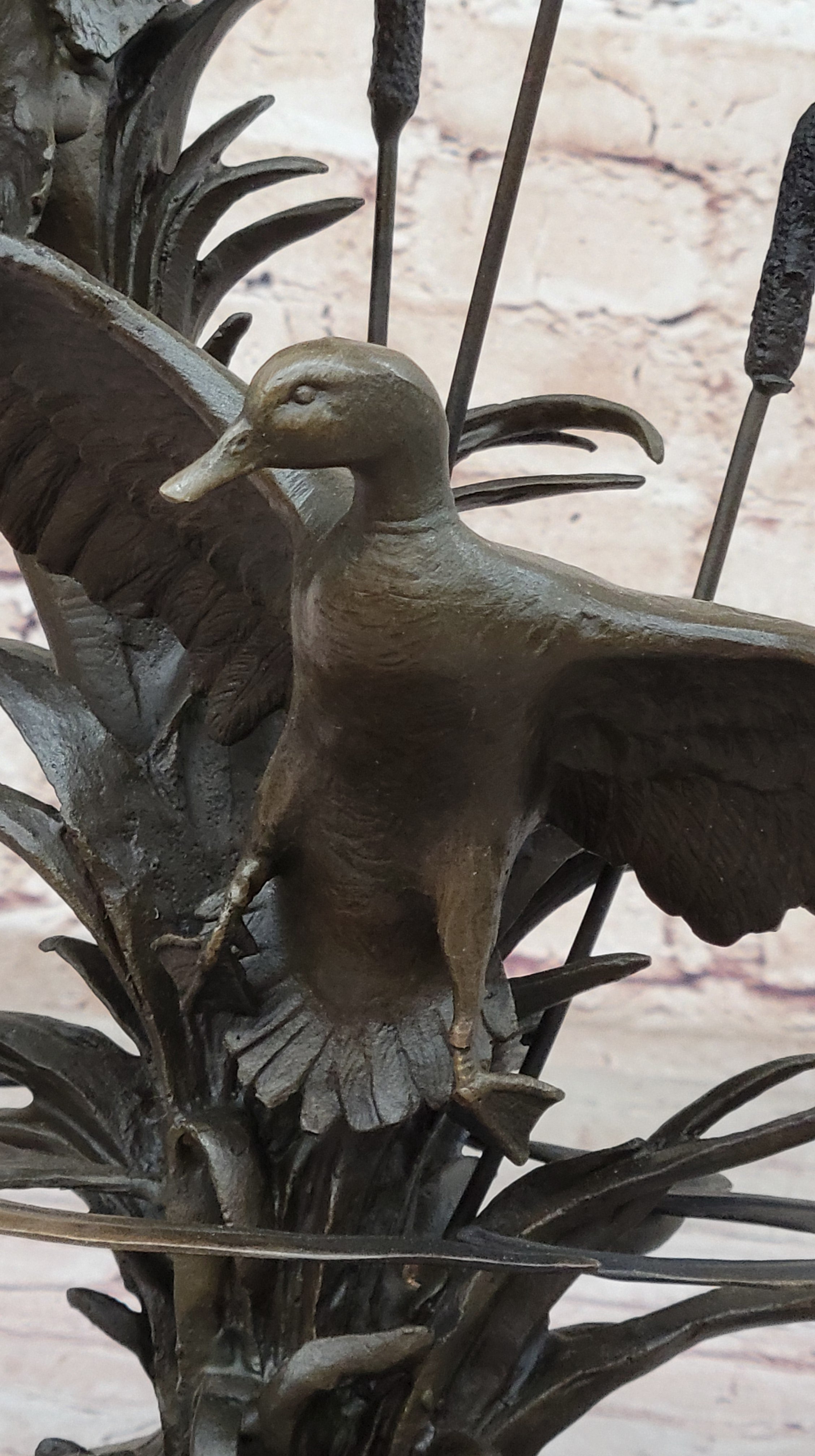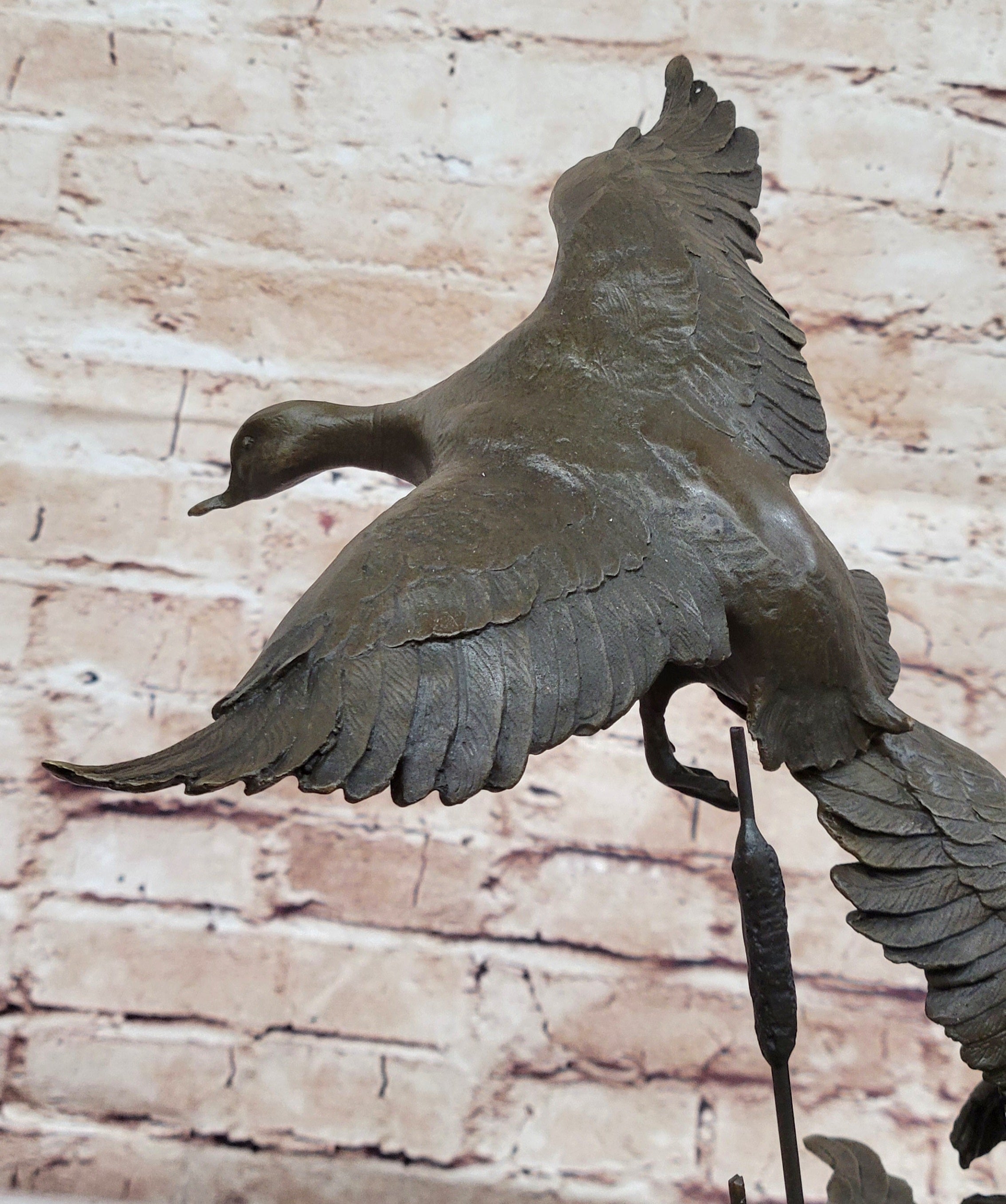 Flying Ducks in the Reeds Bronze Sculpture Statue Wildlife Decor on Marble Base