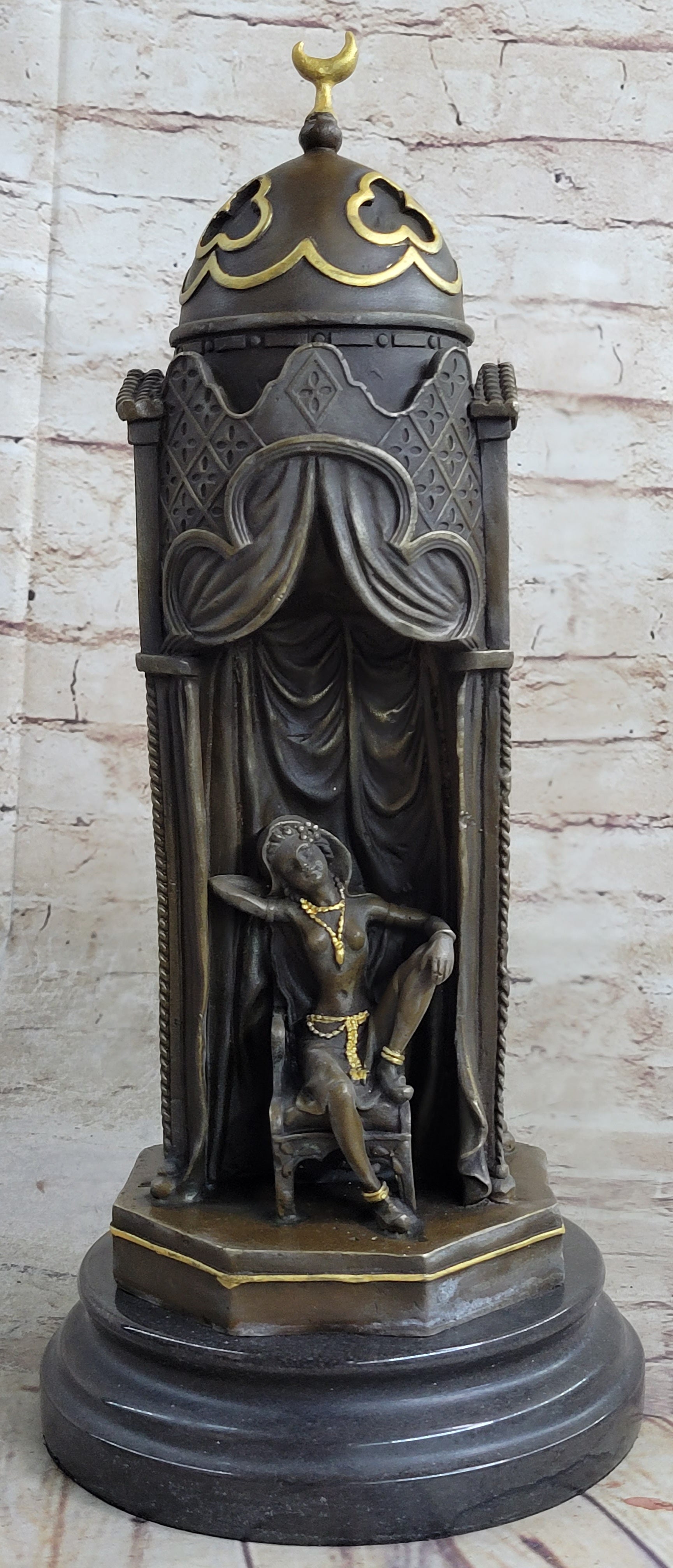 Peeping Ali Arabic Turkish Harem Bronze Statue Sculpture Figure by Franz Bergman 14" X 8"