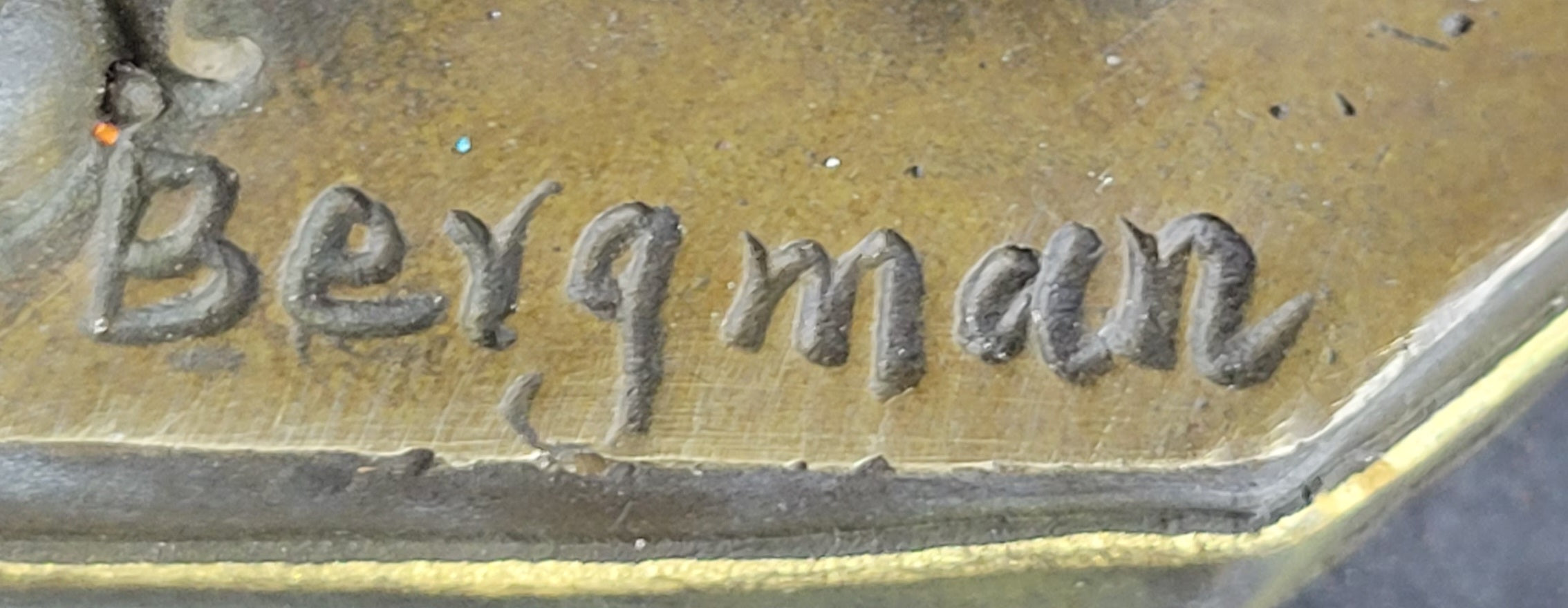 Noteworthy for its attention to detail and impeccable execution, this bronze reproduction pays homage to Bergman's artistic legacy. The piece bears the signature "Nam Greb," a clever nod to the artist's name spelled in reverse—a hallmark of Bergman's erotic bronze works. Its remarkable condition, free from any imperfections, makes it a ready-to-display masterpiece that will undoubtedly captivate and intrigue admirers.
