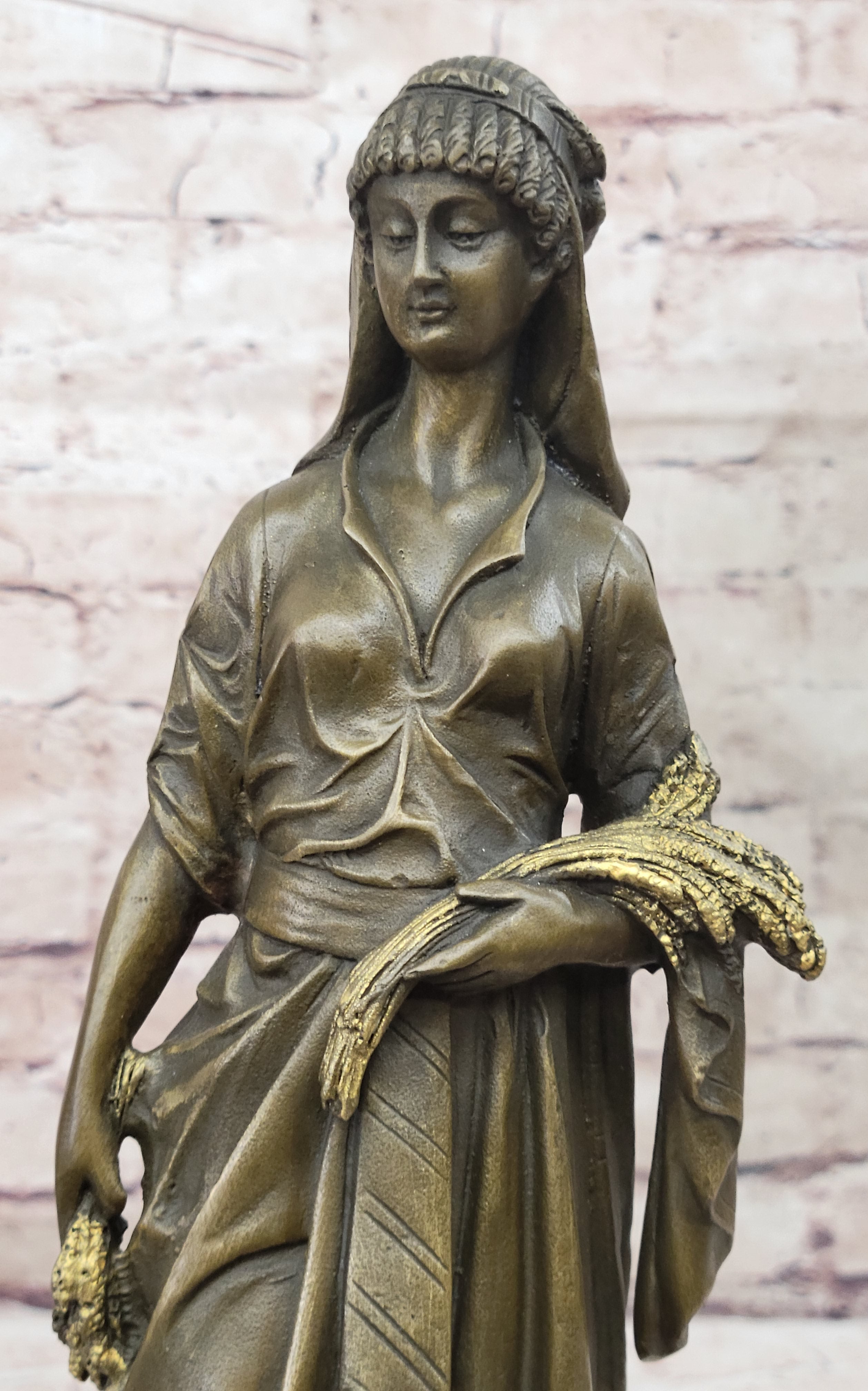 Discover the captivating beauty of this exquisite bronze sculpture by acclaimed French artist Eutrope Bouret. Depicting a woman gathering wheat, this artwork showcases the artist's exceptional attention to detail and mastery of form. Every intricate element of the sculpture, from the woman's flowing dress to the delicate strands of wheat, is meticulously crafted, adding a sense of realism and depth to the piece.
