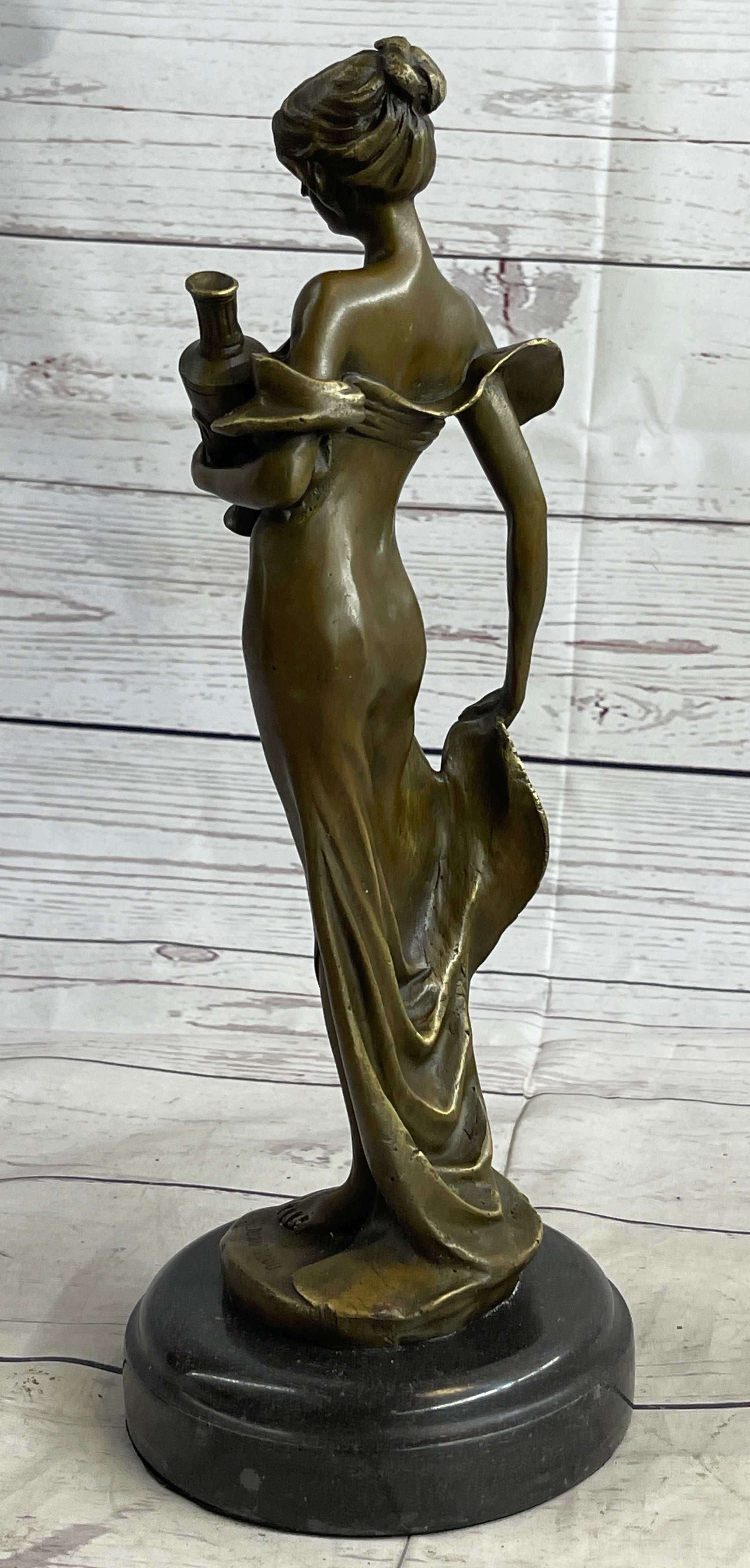 Girl Holding Vase Bronze Statue Sculpture Figure Marble Base French Art 13" x 5"