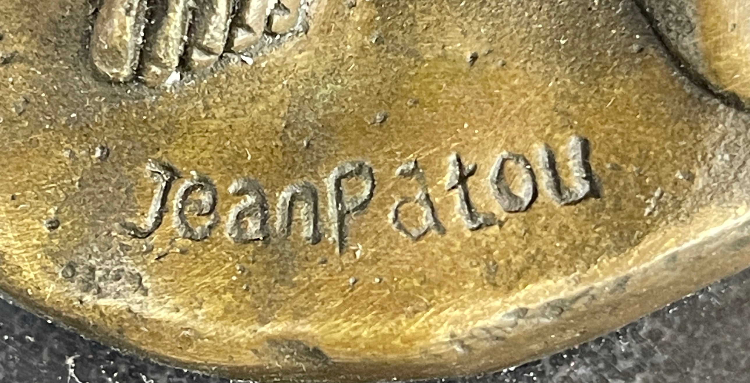 The signature of the artist Jean Patoue serves as a testament to the craftsmanship behind this exquisite piece, establishing a connection between the viewer and the skilled hands that brought the classical maiden to life. Whether displayed as a standalone sculpture or integrated into a curated collection, this artwork captures the timeless beauty and poise associated with classical depictions of maidens. The flirtatious expression and confident posture of the maiden make this sculpture a captivating addition to any space, inviting viewers to appreciate the allure and grace encapsulated in classical artistry.