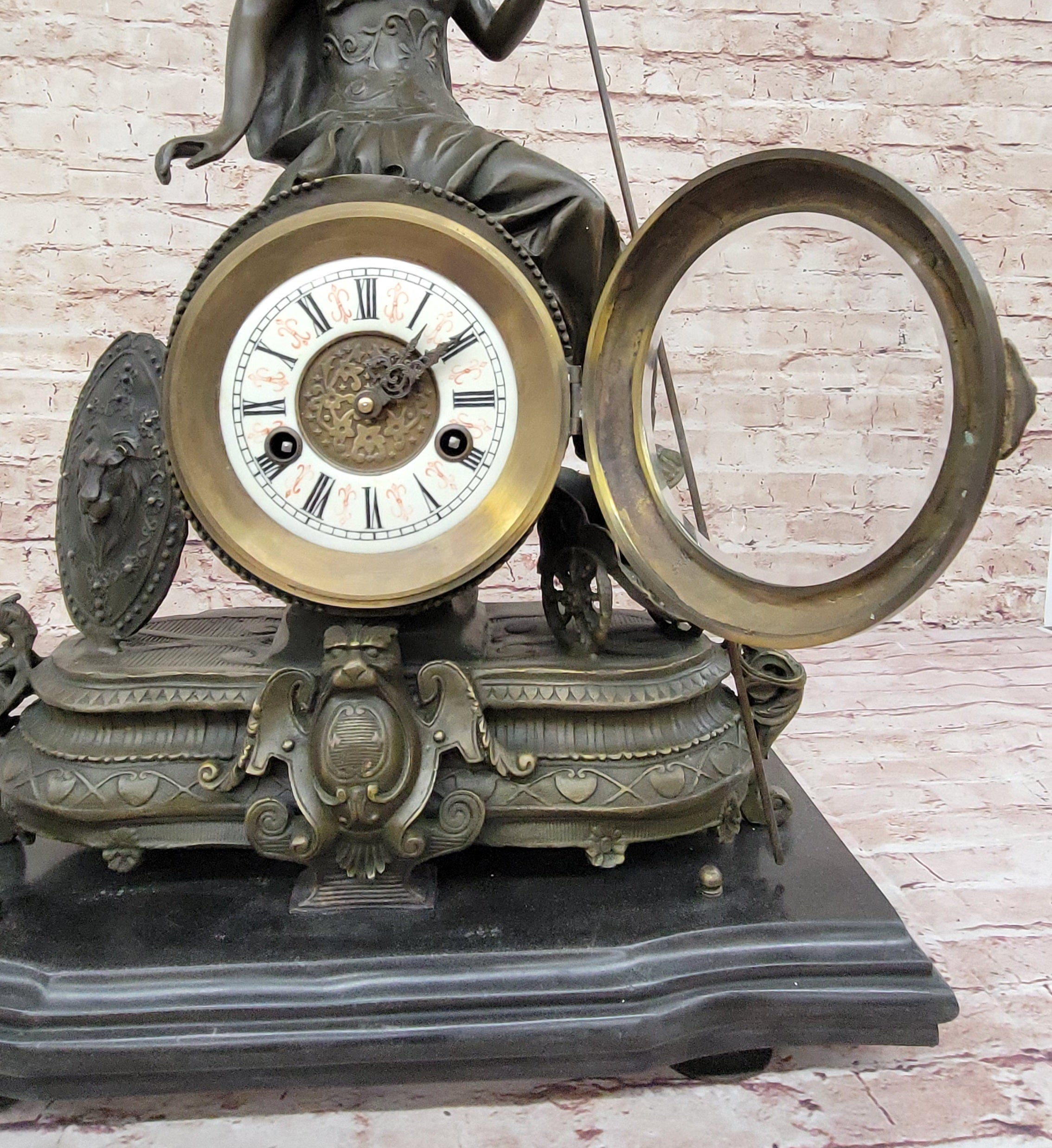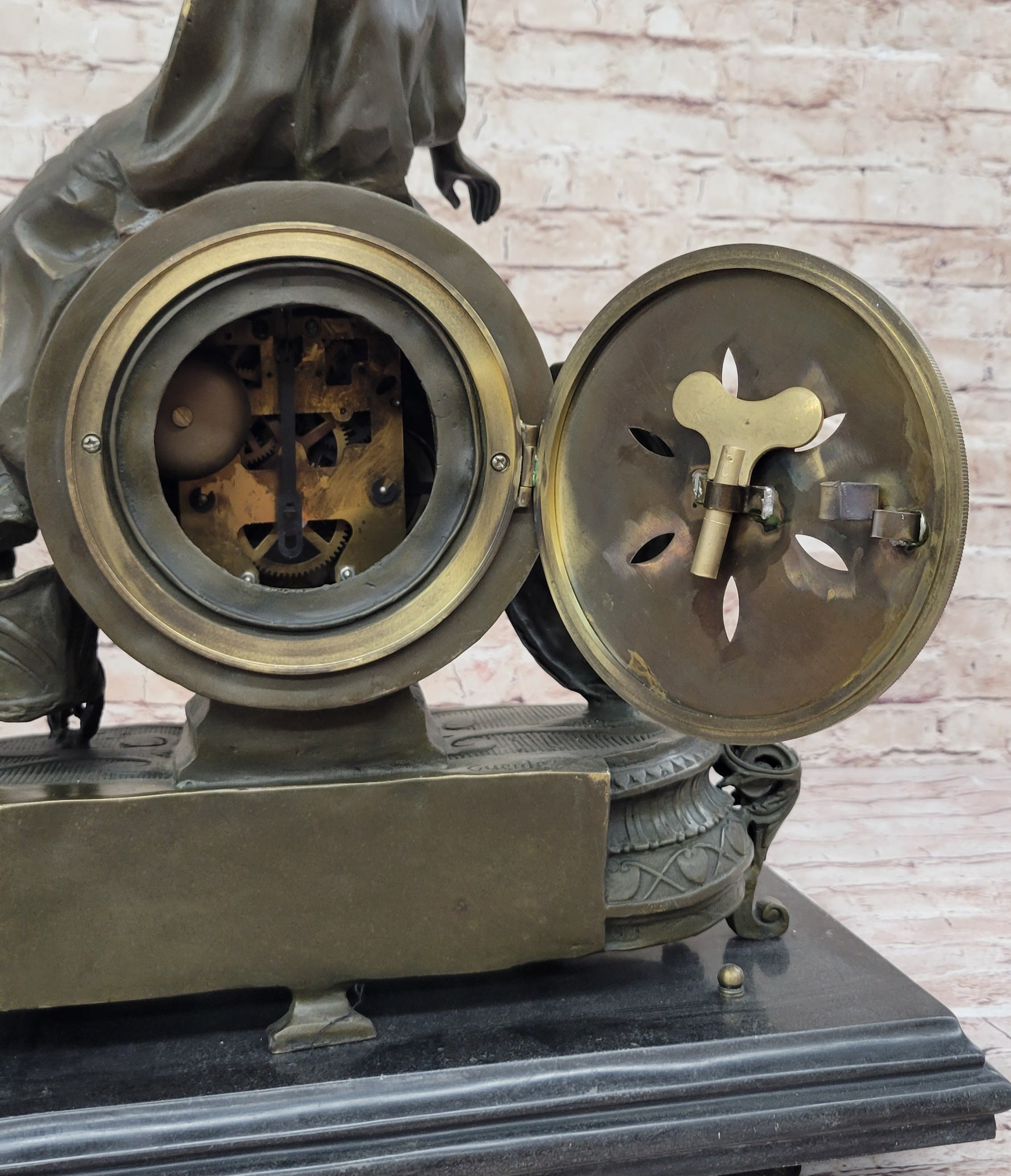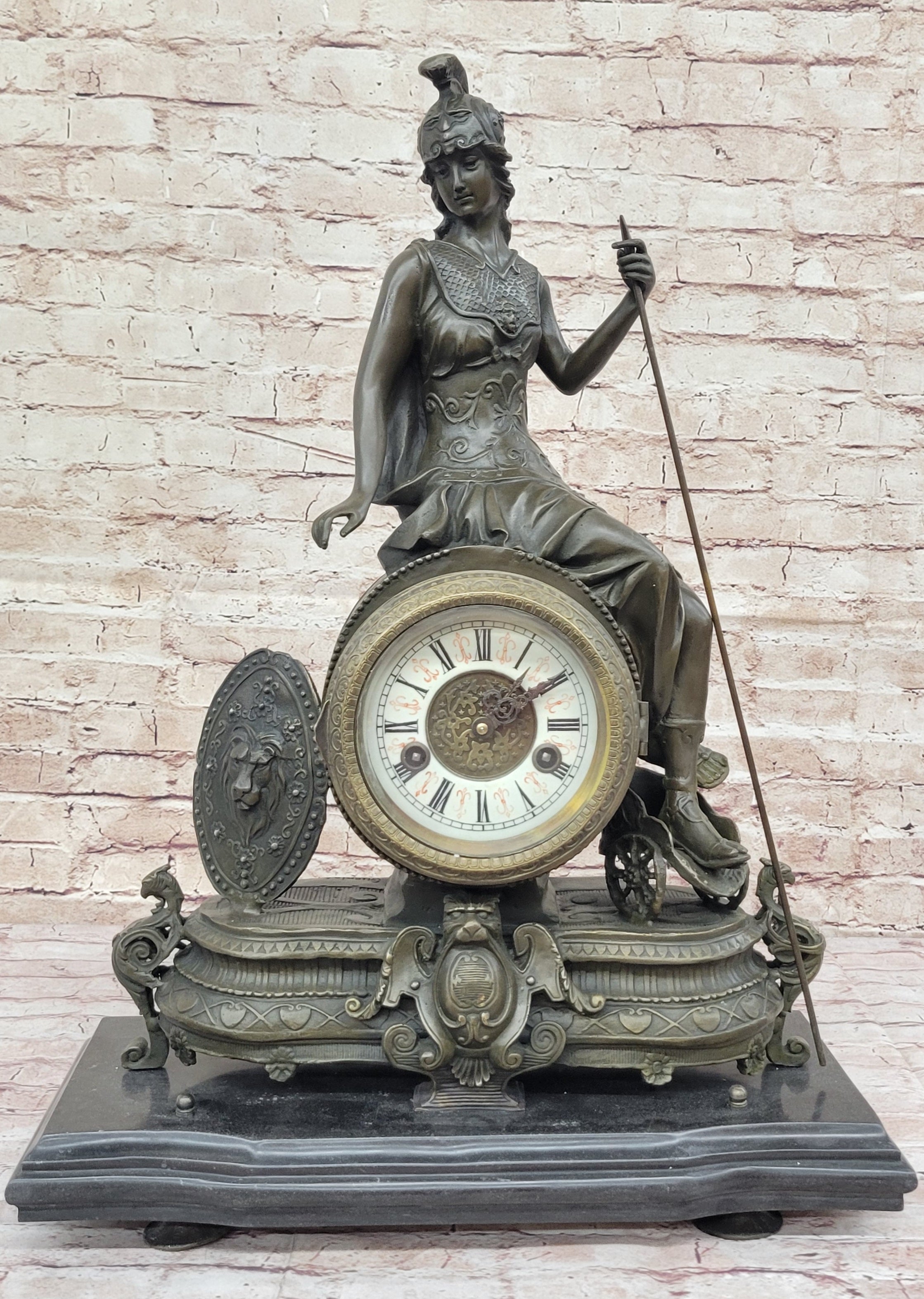 Greek Roman Goddess Athena Minerva Figural Antique Style Bronze Metal Clock Sculpture